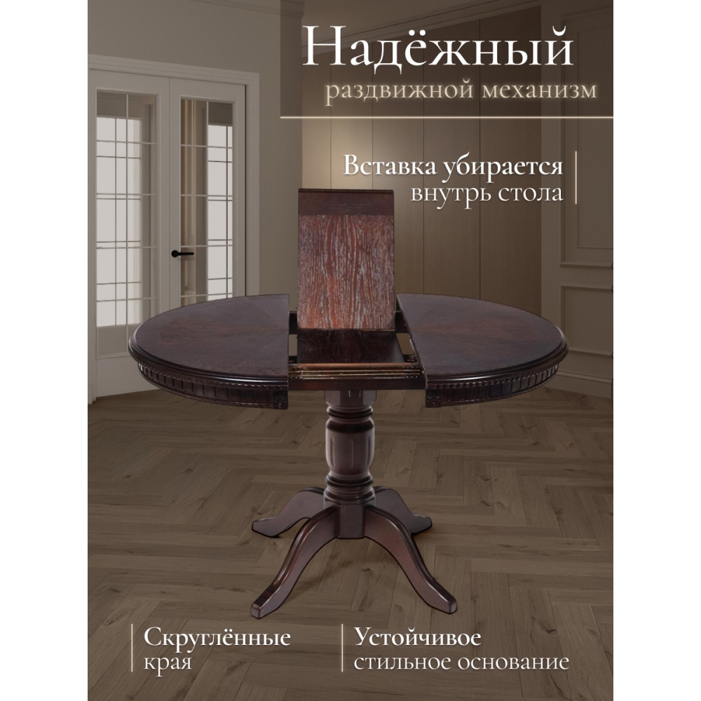 Элегантный обеденный стол STEFANO с круглой столешницей создаст атмосферу комфорта, спокойствия и уюта в вашем доме. Данная модель станет замечательным интерьерным акцентом в любом обстановке. Устойчивая ножка стола выполнена из массива бука, благодаря чему модель прочна, надежна и основательна. Круглая форма столешницы способствует долгому и комфортному времяпрепровождению. Раздвижной механизм позволяет удобно разместить от четырех до шести человек. Модель не требует специального ухода, устойчива к изменению температуры и влаги. Круглый стол STEFANO ─ роскошный предмет интерьера, который впишется в любой комнате вашего дома и будет радовать своей оригинальностью и элегантностью в течение длительного времени. Стол подходит для кухни, для гостиной, для дачи. Стол очень прост в сборке, инструкция по сборке прилагается.