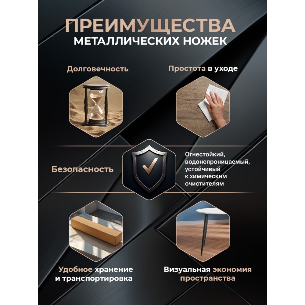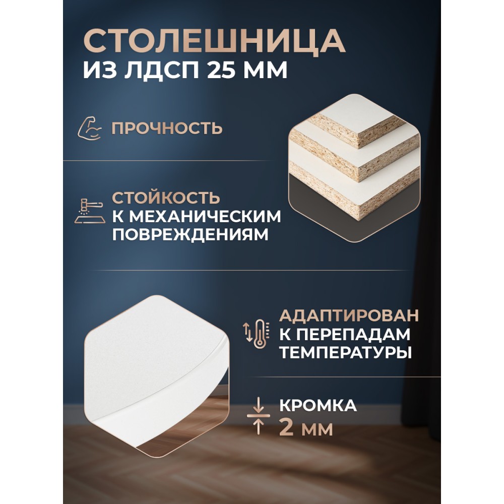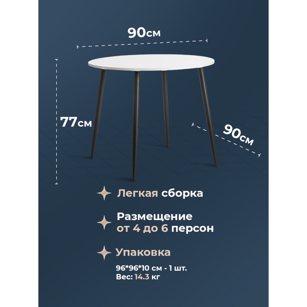 Стильный обеденный стол Uranus из коллекции Modern отлично дополнит интерьер загородного дома, городской квартиры, кухни, гостиной, столовой, кафе или ресторана. Компактный и аккуратный стол отлично подойдет даже для небольших помещений. Столешница белого цвета выполнена из ЛДСП толщиной 18 мм, края оклеены прочной пластиковой кромкой толщиной 2 мм. Изящные тонкие ножки изготовлены из металла и окрашены в черный цвет. Размеры стола дают возможность с комфортом разместить от двух до четырех человек. Стол очень прост в сборке, инструкция по сборке прилагается.
