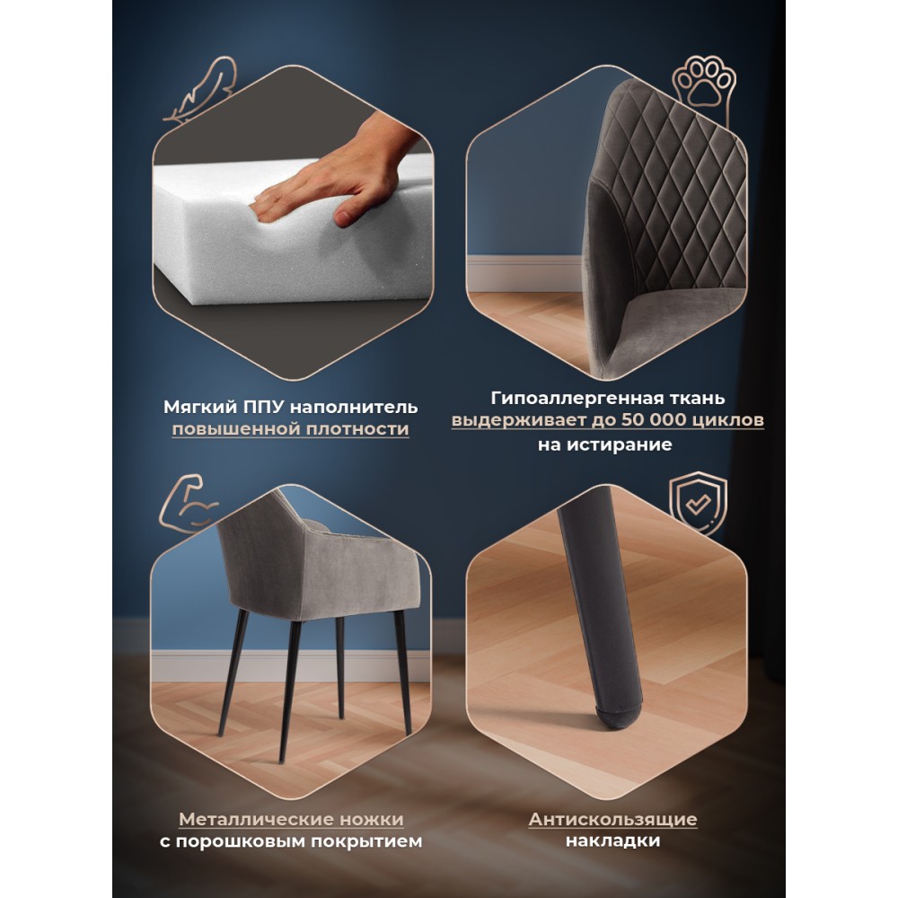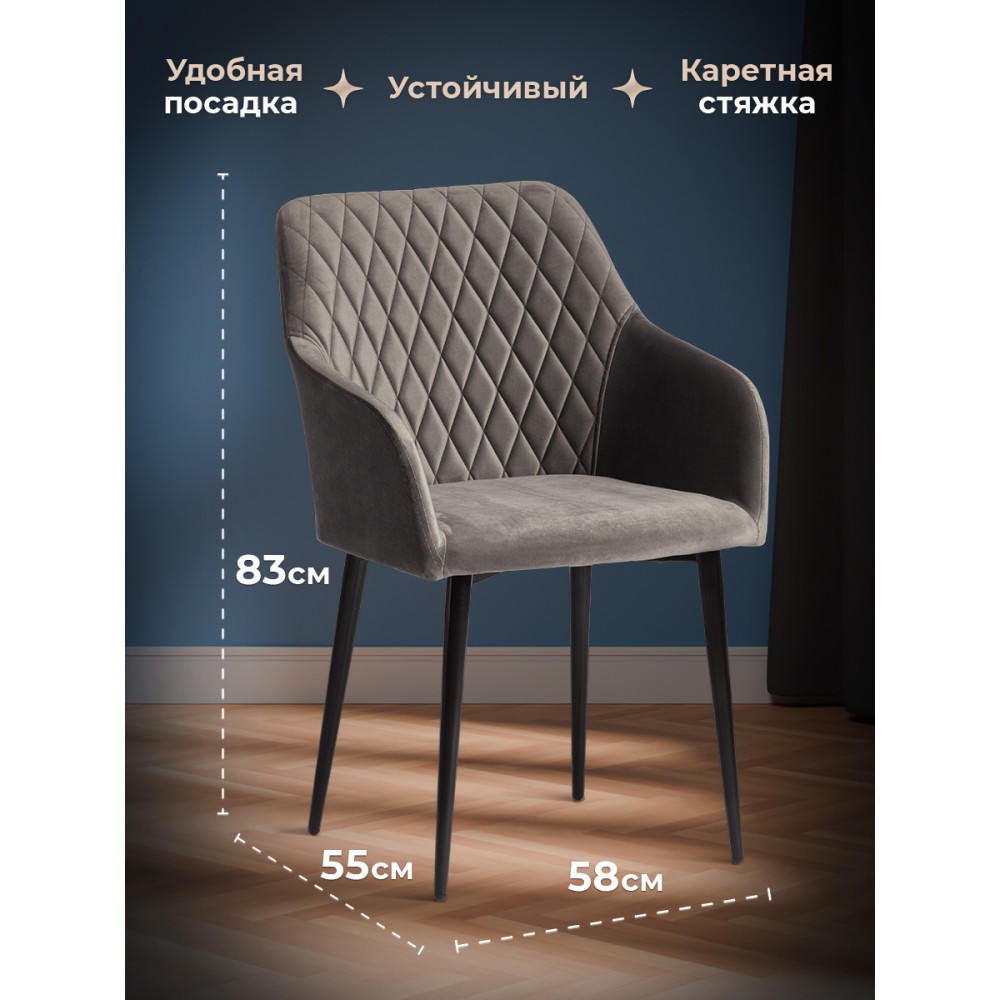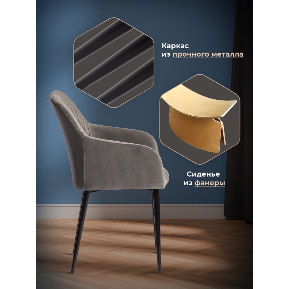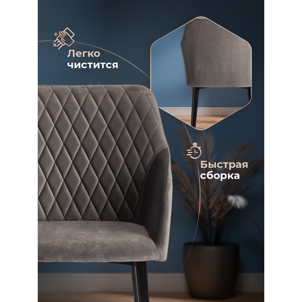 Великолепное кресло BREMO из коллекции Modern – это удачное сочетание простоты и элегантности. Простая форма, благородный цвет обивки, стеганая спинка и визуально легкие металлические ножки выгодно выделают кресло среди привычной мебели. Удобное сиденье, эргономичная спинка и мягкие подлокотники обеспечивают комфортную посадку для продолжительного отдыха. Надежный каркас кресла изготовлен из многослойной фанеры толщиной 10 мм. Мягкая, бархатистая и приятная на ощупь поверхность сиденья и спинки подарит максимальный комфорт и уют. Тканевая обивка серого цвета из велюра не мнётся, не меняет форму, пропускает воздух, экологична и гипоаллергенна. Металлические ножки с порошковым покрытием и пластиковыми подпятниками делают кресло прочным и устойчивым. Оно прослужит вам долгие годы, радуя своим первоначальным видом. Кресло подойдёт для гостиной, для кухни или для спальни. Кресло очень простое в сборке, инструкция по сборке прилагается.