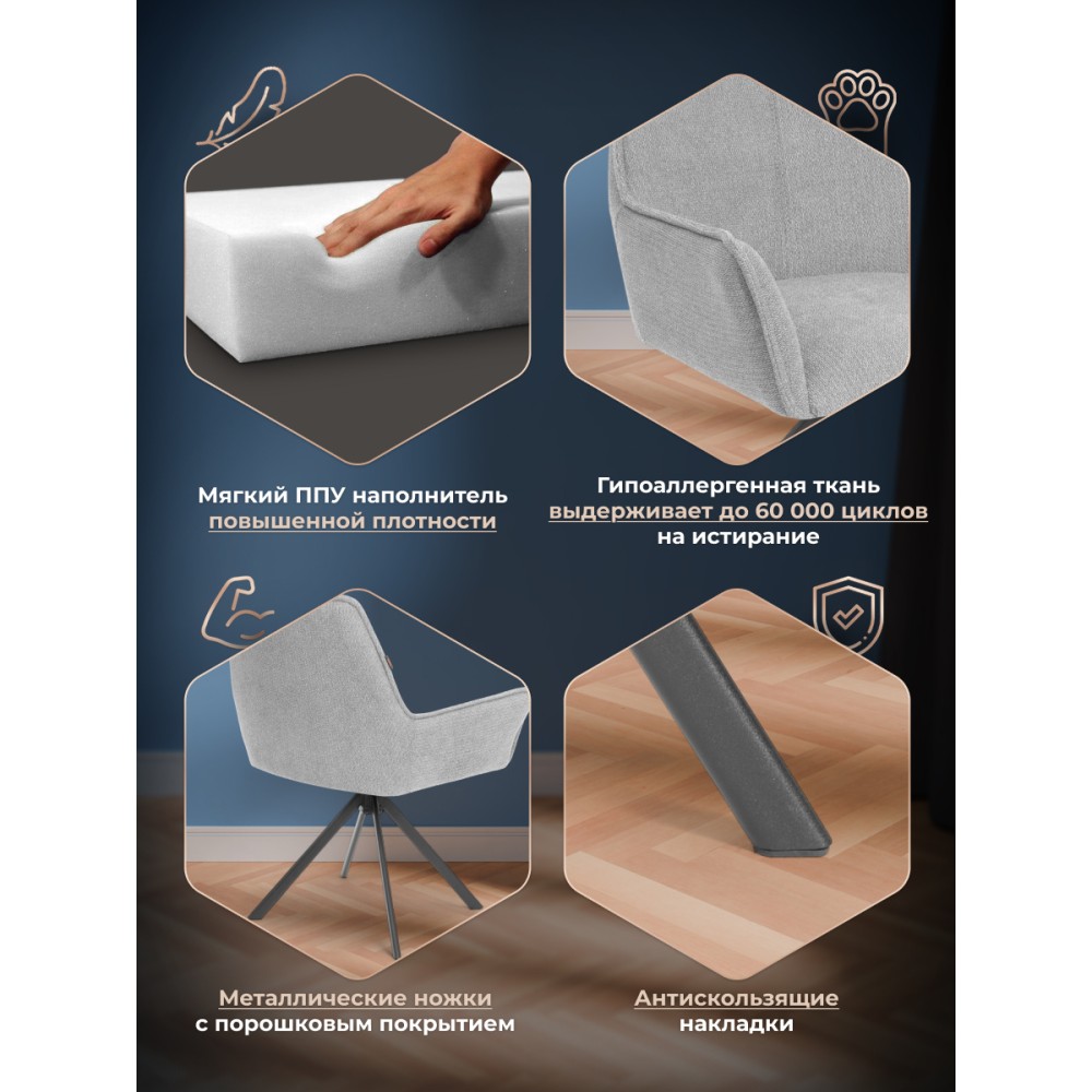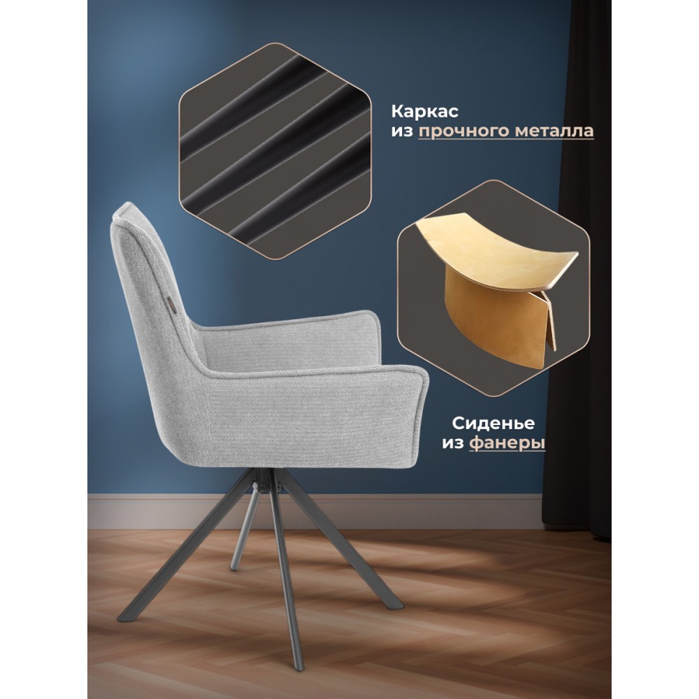 Кресло Murano — это не просто элемент мебели, а истинное произведение искусства, объединяющее элегантный итальянский дизайн и высокий уровень комфорта. Оно идеально впишется в любой интерьер, будь то современная гостиная, уютная кухня или стильный кабинет. Особенности кресла Murano: - вращение на 360 градусов этопозволяет легко перемещаться и находиться в удобном положении, обеспечивая максимальное удобство и безопасность. Используемые материалы: металлический каркас спинки обеспечивает прочность, а гнутоклеёный березовый шпон (10 мм) делает сидение не только экологичным, но и комфортным. Наполнение: первичный ППУ с плотностью от 22 до 60 мм создает превосходную поддержку и комфорт. Обивка: износостойкий материал, который выдерживает до 50 000 циклов на истирание по Мартиндейлу, гарантирует долговечность и легкость в уходе. Металлические опоры: черный муаровый цвет опор не только добавляет стильного акцента, но и обеспечивает надежность. Толщина металла опоры составляет 1,5 мм, а кронштейна — 2-3 мм. Нагрузка до 120 кг: кресло устойчиво и надежно, что делает его подходящим для использования в различных условиях. Индивидуальная упаковка: каждое кресло упаковано с заботой, что обеспечивает его целостность при транспортировке. Кресло Murano — это отличное решение для тех, кто ценит стиль, качество и комфорт в своем интерьере!