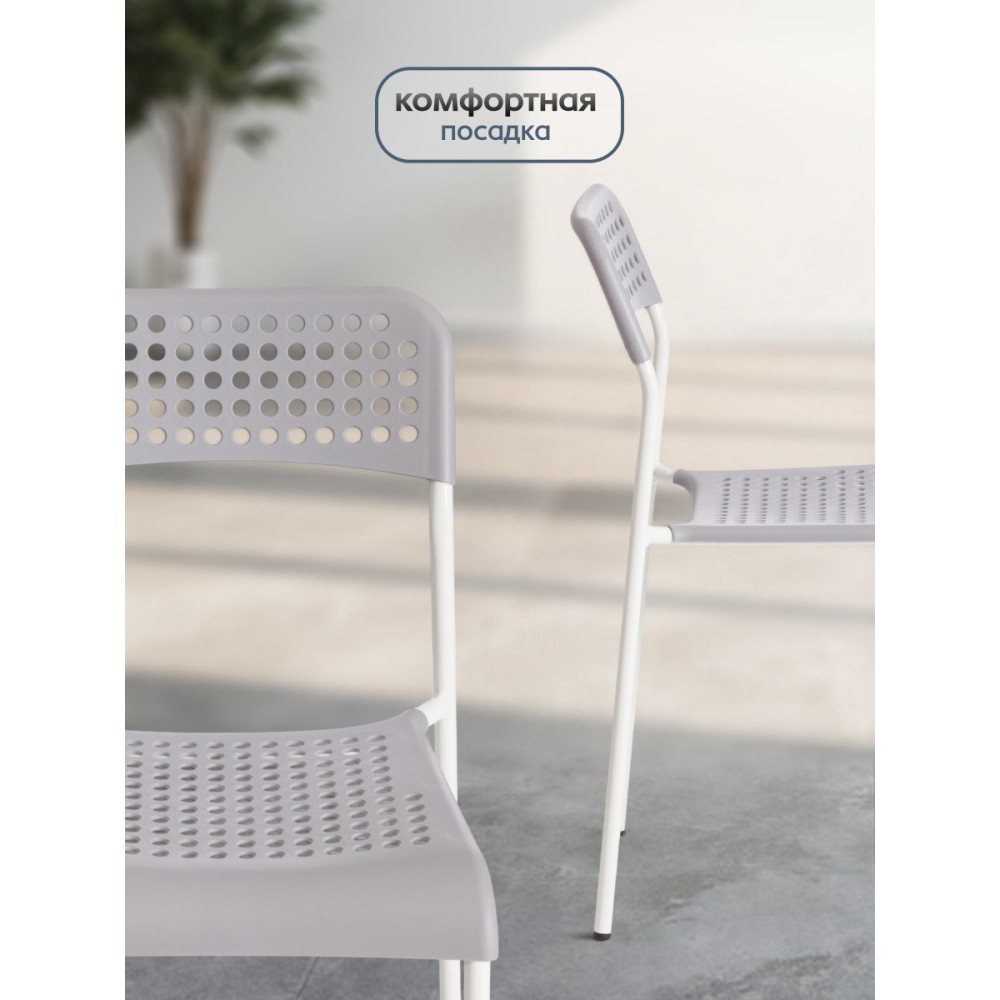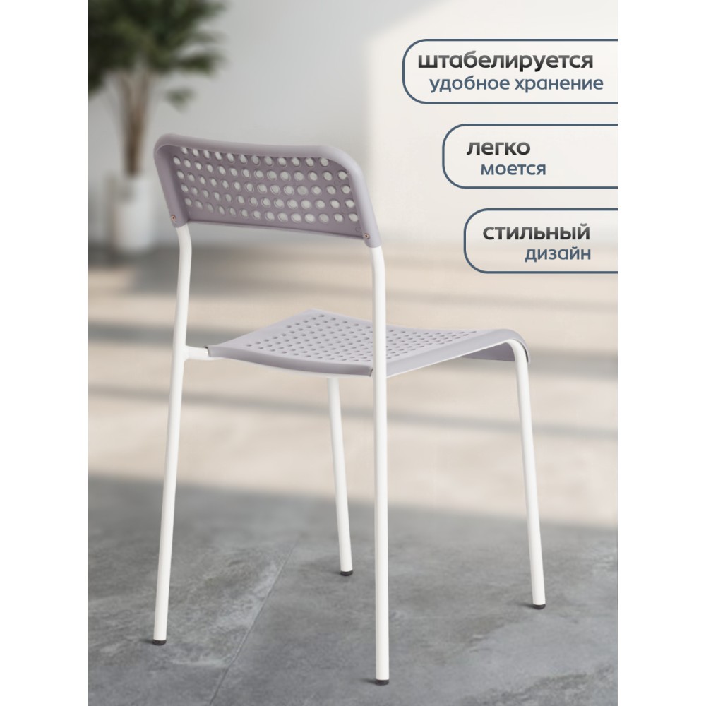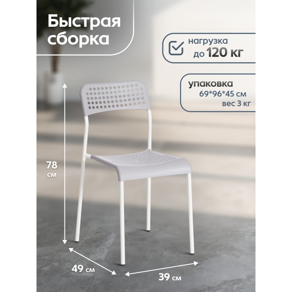 Удобный и легкий стул ADDE из коллекции Modern выполнено в стиле узнаваемых моделей современных скандинавских дизайнеров компании IKEA. Стул станет отличным решением для загородной террасы, дачи, кухни, столовой, веранды ресторана или кафе. Удобная спинка и сиденье обеспечат комфорт для продолжительного отдыха. Широко поставленные ножки делают модель крепкой и устойчивой. Небольшой вес и компактность дают возможность расположить стул в удобном для вас месте. Стул изготовлен из прочного пластика серого цвета и металла, материалы устойчивы к механическим повреждениям, могут выдерживать большую нагрузку. Стул очень прост в сборке, инструкция по сборке прилагается.
