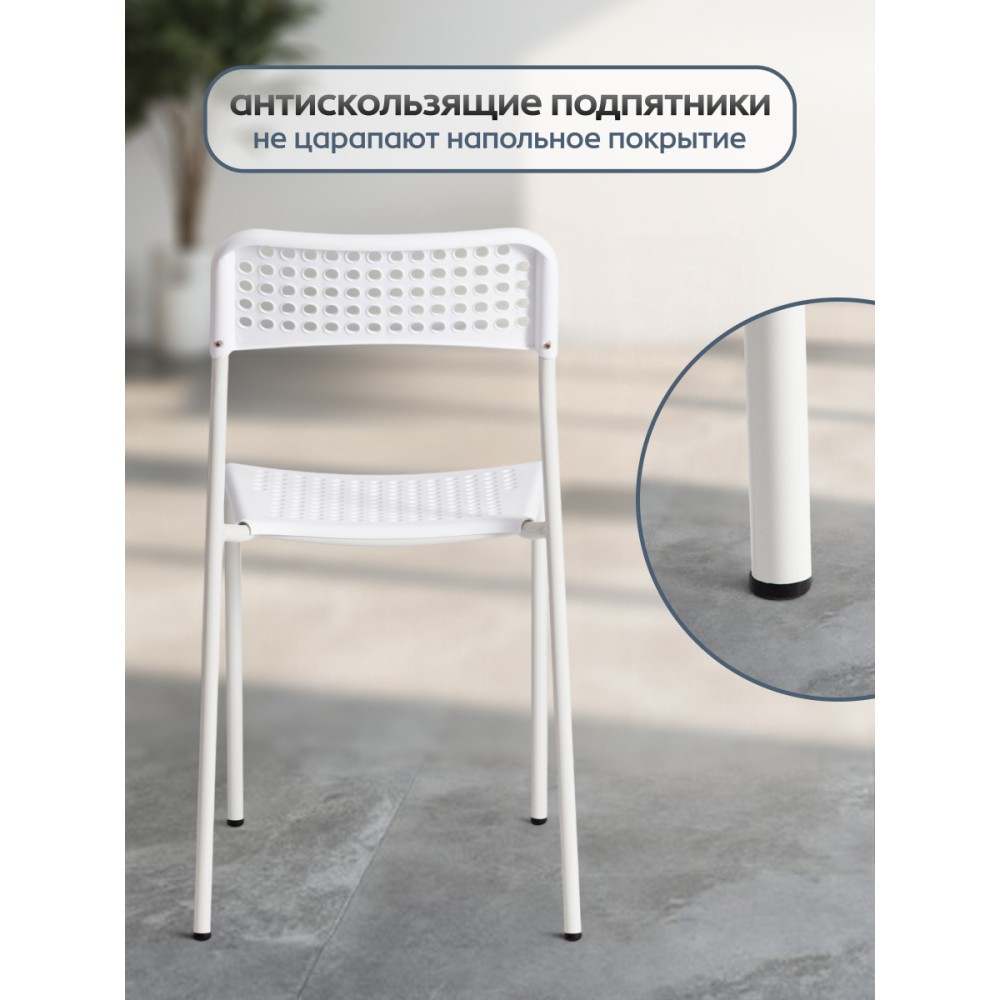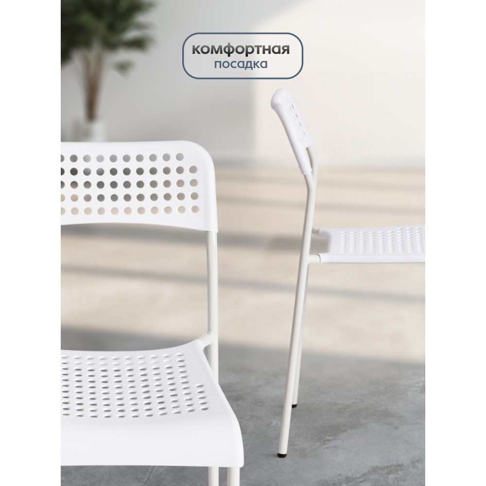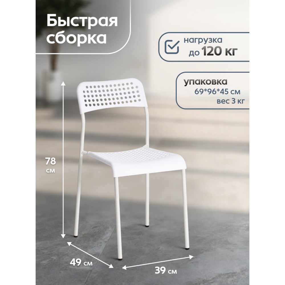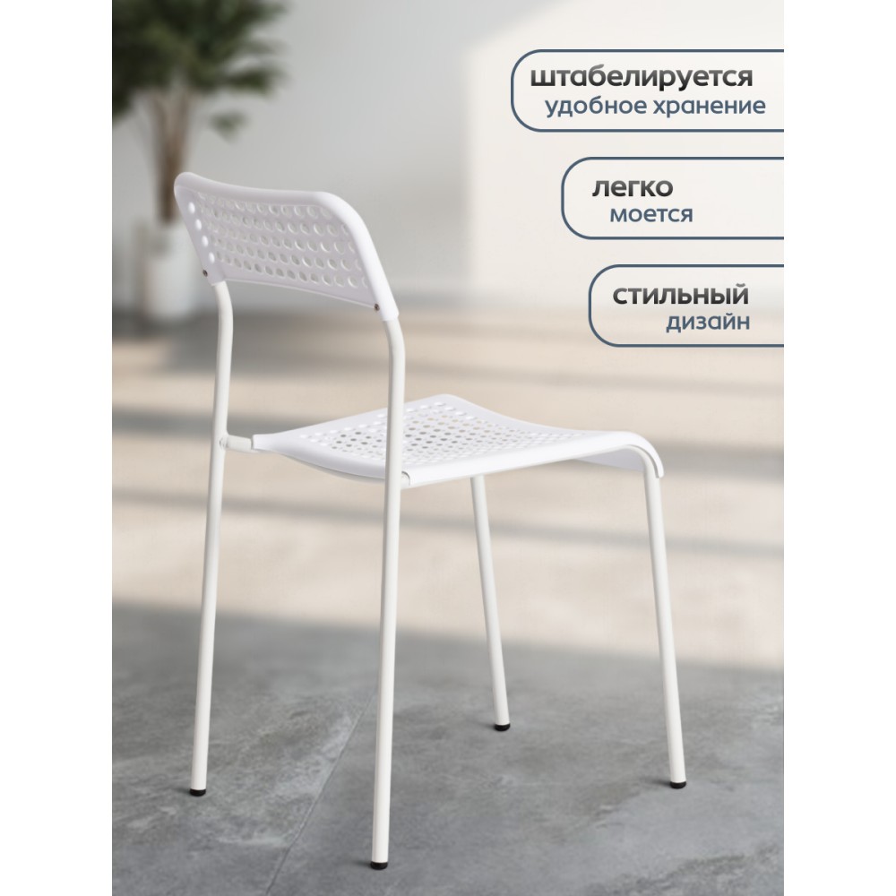 Удобный и легкий стул ADDE из коллекции Modern выполнено в стиле узнаваемых моделей современных скандинавских дизайнеров компании IKEA. Стул станет отличным решением для загородной террасы, дачи, кухни, столовой, веранды ресторана или кафе. Удобная спинка и сиденье обеспечат комфорт для продолжительного отдыха. Широко поставленные ножки делают модель крепкой и устойчивой. Небольшой вес и компактность дают возможность расположить стул в удобном для вас месте. Стул изготовлен из прочного пластика белого цвета и металла, материалы устойчивы к механическим повреждениям, могут выдерживать большую нагрузку. Стул очень прост в сборке, инструкция по сборке прилагается.