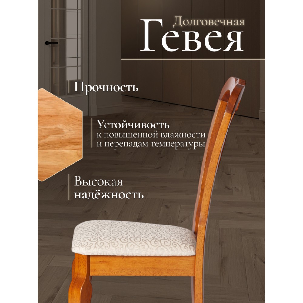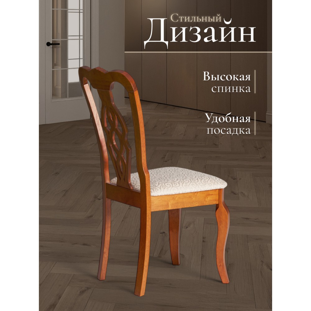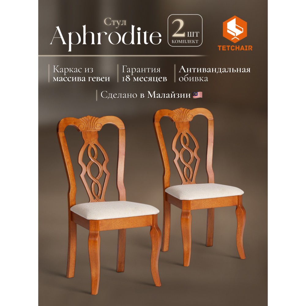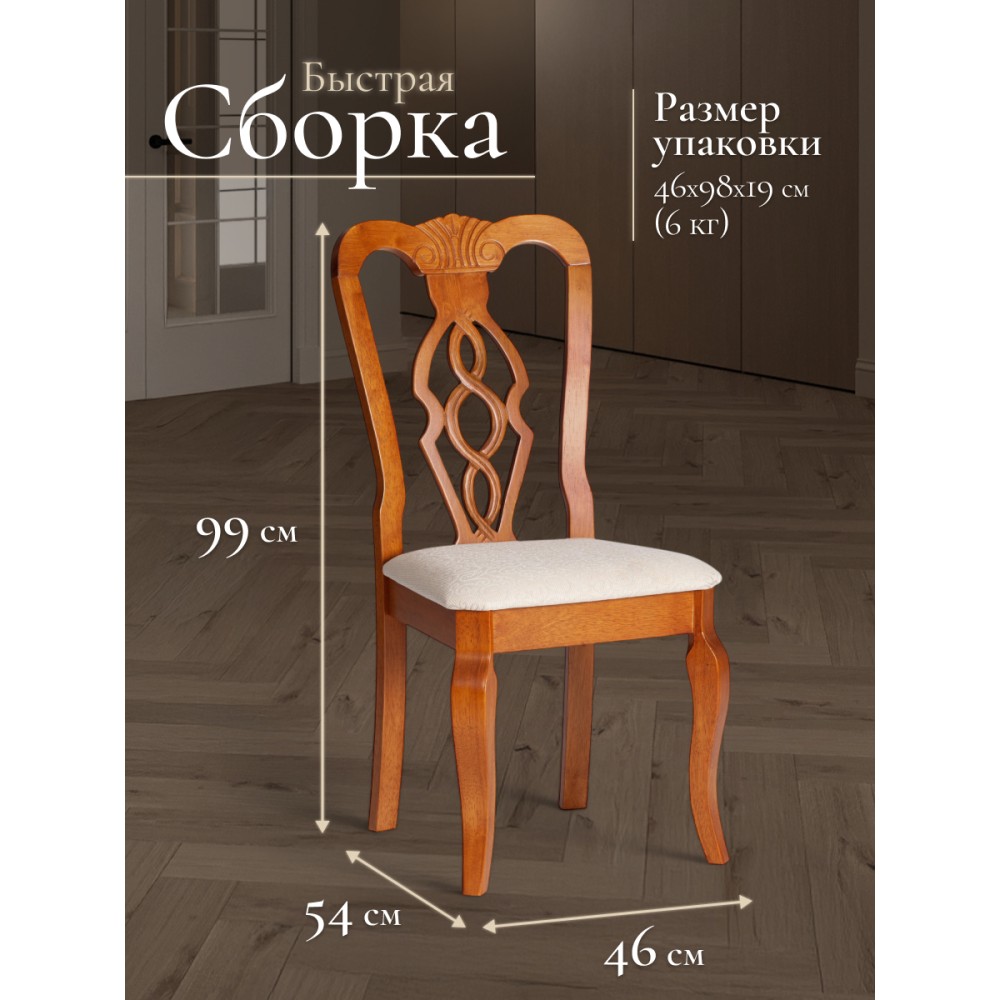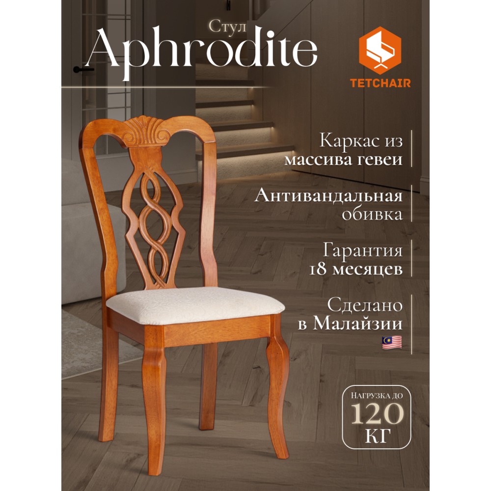 Элегантный деревянный стул Афродита (Aphrodite) из Дельфийской коллекции поможет создать неповторимый образ вашего дома. Удобная спинка стула с изящным узором ручной работы добавляет модели изысканности и утонченности. Крепкие слегка изогнутые ножки устойчивы и надежны. Основание модели изготовлено из прочного массива гевеи - долговечной древесины, не требующей особого ухода. Мягкое сиденье стула не деформируется при эксплуатации, сделано из экологически чистой ткани, сохраняющей свой первоначальный вид долгие годы. Каркас модели цвета espresso (дуб в красноту), отлично сочетается c кремовой тканевой обивкой сиденья, что позволяет вписать стул Афродита в любой интерьер. Комфортный элегантный стул удивит даже самых требовательных владельцев своей безопасностью, основательностью и износостойкостью. Стул отлично подойдет для кухни, гостиной, столовой, дачи, загородного дома, идеальное решение для кафе или ресторана. Модель поставляется в разобранном виде, необходима несложная сборка по инструкци