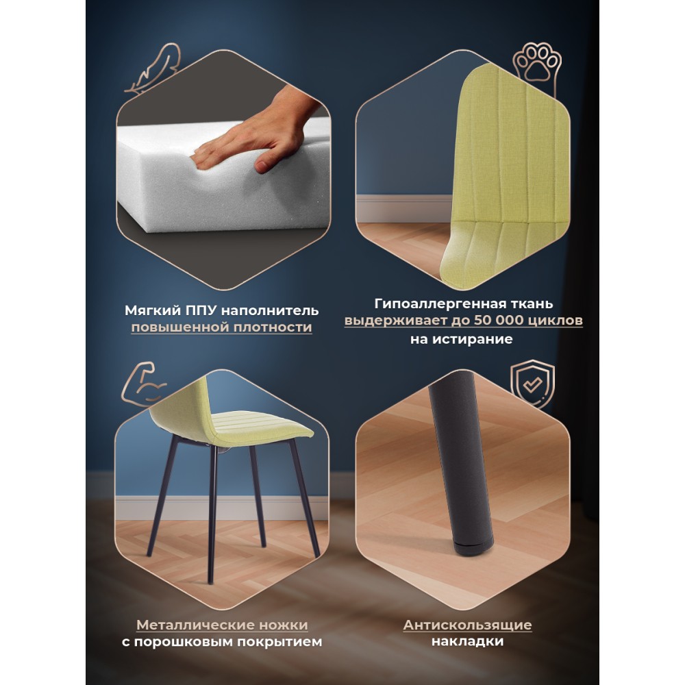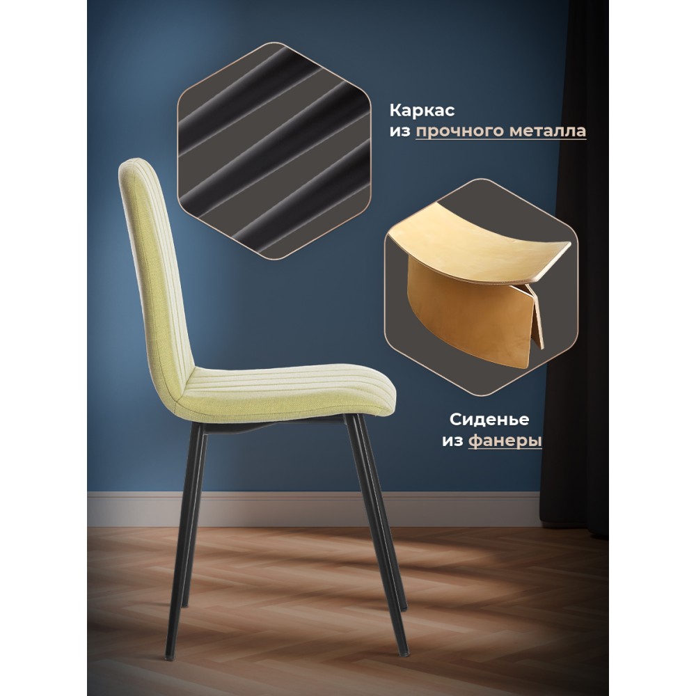 Легкий и элегантный дизайн стула ARC из коллекции Modern украсит собой любую домашнюю обстановку. Этот удобный и легкий стул будет отличным украшением для гостиной, кухни, спальни, ресторана или кафе. Мягкое сиденье и спинка позволяют комфортно сидеть в течение длительного времени. Тканевая обивка фисташкового цвета будет органично смотреться в любом интерьере. Четыре прочные металлические ножки делают модель устойчивой и надежной. Стул будет радовать вас своим первоначальным видом долгие годы. Стул очень прост в сборке, инструкция по сборке прилагается.