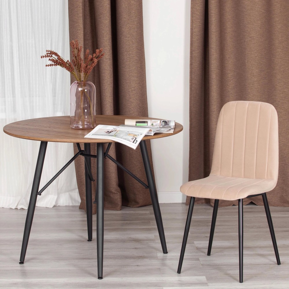 Легкий и элегантный дизайн стула ARC из коллекции Modern украсит собой любую домашнюю обстановку. Этот удобный и легкий стул будет отличным украшением для гостиной, кухни, спальни, ресторана или кафе. Мягкое сиденье и спинка позволяют комфортно сидеть в течение длительного времени. Велюровая бежевого цвета будет органично смотреться в любом интерьере. Черные прочные металлические ножки делают модель устойчивой и надежной. Стул будет радовать вас своим первоначальным видом долгие годы. Стул очень прост в сборке, инструкция по сборке прилагается.