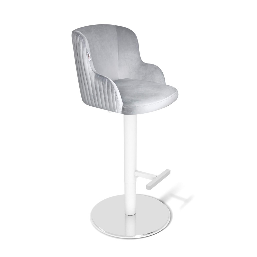 СТИЛЬНЫЙ ДИЗАЙН. Волнообразные подлокотники придают сидению классический вид. Благодаря рисунку на спинке, готовое кресло способно преобразить обстановку и добавить стиля! Сидение отлично смотрится при любом варианте освещения: и естественном, и искусственном. Каркас выполнен из металла с белой матовой краской и блестящим гальваническим хромом. Модель располагается на одной высокой ножке цилиндрической формы. Внизу она плавно переходит в основание, сделанное в виде круга.