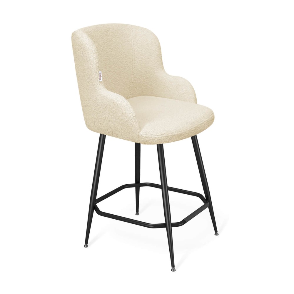 Волнообразные подлокотники придают сидению классический вид. Благодаря модному цвету букле – готовый стул способен преобразить обстановку и добавить стиля! Сидение отлично смотрится при любом варианте освещения: и естественном, и искусственном.