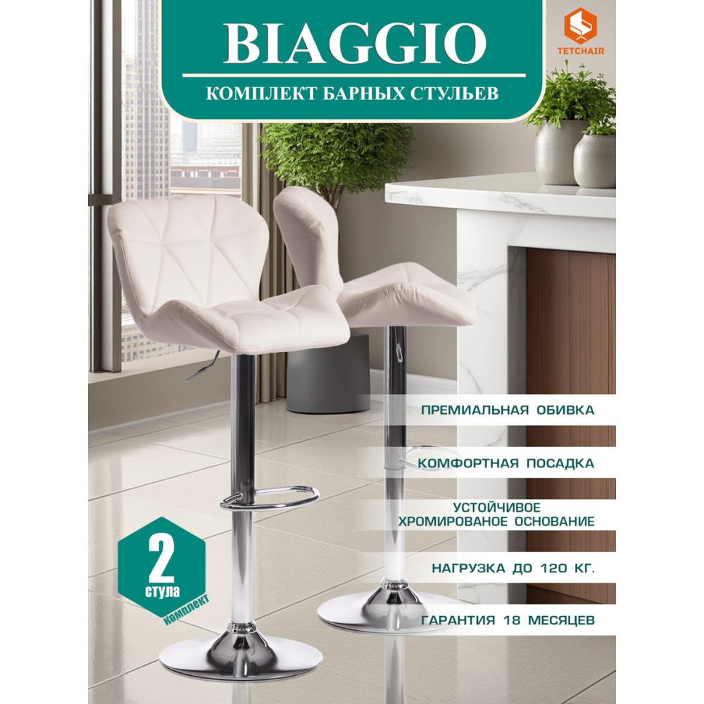Простой и комфортный барный стул BIAGGIO из коллекции Modern будет интересно смотреться в любом интерьере. Он украсить любое пространство, наполнит интерьер легкостью и уютом. Компактные размеры позволяют разместить его даже в небольшом помещении. Идеальное решение для гостиной, бара и кафе. Хромированная металлическая ножка в сочетании с изумительной обивкой из экокожи черного цвета выглядит стильно и современно. Имеется поворотный механизм 360 градусов. Удобное сиденье и спинка, подставка для ног и механизм регулировки высоты дадут возможность с комфортом расположиться за барной стойкой. Круглое основание из стали с хромированным покрытием придает стулу большую устойчивость. Обивка из экокожи – красивая, надежная, не требующая сложного ухода. Материал сочетает в себе мягкость и эластичность натуральной кожи с прочностью текстильных волокон. Металл – надежный материал, благодаря которому стул будет радовать вас своим первоначальным видом долгие годы. Стул хорошо подойдет для гостиной, для кухни, для бара, для ресторана или для кафе. Стул очень прост в сборке, инструкция по сборке прилагается.