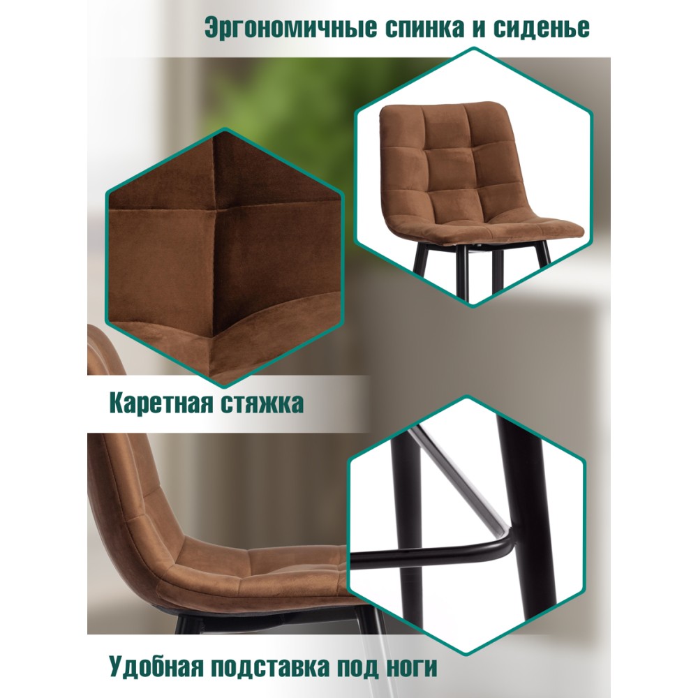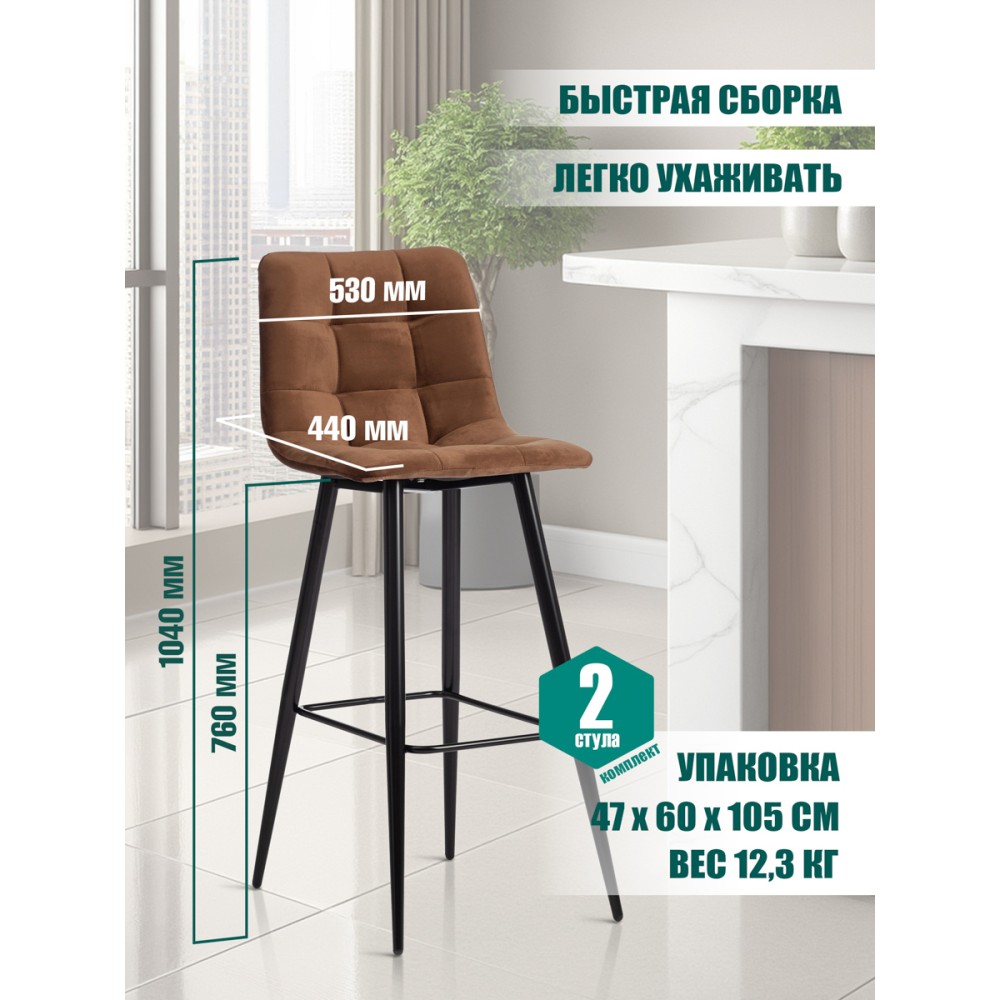 Удобный и практичный дизайн барного стула CHILLY из коллекции Modern позволит ему вписаться практически в любой интерьер. Стул можно расположить в гостиной, кухне или столовой. Лаконичная форма и удачное сочетание материалов идеально соответствуют концепции современного стильного пространства. Простая форма, стеганая обивка коричневого цвета и черные металлические ножки придают стулу особую привлекательность, оригинальность и визуальную легкость. Удобная подставка для ног, мягкое сиденье и спинка позволяют комфортно расположиться на длительное время. Мягкая, бархатистая и приятная на ощупь обивка смотрится дорого, стильно и элегантно. Тканевая обивка отличается устойчивостью к износу и долговечностью, благодаря чему стул не требует специального ухода и будет долгое время радовать вас своим первоначальным видом. Стул хорошо подойдет для гостиной, для кухни, для бара, для ресторана или для кафе. Стул очень прост в сборке, инструкция по сборке прилагается.