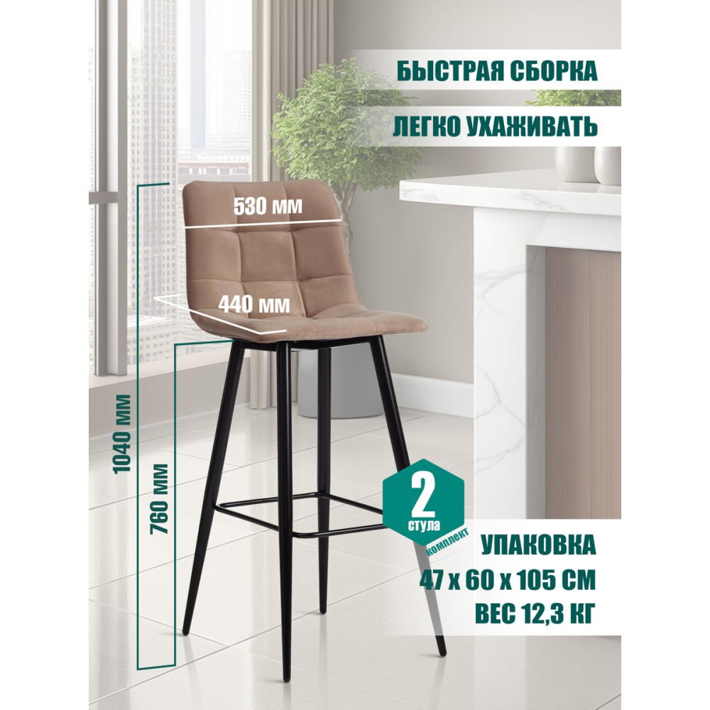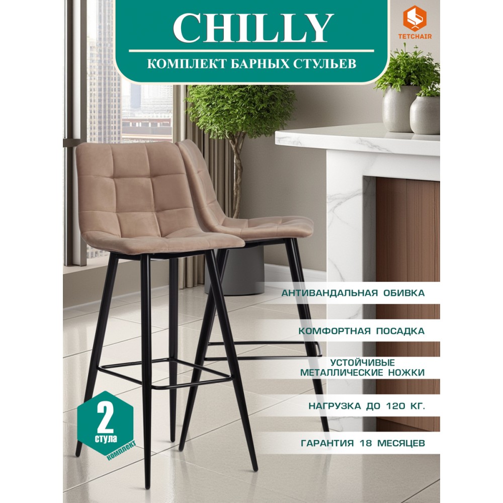 Удобный и практичный дизайн барного стула CHILLY из коллекции Modern позволит ему вписаться практически в любой интерьер. Стул можно расположить в гостиной, кухне или столовой. Лаконичная форма и удачное сочетание материалов идеально соответствуют концепции современного стильного пространства. Простая форма, стеганая обивка бежевого цвета и черные металлические ножки придают стулу особую привлекательность, оригинальность и визуальную легкость. Удобная подставка для ног, мягкое сиденье и спинка позволяют комфортно расположиться на длительное время. Мягкая, бархатистая и приятная на ощупь обивка смотрится дорого, стильно и элегантно. Тканевая обивка отличается устойчивостью к износу и долговечностью, благодаря чему стул не требует специального ухода и будет долгое время радовать вас своим первоначальным видом. Стул хорошо подойдет для гостиной, для кухни, для бара, для ресторана или для кафе. Стул очень прост в сборке, инструкция по сборке прилагается.