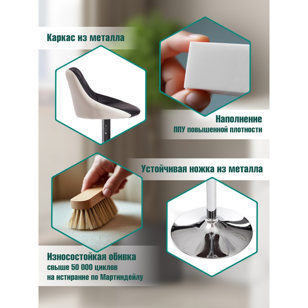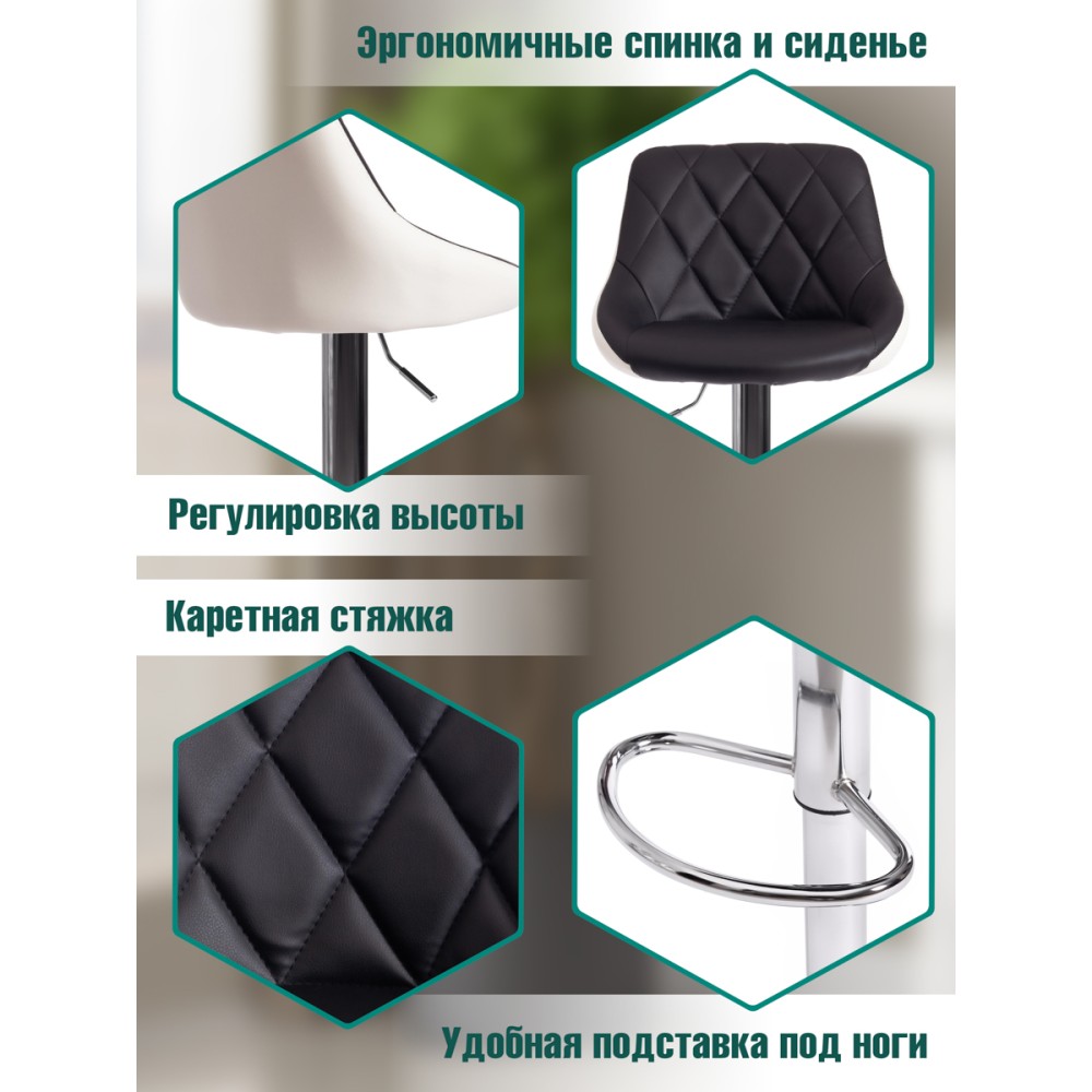 Стильный барный стул MESSY из коллекции Modern задает настроение вашему пространству. Удобный и привлекательный стул будет украшением городской квартиры, загородного дома, кафе или ресторана. Оригинальное сочетание хромированного металла с черно-белой обивкой из экокожи выглядит стильно и современно. Удобная спинка, мягкое сиденье, подставка для ног и механизм регулировки высоты позволят комфортно расположиться за барной стойкой на продолжительное время. Круглое основание из стали с хромированным покрытием придает стулу большую устойчивость. Обивка из экокожи – красивая, надежная, легкая в уходе. Материал сочетает в себе мягкость и эластичность натуральной кожи с прочностью текстильных волокон. Металл – надежный материал, благодаря которому стул будет радовать вас своим первоначальным видом долгие годы. Стул хорошо подойдет для гостиной, для кухни, для бара, для ресторана или для кафе. Стул очень прост в сборке, инструкция по сборке прилагается.