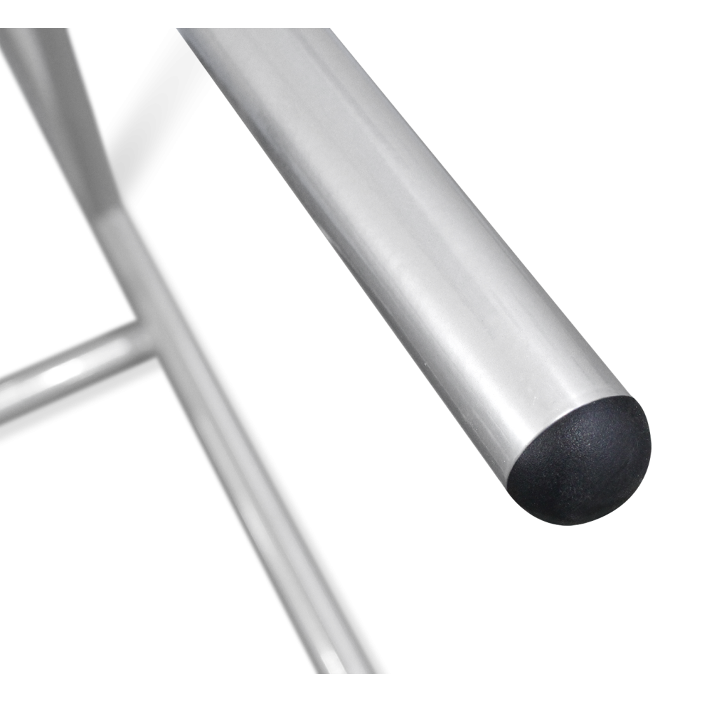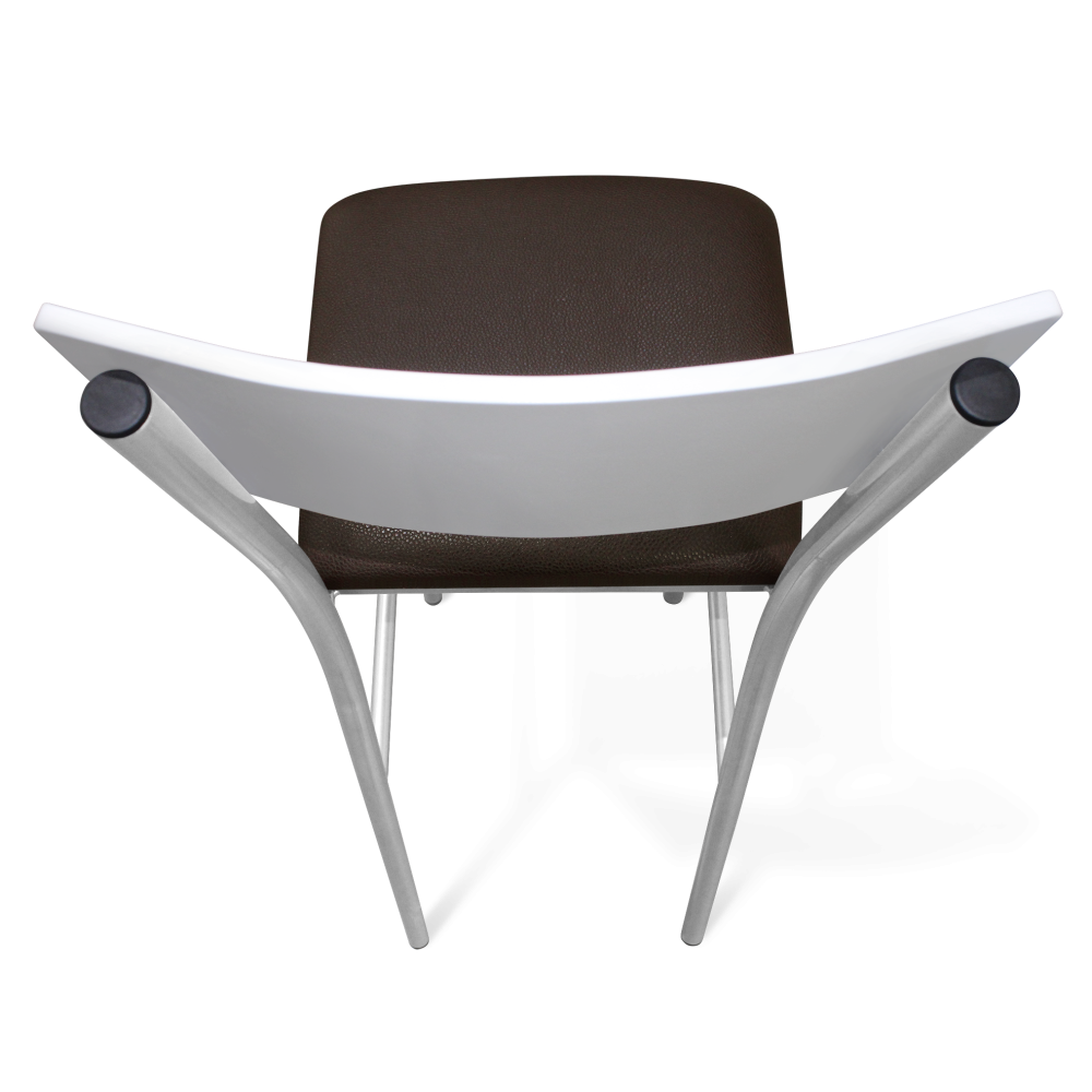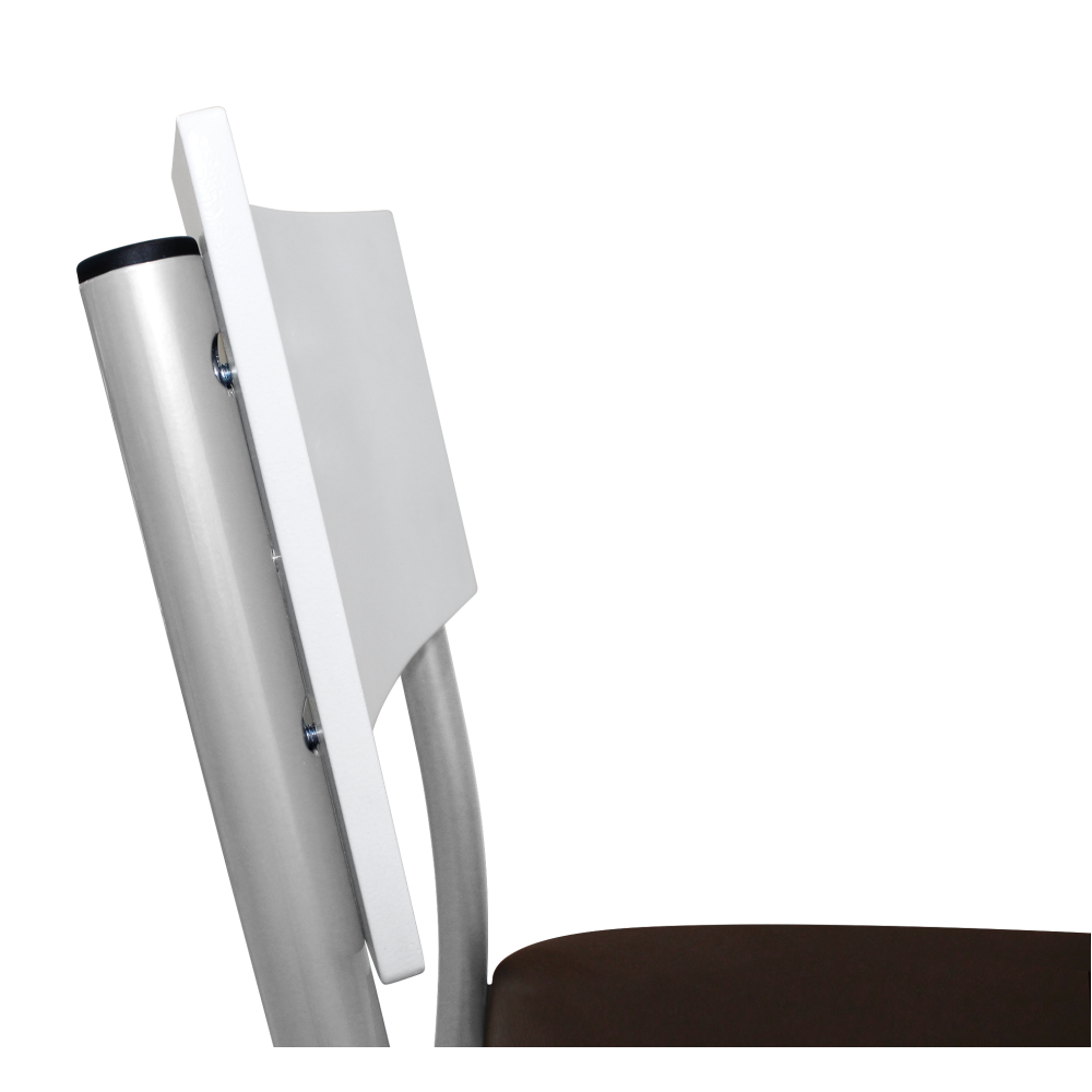 - Спинка стула выполнена из алюминиевого сплава толщиной 10 мм. и установлена на скрытый крепеж. Окрашена порошковой краской белого цвета;