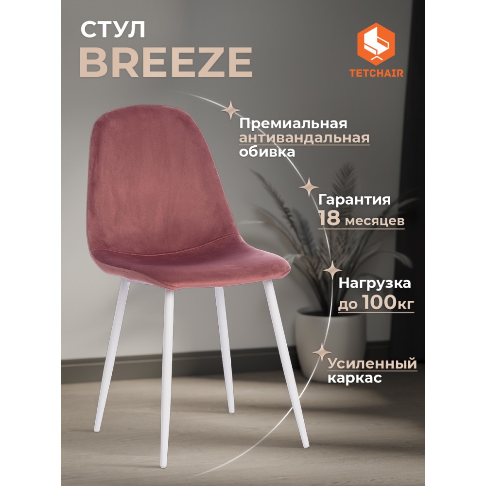 Легкий и элегантный дизайн стула BREEZE из коллекции Modern украсит собой любую домашнюю обстановку. Этот удобный и легкий стул будет отличным украшением городской квартиры, загородного дома, кафе или ресторана. Велюровая обивка благородного цвета будет органично смотреться в любом помещении. Удобные формы сиденья и спинки обеспечат комфорт на протяжении длительного времени. Ножки стула выполнены из металла и окрашены в натуральный цвет. Это прочный и долговечный материал, не требующий специального ухода, способный выдерживать большую нагрузку. Тканевая обивка не мнётся, не меняет форму, пропускает воздух, экологична и гипоаллергенна. Стул будет радовать вас своим первоначальным видом долгие годы. Стул подойдёт для гостиной, для кухни, для спальни, для ресторана или для кафе. Стул очень прост в сборке, инструкция по сборке прилагается.Нагрузка 100 кг.