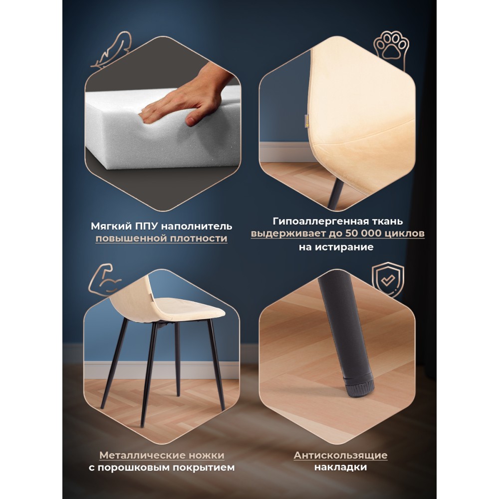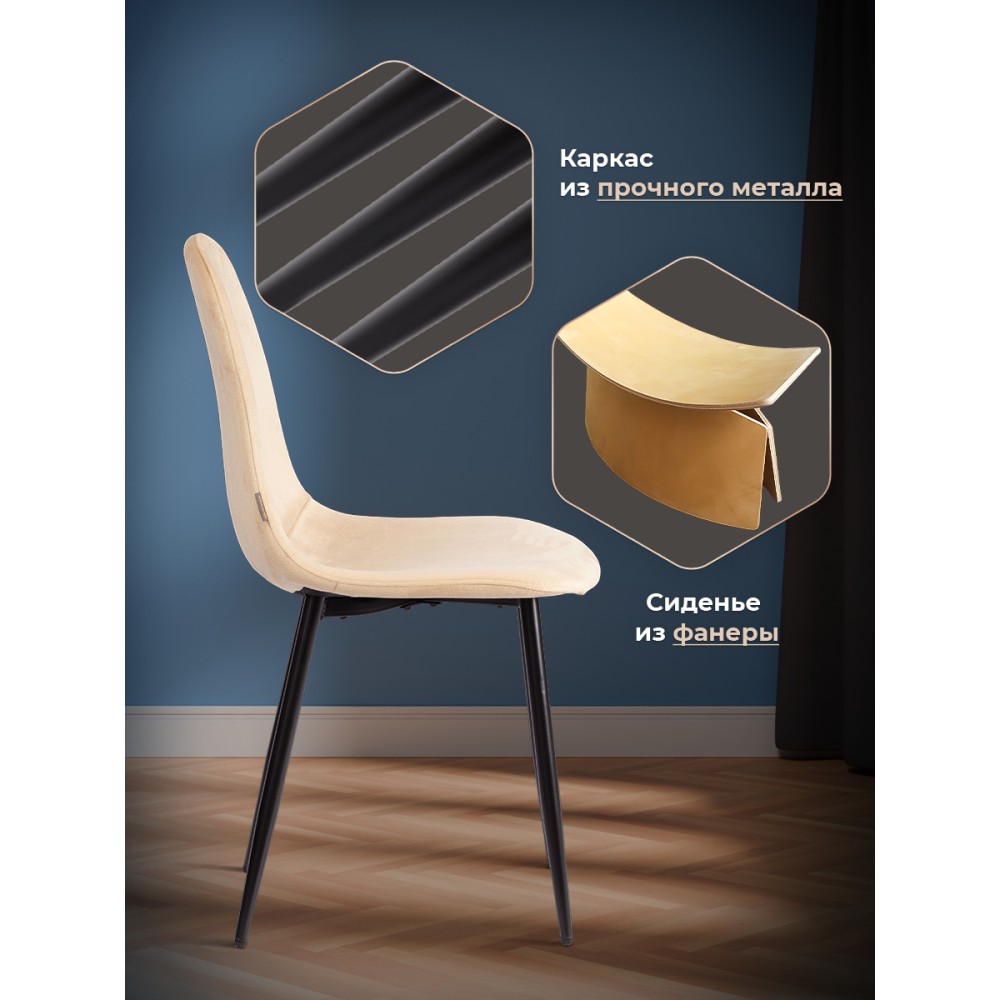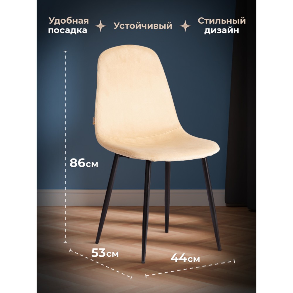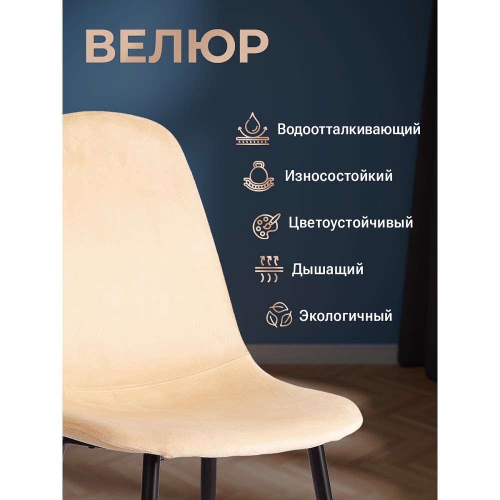 Легкий и элегантный дизайн стула BREEZE из коллекции Modern украсит собой любую домашнюю обстановку. Этот удобный и легкий стул будет отличным украшением городской квартиры, загородного дома, кафе или ресторана. Велюровая обивка благородного цвета будет органично смотреться в любом помещении. Удобные формы сиденья и спинки обеспечат комфорт на протяжении длительного времени. Ножки стула выполнены из металла и окрашены в натуральный цвет. Это прочный и долговечный материал, не требующий специального ухода, способный выдерживать большую нагрузку. Тканевая обивка не мнётся, не меняет форму, пропускает воздух, экологична и гипоаллергенна. Стул будет радовать вас своим первоначальным видом долгие годы. Стул подойдёт для гостиной, для кухни, для спальни, для ресторана или для кафе. Стул очень прост в сборке, инструкция по сборке прилагается.Нагрузка 100 кг.