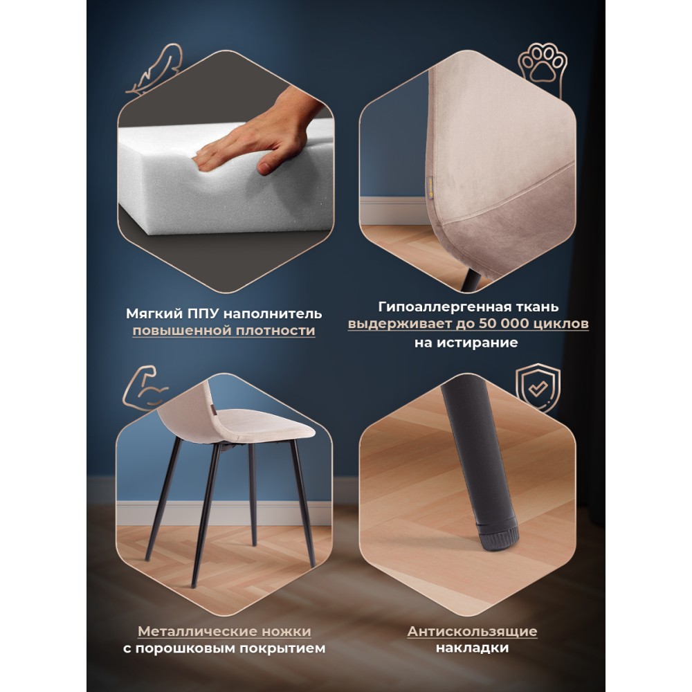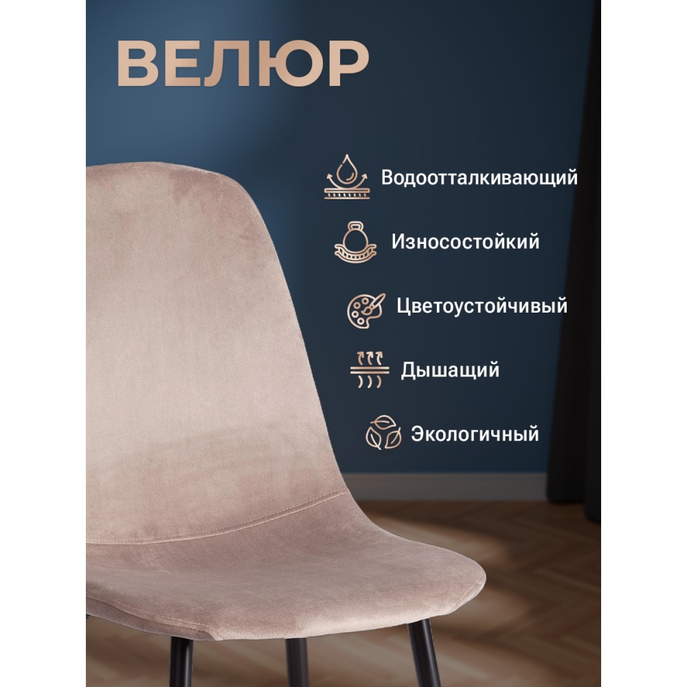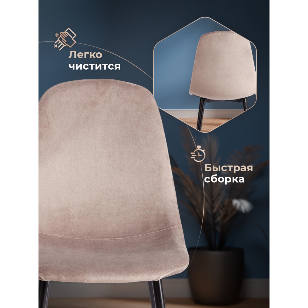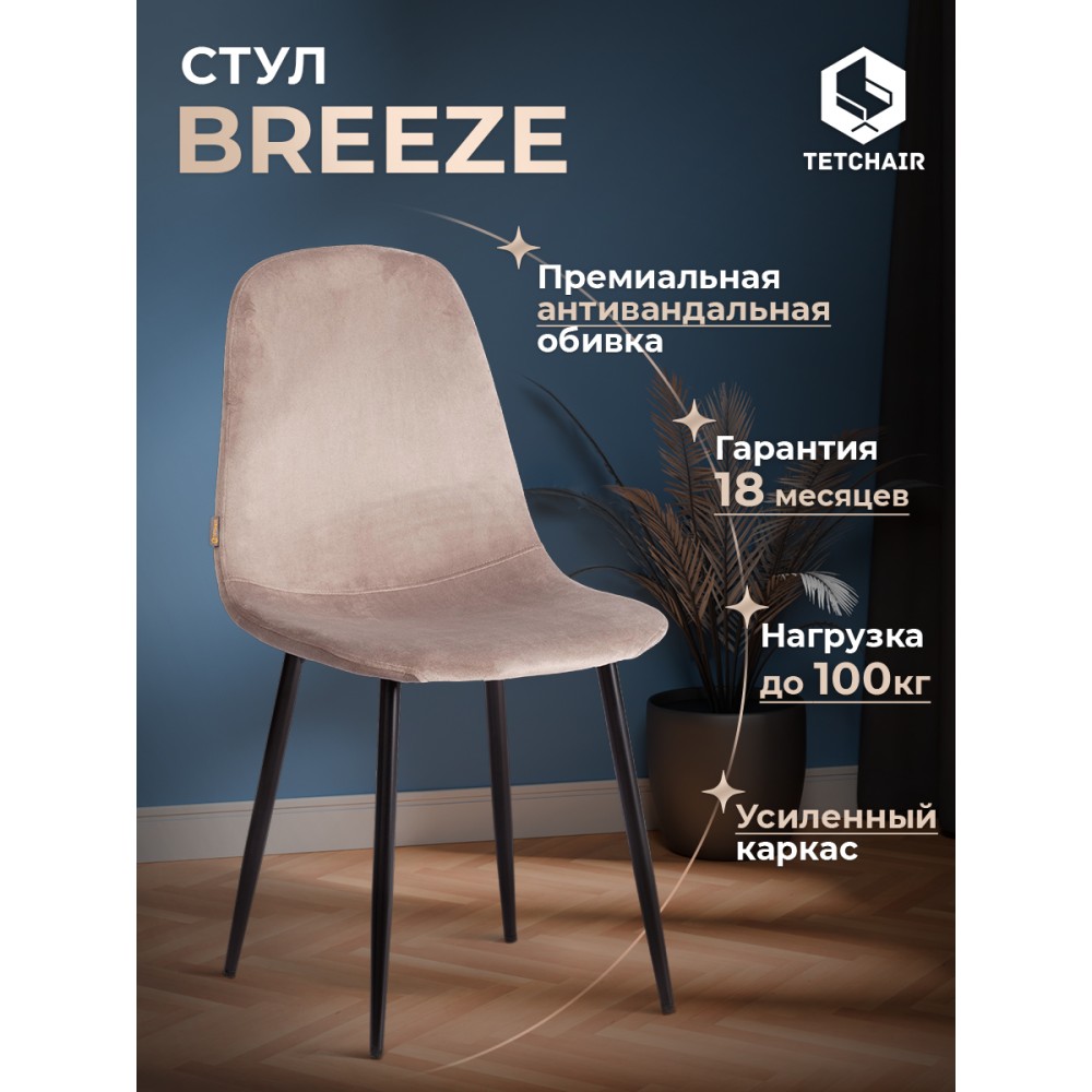 Легкий и элегантный дизайн стула BREEZE из коллекции Modern украсит собой любую домашнюю обстановку. Этот удобный и легкий стул будет отличным украшением городской квартиры, загородного дома, кафе или ресторана. Велюровая обивка благородного цвета будет органично смотреться в любом помещении. Удобные формы сиденья и спинки обеспечат комфорт на протяжении длительного времени. Ножки стула выполнены из металла и окрашены в натуральный цвет. Это прочный и долговечный материал, не требующий специального ухода, способный выдерживать большую нагрузку. Тканевая обивка не мнётся, не меняет форму, пропускает воздух, экологична и гипоаллергенна. Стул будет радовать вас своим первоначальным видом долгие годы. Стул подойдёт для гостиной, для кухни, для спальни, для ресторана или для кафе. Стул очень прост в сборке, инструкция по сборке прилагается.Нагрузка 100 кг.