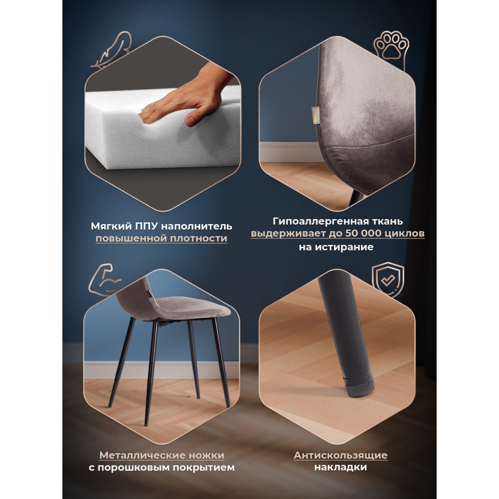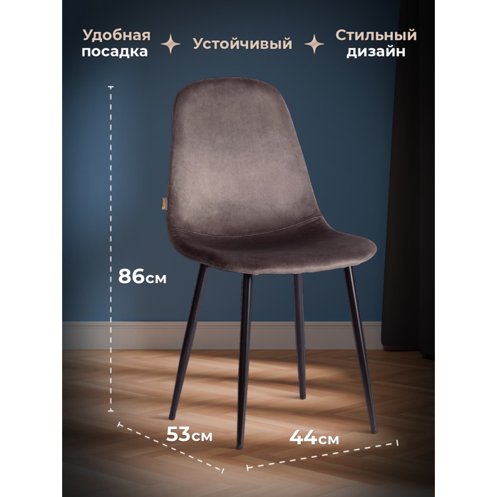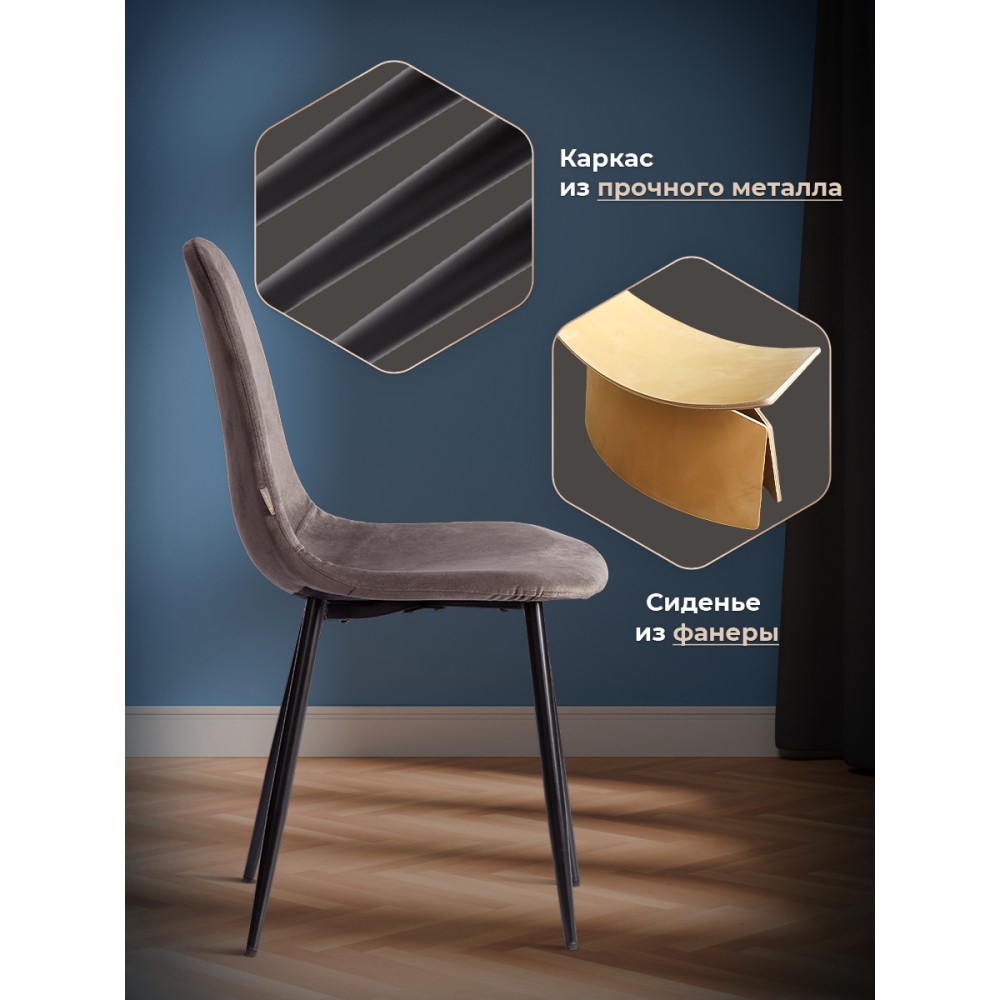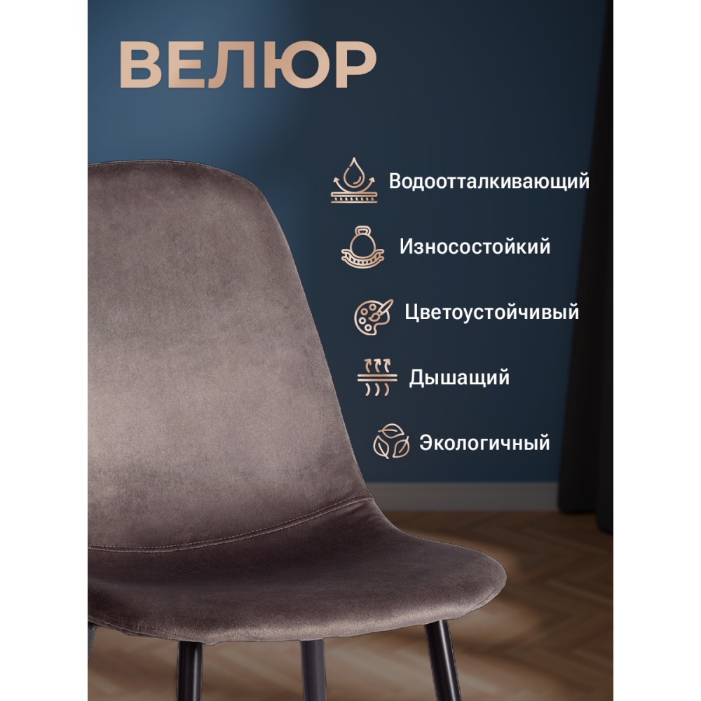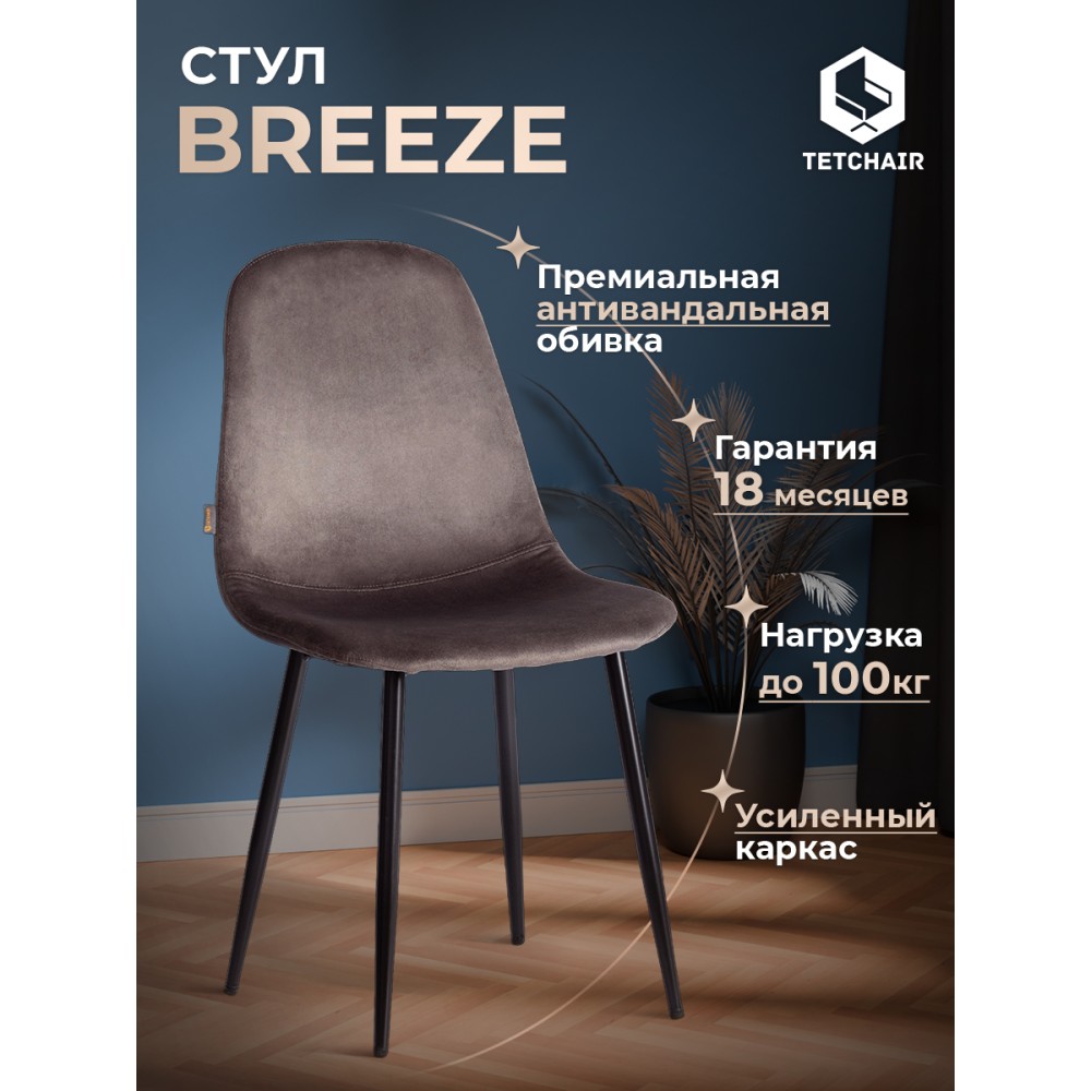 Легкий и элегантный дизайн стула BREEZE из коллекции Modern украсит собой любую домашнюю обстановку. Этот удобный и легкий стул будет отличным украшением городской квартиры, загородного дома, кафе или ресторана. Велюровая обивка благородного цвета будет органично смотреться в любом помещении. Удобные формы сиденья и спинки обеспечат комфорт на протяжении длительного времени. Ножки стула выполнены из металла и окрашены в натуральный цвет. Это прочный и долговечный материал, не требующий специального ухода, способный выдерживать большую нагрузку. Тканевая обивка не мнётся, не меняет форму, пропускает воздух, экологична и гипоаллергенна. Стул будет радовать вас своим первоначальным видом долгие годы. Стул подойдёт для гостиной, для кухни, для спальни, для ресторана или для кафе. Стул очень прост в сборке, инструкция по сборке прилагается.Нагрузка 100 кг.