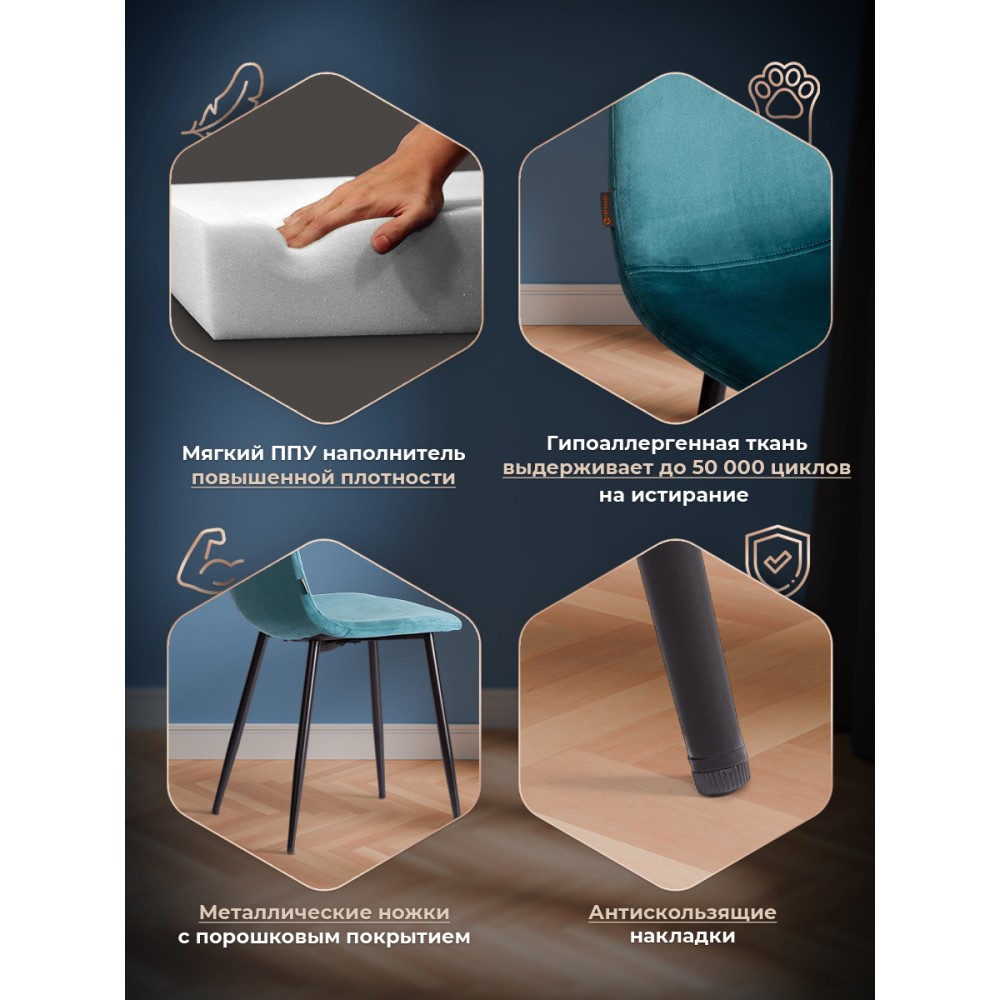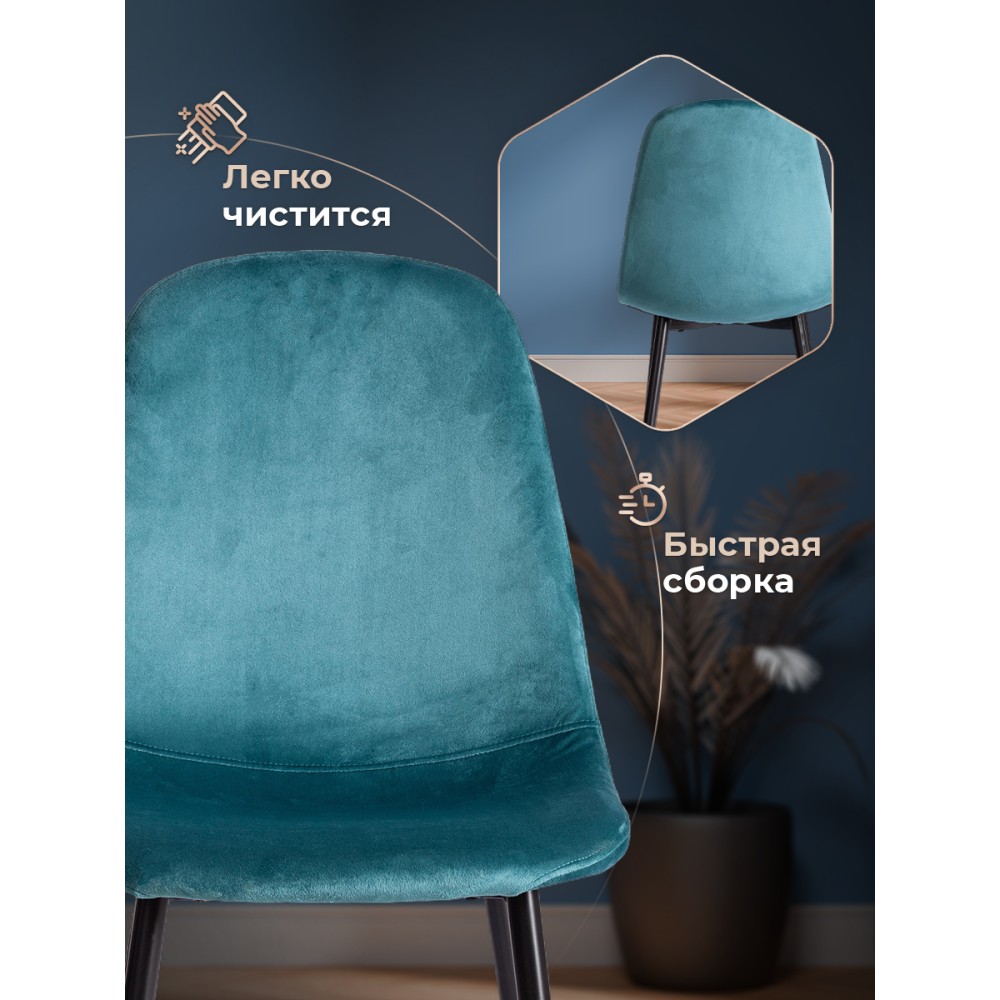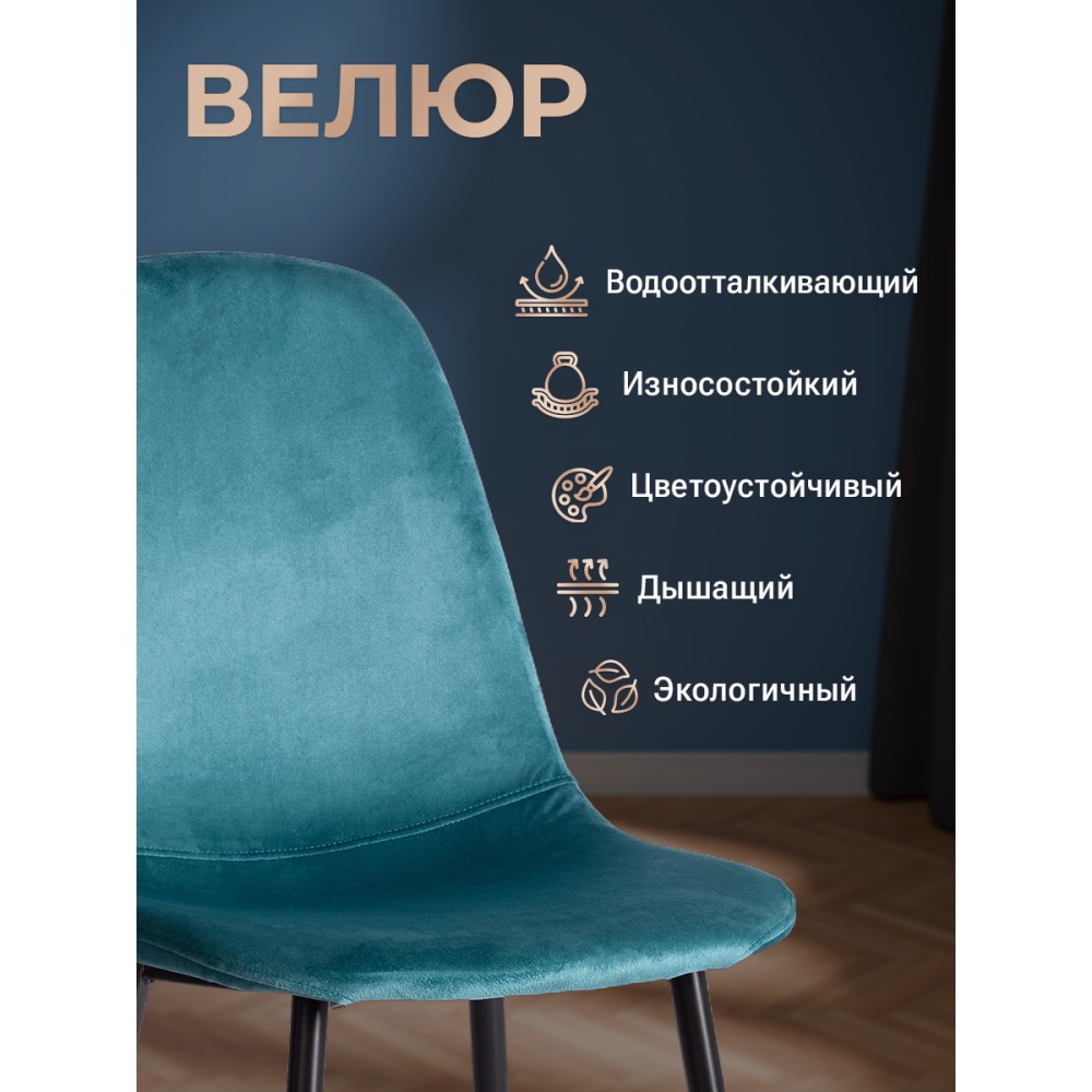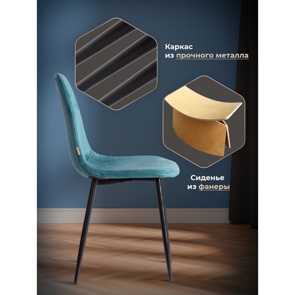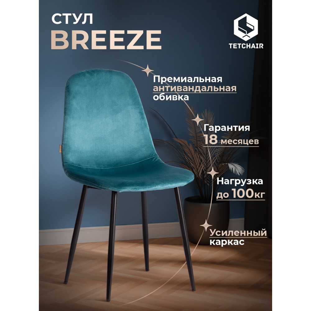 Легкий и элегантный дизайн стула BREEZE из коллекции Modern украсит собой любую домашнюю обстановку. Этот удобный и легкий стул будет отличным украшением городской квартиры, загородного дома, кафе или ресторана. Велюровая обивка благородного цвета будет органично смотреться в любом помещении. Удобные формы сиденья и спинки обеспечат комфорт на протяжении длительного времени. Ножки стула выполнены из металла и окрашены в натуральный цвет. Это прочный и долговечный материал, не требующий специального ухода, способный выдерживать большую нагрузку. Тканевая обивка не мнётся, не меняет форму, пропускает воздух, экологична и гипоаллергенна. Стул будет радовать вас своим первоначальным видом долгие годы. Стул подойдёт для гостиной, для кухни, для спальни, для ресторана или для кафе. Стул очень прост в сборке, инструкция по сборке прилагается.Нагрузка 100 кг.