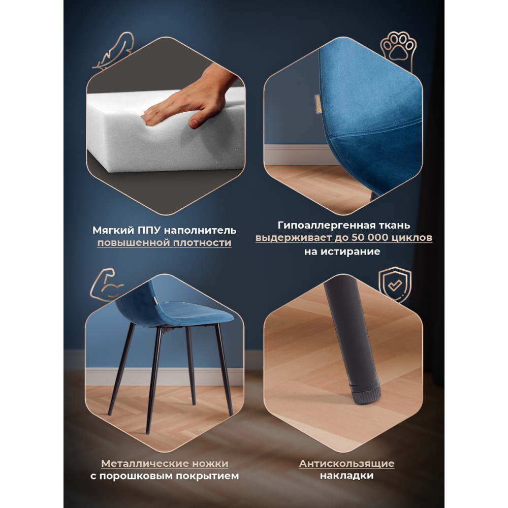 Легкий и элегантный дизайн стула BREEZE из коллекции Modern украсит собой любую домашнюю обстановку. Этот удобный и легкий стул будет отличным украшением городской квартиры, загородного дома, кафе или ресторана. Велюровая обивка благородного цвета будет органично смотреться в любом помещении. Удобные формы сиденья и спинки обеспечат комфорт на протяжении длительного времени. Ножки стула выполнены из металла и окрашены в натуральный цвет. Это прочный и долговечный материал, не требующий специального ухода, способный выдерживать большую нагрузку. Тканевая обивка не мнётся, не меняет форму, пропускает воздух, экологична и гипоаллергенна. Стул будет радовать вас своим первоначальным видом долгие годы. Стул подойдёт для гостиной, для кухни, для спальни, для ресторана или для кафе. Стул очень прост в сборке, инструкция по сборке прилагается.Нагрузка 100 кг.
