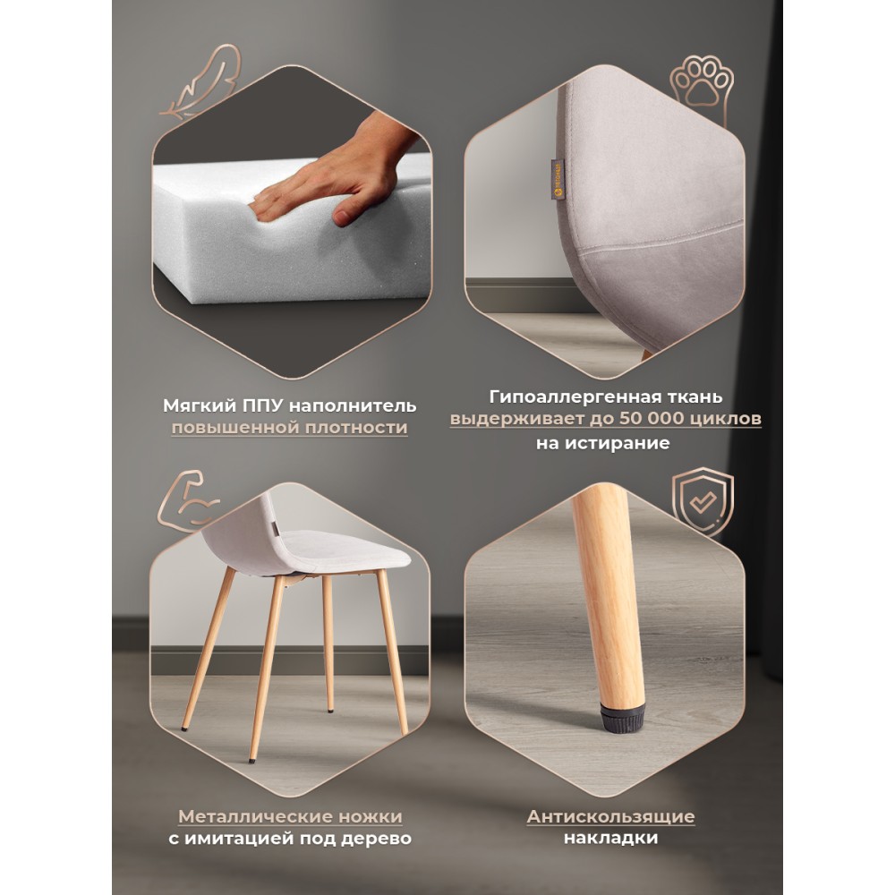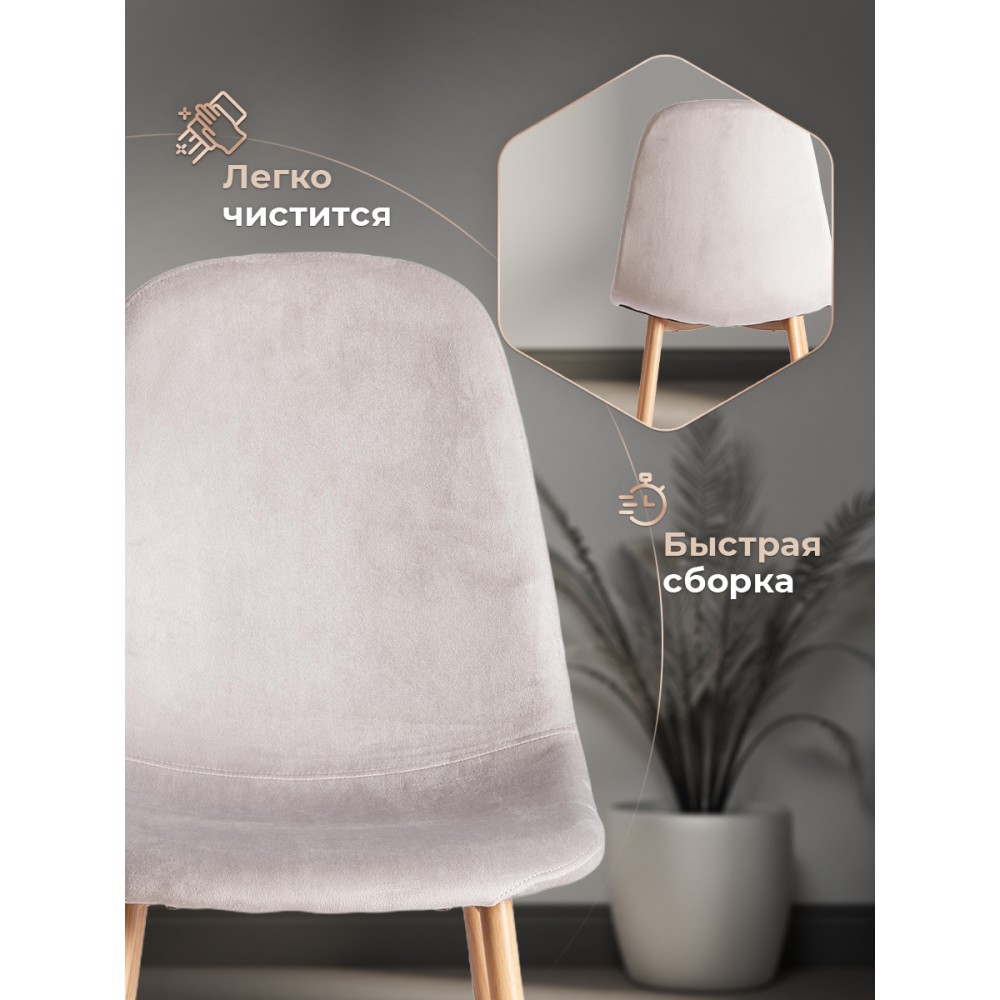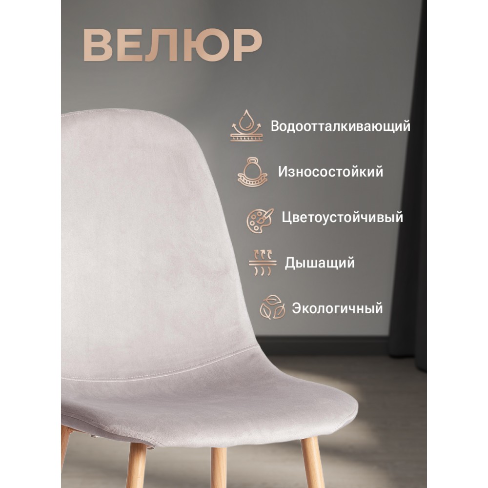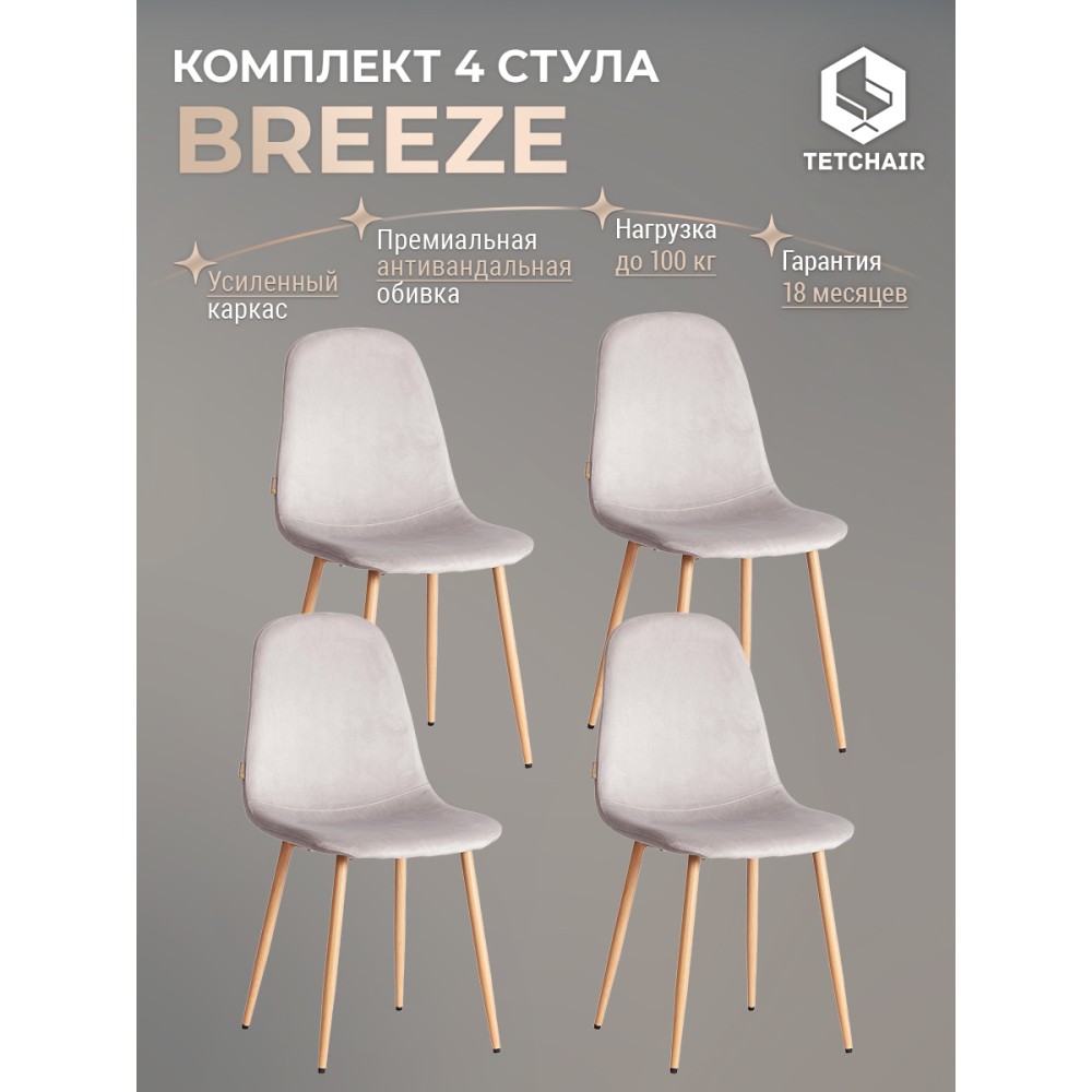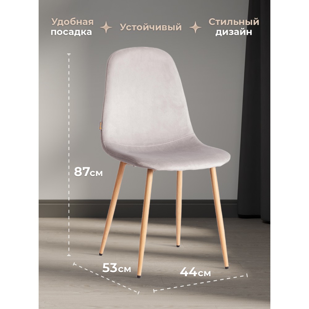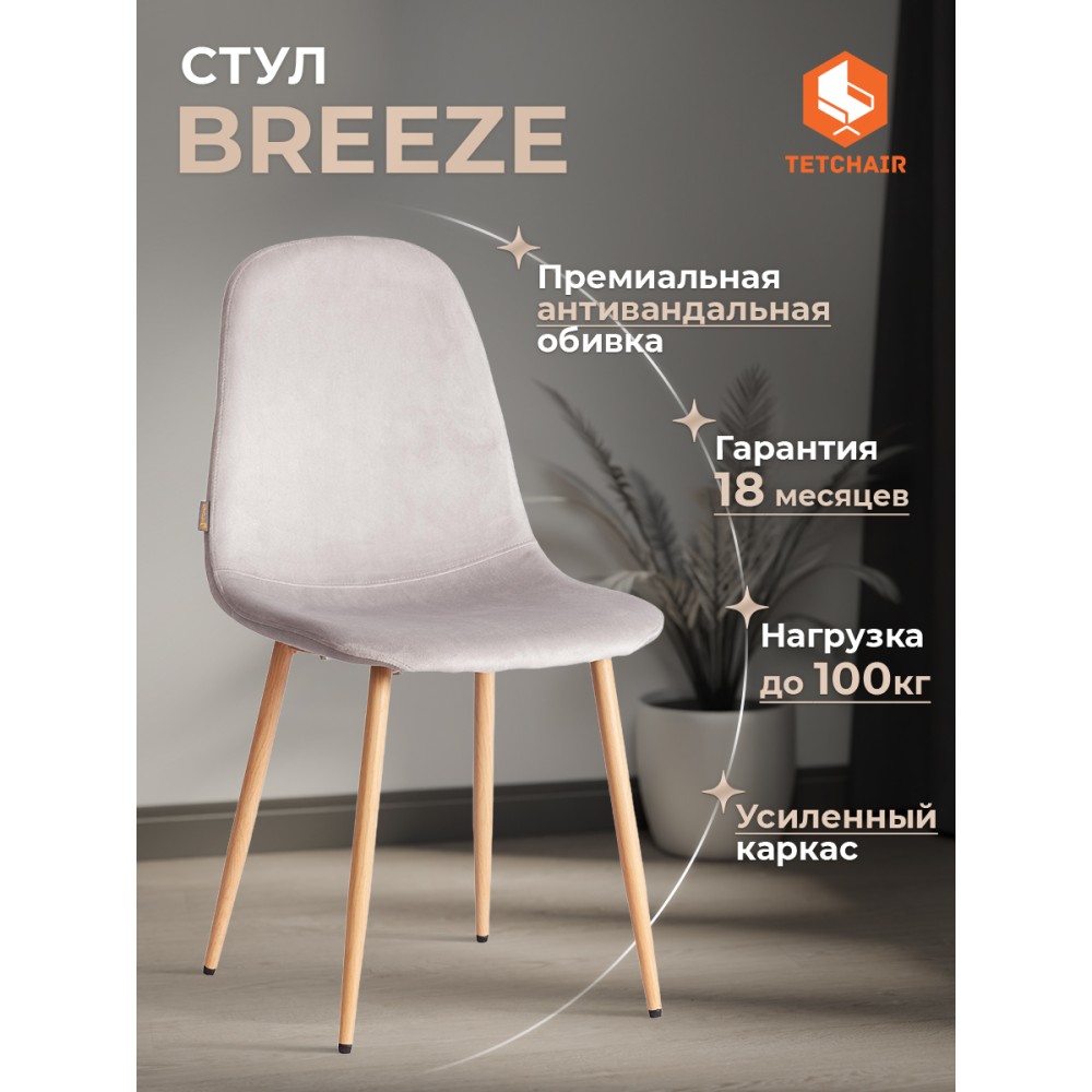 Легкий и элегантный дизайн стула BREEZE из коллекции Modern украсит собой любую домашнюю обстановку. Этот удобный и легкий стул будет отличным украшением городской квартиры, загородного дома, кафе или ресторана. Велюровая обивка благородного цвета будет органично смотреться в любом помещении. Удобные формы сиденья и спинки обеспечат комфорт на протяжении длительного времени. Ножки стула выполнены из металла и окрашены в натуральный цвет. Это прочный и долговечный материал, не требующий специального ухода, способный выдерживать большую нагрузку. Тканевая обивка не мнётся, не меняет форму, пропускает воздух, экологична и гипоаллергенна. Стул будет радовать вас своим первоначальным видом долгие годы. Стул подойдёт для гостиной, для кухни, для спальни, для ресторана или для кафе. Стул очень прост в сборке, инструкция по сборке прилагается.Нагрузка 100 кг.