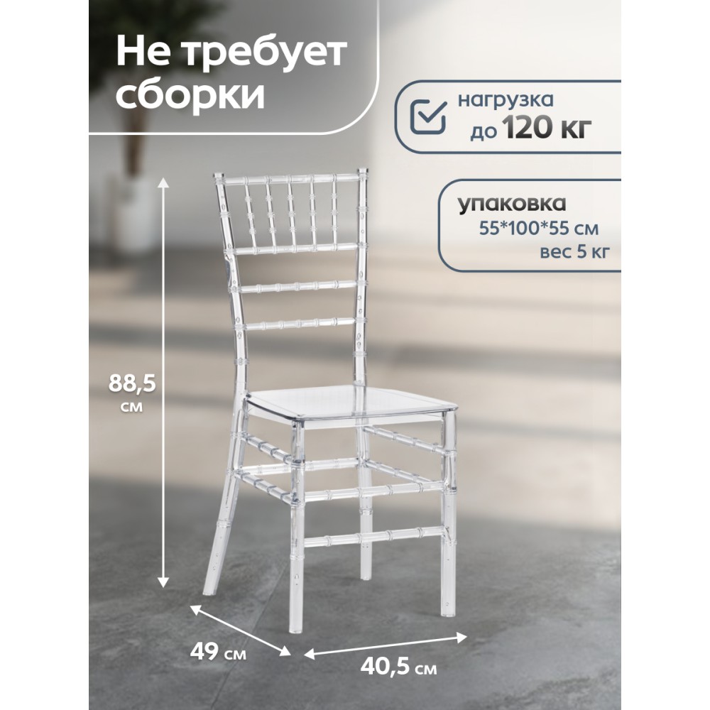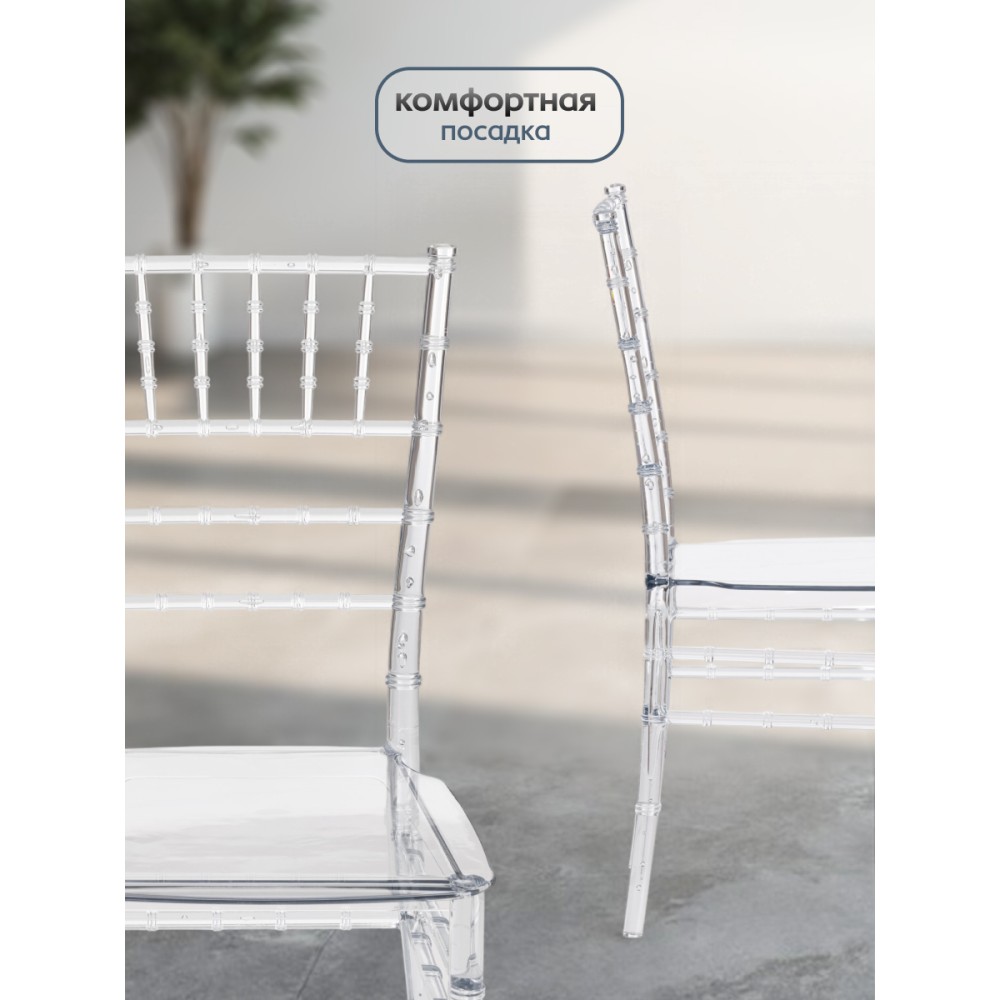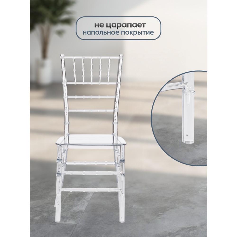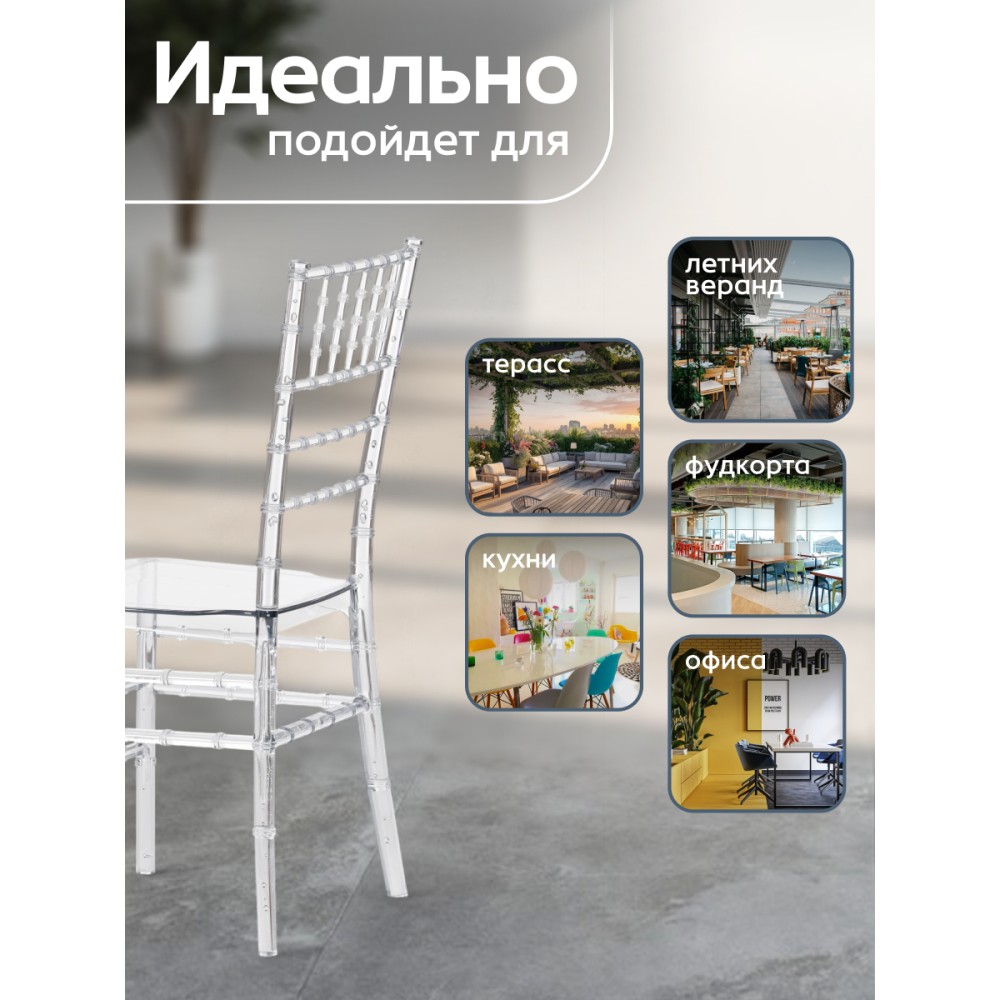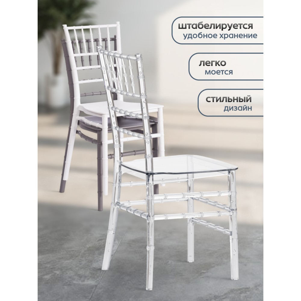 Оригинальный стул CHAVARI из коллекции MODERN станет прекрасным украшением дома и привлечет внимание вас и ваших гостей. Отлично впишется в интерьер и городской квартиры, и загородного дома. Модель изготовлена из высококачественного пластика. Такой материал практичен, долговечен, не вызывает аллергии, не впитывает запах, не притягивает грязь и пыль, не деформируется под воздействием влаги, прост в уходе. Благодаря своему небольшому весу стул легко перемещать из одного помещения в другое. Слегка выгнутая спинка, крепкий каркас, устойчивые ножки, вместительное сиденье помогут принять расслабленную позу и отдохнуть с комфортом после тяжелого дня. Изящная модель прозрачного цвета - воплощение простоты, лаконичности и функциональности. Надежный стул CHAVARI будет удовлетворять всем вашим требованиям, придаст дому неповторимость и элегантность, будет отлично смотреться в любом помещении и соответствовать выбранному стилю. Стул подойдёт для гостиной, кухни, спальни, ресторана, кафе, дачи и веранды ресторана или загородного дома. Стул поставляется в собранном виде.