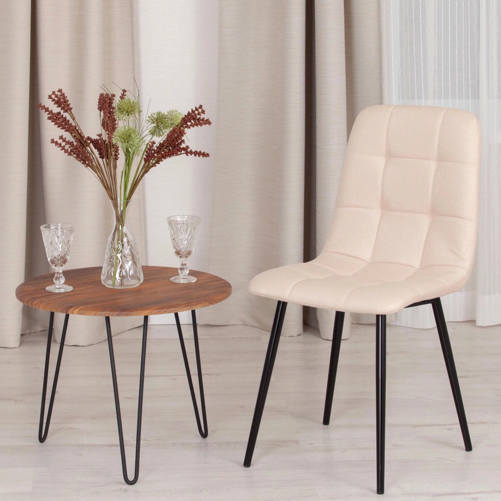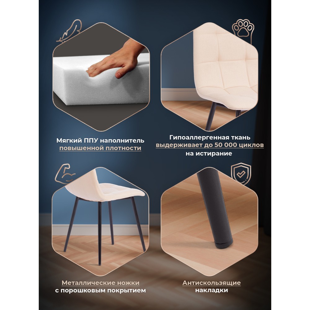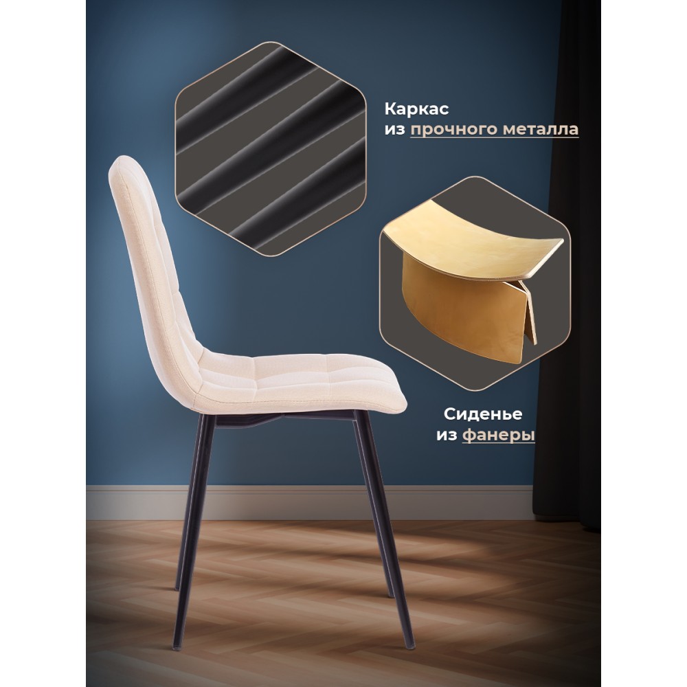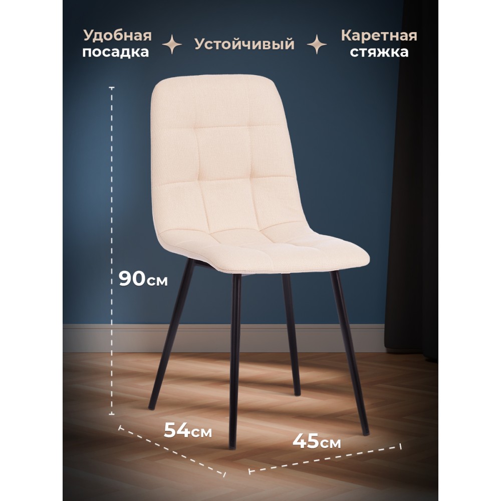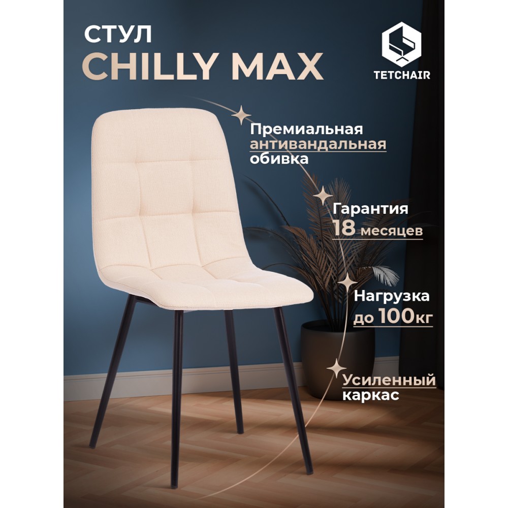 Удобный и практичный дизайн стула CHILLY MAX из коллекции Modern позволит ему вписаться практически в любой интерьер. Стул можно расположить в гостиной, кухне или столовой. Он хорошо подойдет для обстановки городской квартиры, загородного дома, кафе или ресторана. Тонкие металлические ножки с порошковым покрытием, стеганая тканевая обивка и лаконичные формы стула идеально соответствуют концепции современного стильного пространства. Мягкое сиденье и спинка позволяют комфортно расположиться на длительное время. Практичная тканевая обивка бежевого цвета отличается устойчивостью к износу и долговечностью, благодаря чему стул не требует специального ухода и будет долгое время радовать вас своим первоначальным видом. Монолитный каркас изделия выполнен из многослойного гнутоклееного шпона толщиной 10 мм. Наполнение - комбинация пенополиуретанов различной плотности. Стул подойдёт для гостиной, для кухни, для спальни, для ресторана или для кафе. Стул очень прост в сборке, инструкция по сборке прилагается.