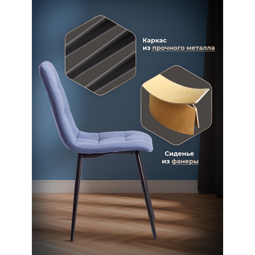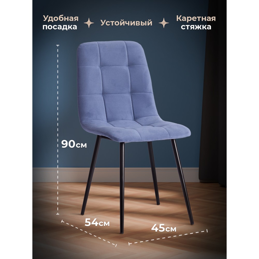 Удобный и практичный дизайн стула CHILLY MAX из коллекции Modern позволит ему вписаться практически в любой интерьер. Стул можно расположить в гостиной, кухне или столовой. Он хорошо подойдет для обстановки городской квартиры, загородного дома, кафе или ресторана. Тонкие металлические ножки черного цвета, стеганая тканевая обивка и лаконичные формы стула идеально соответствуют концепции современного стильного пространства. Мягкое сиденье и спинка позволяют комфортно расположиться на длительное время. Практичная тканевая обивка серо-голубого цвета отличается устойчивостью к износу и долговечностью, благодаря чему стул не требует специального ухода и будет долгое время радовать вас своим первоначальным видом. Монолитный каркас изделия выполнен из многослойного гнутоклееного шпона толщиной 10 мм. Наполнение - комбинация пенополиуретанов различной плотности. Стул подойдёт для гостиной, для кухни, для спальни, для ресторана или для кафе. Стул очень прост в сборке, инструкция по сборке прилагается.
