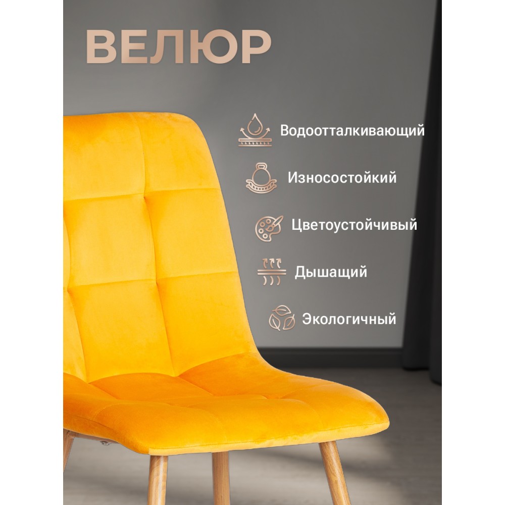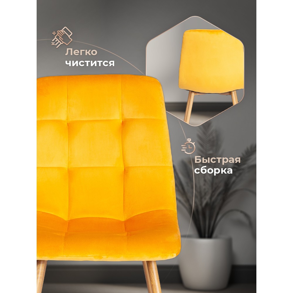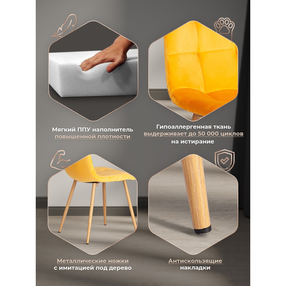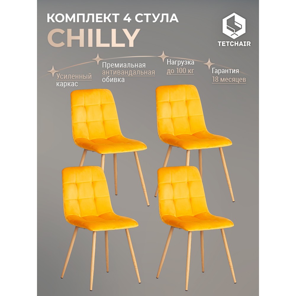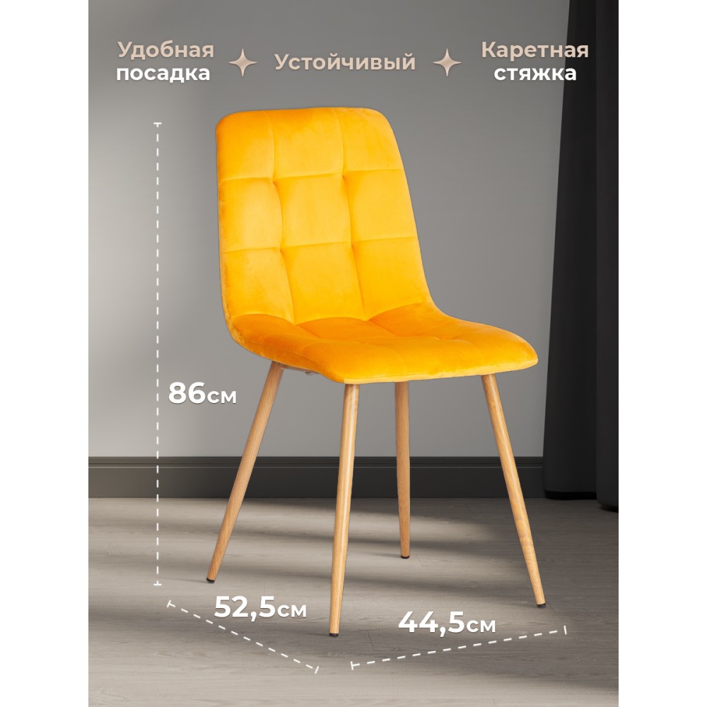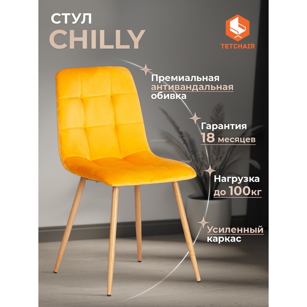 Удобный и практичный дизайн стула CHILLY из коллекции Modern позволит ему вписаться практически в любой интерьер. Стул можно расположить в гостиной, кухне или столовой. Он хорошо подойдет для обстановки городской квартиры, загородного дома, кафе или ресторана. Тонкие металлические ножки натурального цвета, стеганая тканевая обивка и лаконичные формы стула идеально соответствуют концепции современного стильного пространства. Мягкое сиденье и спинка позволяют комфортно расположиться на длительное время. Практичная тканевая обивка желтого цвета отличается устойчивостью к износу и долговечностью, благодаря чему стул не требует специального ухода и будет долгое время радовать вас своим первоначальным видом. Монолитный каркас изделия выполнен из многослойного гнутоклееного шпона толщиной 10 мм. Наполнение - комбинация пенополиуретанов различной плотности. Стул подойдёт для гостиной, для кухни, для спальни, для ресторана или для кафе. Стул очень прост в сборке, инструкция по сборке прилагается.