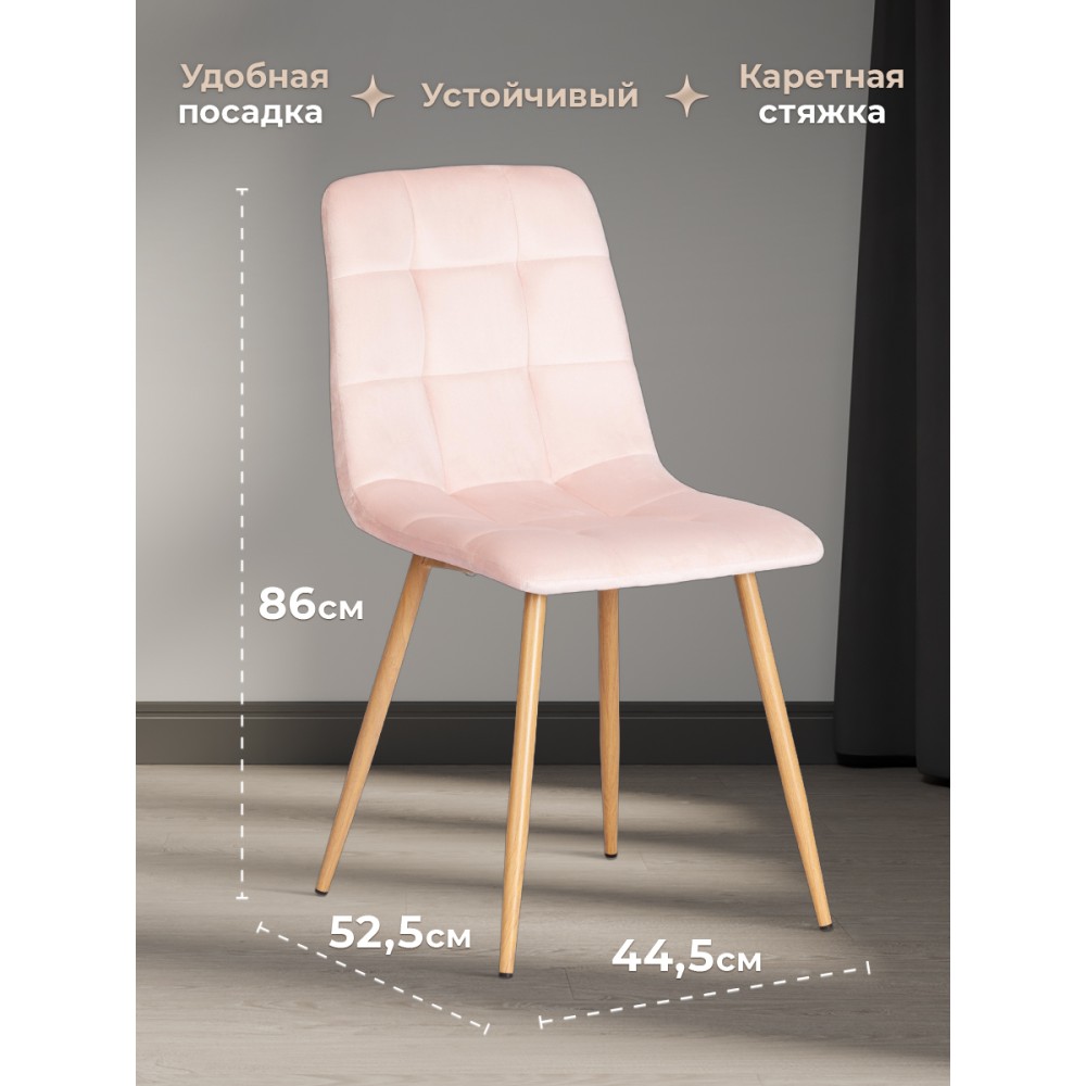 Удобный и практичный дизайн стула CHILLY из коллекции Modern позволит ему вписаться практически в любой интерьер. Стул можно расположить в гостиной, кухне или столовой. Он хорошо подойдет для обстановки городской квартиры, загородного дома, кафе или ресторана. Тонкие металлические ножки натурального цвета, стеганая тканевая обивка и лаконичные формы стула идеально соответствуют концепции современного стильного пространства. Мягкое сиденье и спинка позволяют комфортно расположиться на длительное время. Практичная тканевая обивка розового цвета отличается устойчивостью к износу и долговечностью, благодаря чему стул не требует специального ухода и будет долгое время радовать вас своим первоначальным видом. Монолитный каркас изделия выполнен из многослойного гнутоклееного шпона толщиной 10 мм. Наполнение - комбинация пенополиуретанов различной плотности. Стул подойдёт для гостиной, для кухни, для спальни, для ресторана или для кафе. Стул очень прост в сборке, инструкция по сборке прилагается.