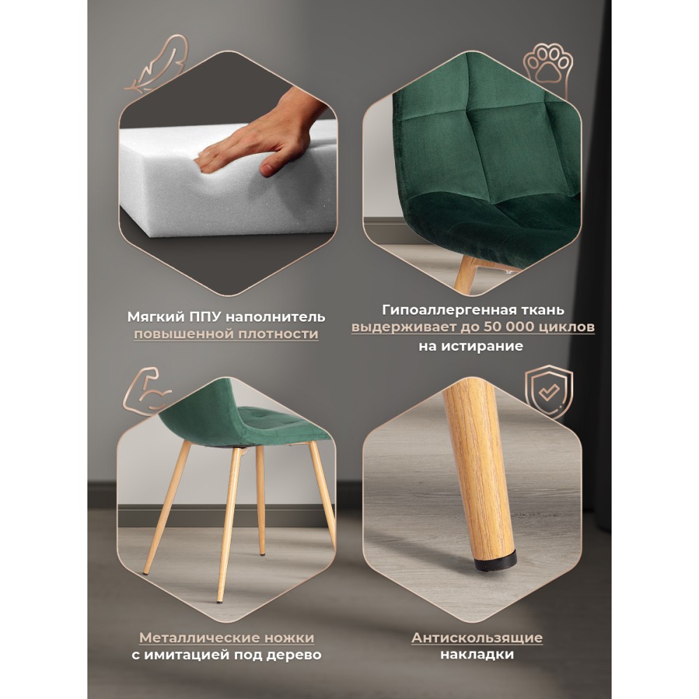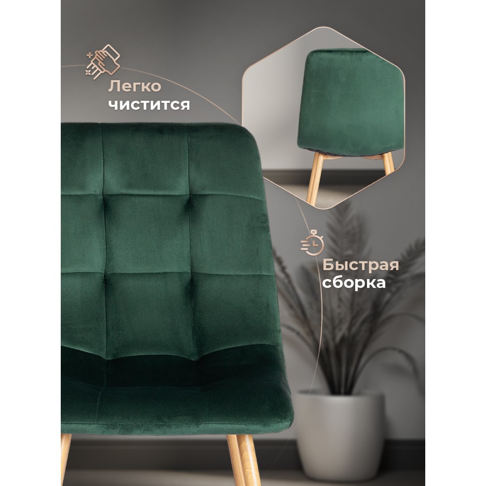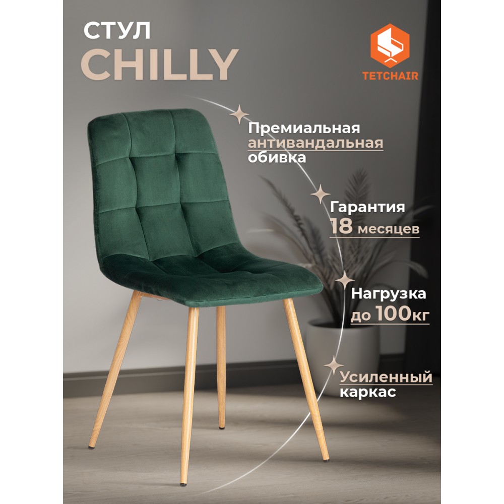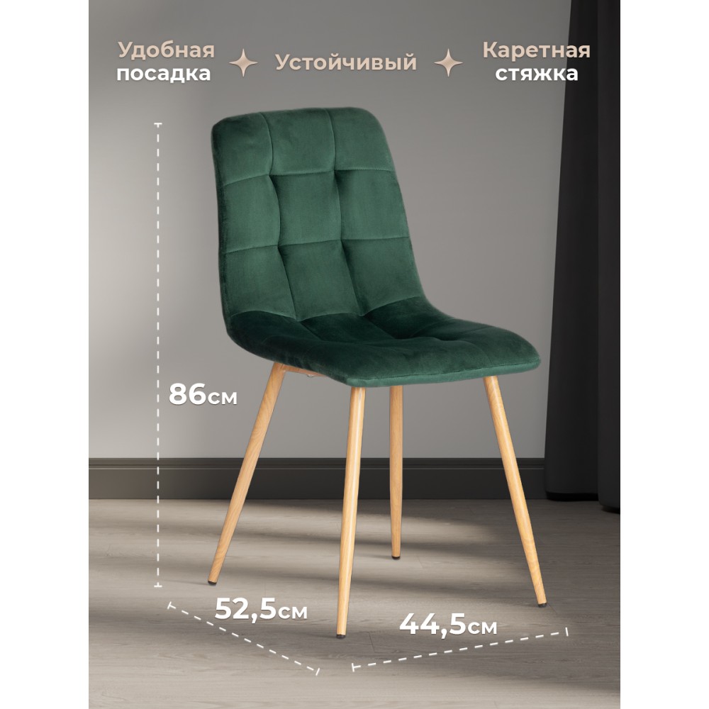Удобный и практичный дизайн стула CHILLY из коллекции Modern позволит ему вписаться практически в любой интерьер. Стул можно расположить в гостиной, кухне или столовой. Он хорошо подойдет для обстановки городской квартиры, загородного дома, кафе или ресторана. Тонкие металлические ножки натурального цвета, стеганая тканевая обивка и лаконичные формы стула идеально соответствуют концепции современного стильного пространства. Мягкое сиденье и спинка позволяют комфортно расположиться на длительное время. Практичная тканевая обивка темно-зеленого цвета отличается устойчивостью к износу и долговечностью, благодаря чему стул не требует специального ухода и будет долгое время радовать вас своим первоначальным видом. Монолитный каркас изделия выполнен из многослойного гнутоклееного шпона толщиной 10 мм. Наполнение - комбинация пенополиуретанов различной плотности. Стул подойдёт для гостиной, для кухни, для спальни, для ресторана или для кафе. Стул очень прост в сборке, инструкция по сборке прилагается.