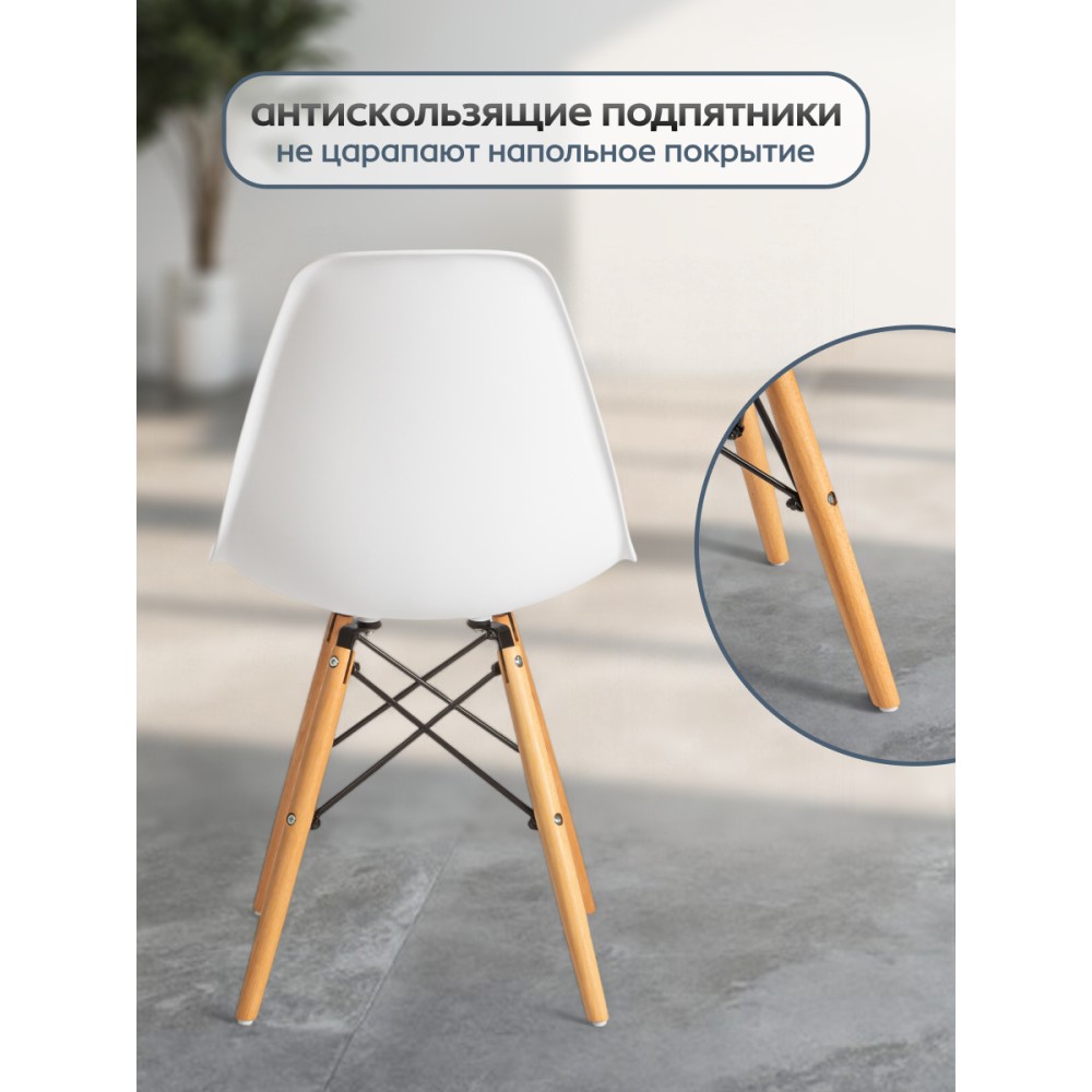 Стильный стул Cindy Chair из коллекции Modern, созданный в стиле знаменитого стула Eames DSW супругов Имз, украсит собой любую домашнюю обстановку. Этот удобный и легкий стул будет отличным украшением городской квартиры, загородного дома, кафе или ресторана. Сочетание белого пластикового сиденья, ножек из массива бука и классического металлического крепления придает стулу особенную красоту и оригинальность. Эргономичная спинка и удобное сиденье позволят комфортно расположиться на продолжительное время. Конструкция изделия разработана с учетом равномерного распределения нагрузки. Пластик и массив бука – прочные и долговечные материалы, не требующие специального ухода, способные выдерживать большую нагрузку. Стул будет радовать вас своим первоначальным видом долгие годы. Стул хорошо подойдет для гостиной, для кухни, для террасы, для дачи, для ресторана или для кафе. Стул очень прост в сборке, инструкция по сборке прилагается.