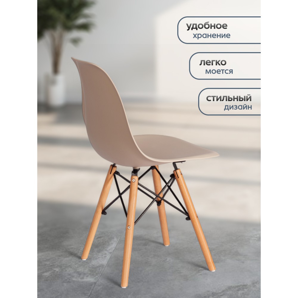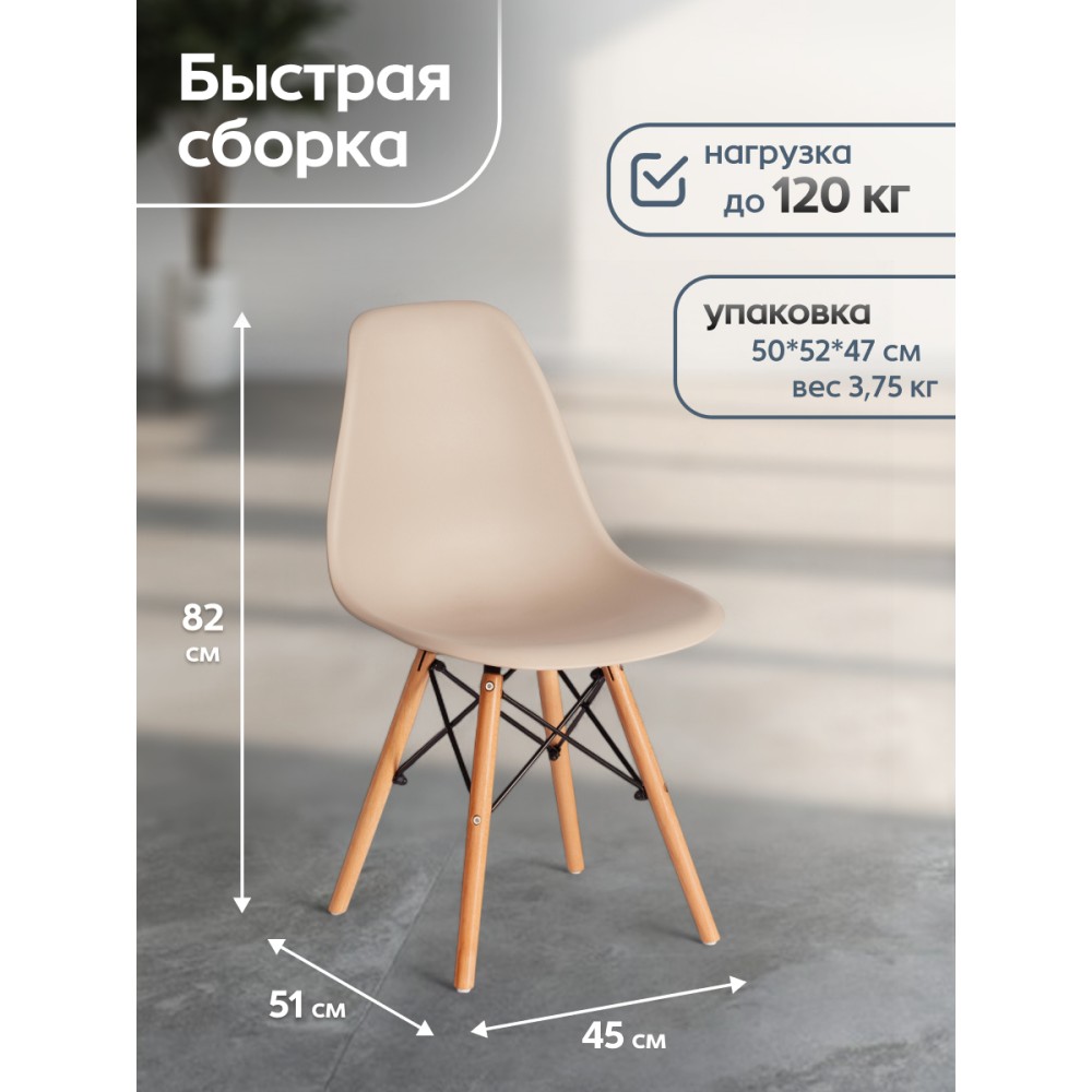 Стильный стул Cindy Chair из коллекции Modern, созданный в стиле знаменитого стула Eames DSW супругов Имз, украсит собой любую домашнюю обстановку. Этот удобный и легкий стул будет отличным украшением городской квартиры, загородного дома, кафе или ресторана. Сочетание бежевого пластикового сиденья, ножек из массива бука и классического металлического крепления придает стулу особенную красоту и оригинальность. Эргономичная спинка и удобное сиденье позволят комфортно расположиться на продолжительное время. Конструкция изделия разработана с учетом равномерного распределения нагрузки. Пластик и массив бука – прочные и долговечные материалы, не требующие специального ухода, способные выдерживать большую нагрузку. Стул будет радовать вас своим первоначальным видом долгие годы. Стул хорошо подойдет для гостиной, для кухни, для террасы, для дачи, для ресторана или для кафе. Стул очень прост в сборке, инструкция по сборке прилагается.