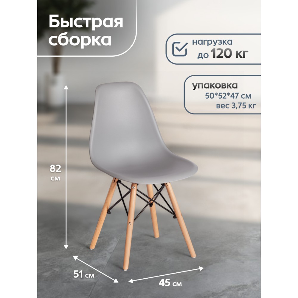 Стильный стул Cindy Chair из коллекции Modern, созданный в стиле знаменитого стула Eames DSW супругов Имз, украсит собой любую домашнюю обстановку. Этот удобный и легкий стул будет отличным украшением городской квартиры, загородного дома, кафе или ресторана. Сочетание светло-серого пластикового сиденья, ножек из массива бука и классического металлического крепления придает стулу особенную красоту и оригинальность. Эргономичная спинка и удобное сиденье позволят комфортно расположиться на продолжительное время. Конструкция изделия разработана с учетом равномерного распределения нагрузки. Пластик и массив бука – прочные и долговечные материалы, не требующие специального ухода, способные выдерживать большую нагрузку. Стул будет радовать вас своим первоначальным видом долгие годы. Стул хорошо подойдет для гостиной, для кухни, для террасы, для дачи, для ресторана или для кафе. Стул очень прост в сборке, инструкция по сборке прилагается.