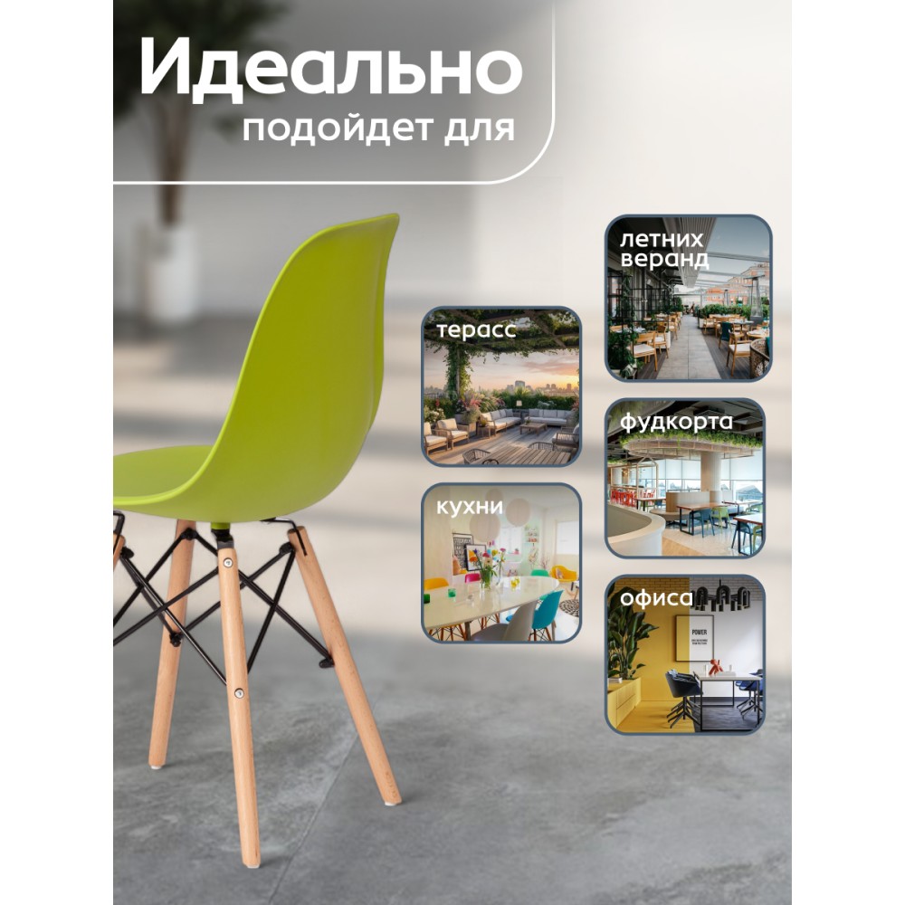 Стильный стул Cindy Chair из коллекции Modern, созданный в стиле знаменитого стула Eames DSW супругов Имз, украсит собой любую домашнюю обстановку. Этот удобный и легкий стул будет отличным украшением городской квартиры, загородного дома, кафе или ресторана. Сочетание оливкого пластикового сиденья, ножек из массива бука и классического металлического крепления придает стулу особенную красоту и оригинальность. Эргономичная спинка и удобное сиденье позволят комфортно расположиться на продолжительное время. Конструкция изделия разработана с учетом равномерного распределения нагрузки. Пластик и массив бука – прочные и долговечные материалы, не требующие специального ухода, способные выдерживать большую нагрузку. Стул будет радовать вас своим первоначальным видом долгие годы. Стул хорошо подойдет для гостиной, для кухни, для террасы, для дачи, для ресторана или для кафе. Стул очень прост в сборке, инструкция по сборке прилагается.