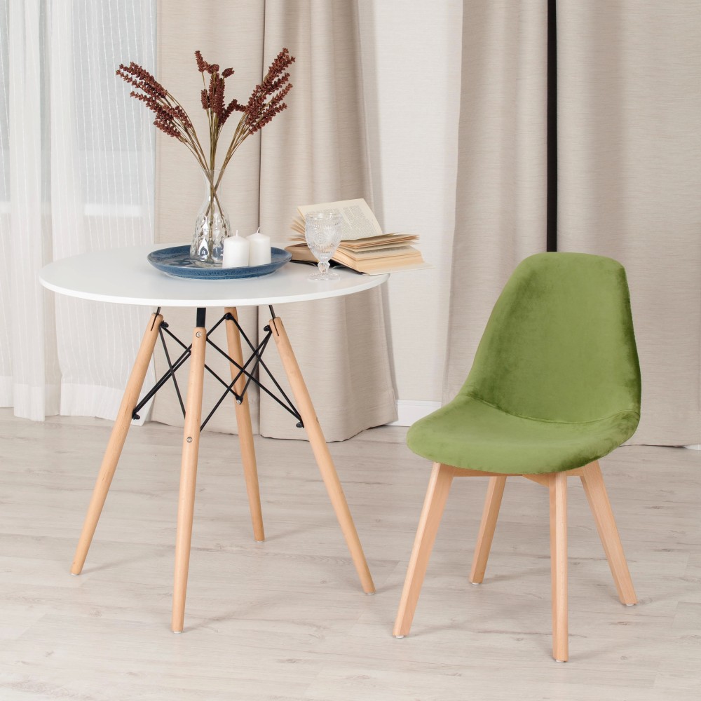 Великолепный стул CINDY SOFT из коллекции Modern выполнен по мотивам творений американских дизайнеров супругов Имз. Удобный мягкий стул станет не только предметом мебели, на котором будет приятно посидеть и почитать интересную книгу, но и важным аксессуаром интерьера для создания настроения целой комнаты. Удобная форма сиденья и спинки стула CINDY SOFT обеспечит комфортную посадку на протяжении продолжительного времени. Широко поставленные прочные ножки из дерева делают модель устойчивой и основательной. Мягкая обивка из вельвета благородного зеленого цвета восхищает своей красотой. Стул станет ярким акцентом в вашем интерьере. Тканевая обивка обладает повышенной износостойкостью, не мнётся, не меняет форму, способна на долгие годы сохранить свой первоначальный цвет, не протираясь и не выцветая. Стул хорошо подойдет для гостиной, для кухни, для спальни, для ресторана или для кафе. Стул очень прост в сборке, инструкция по сборке прилагается.