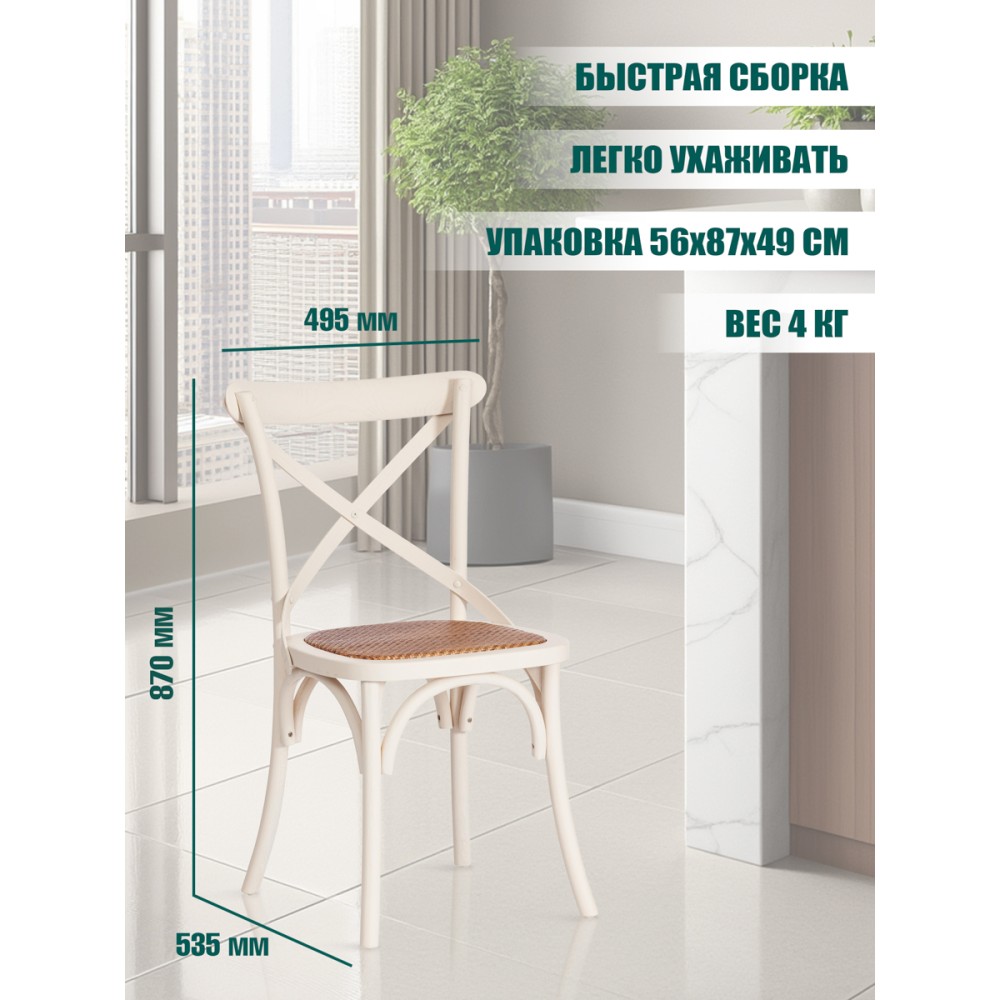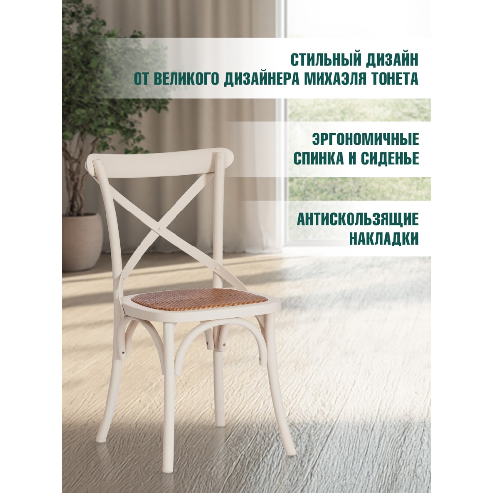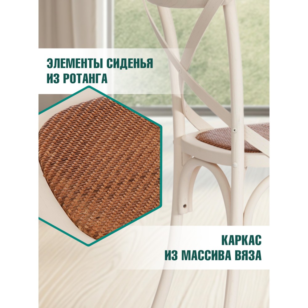 Легкий и элегантный дизайн, простые линии и естественные цвета классического венского стула Secret De Maison CROSS, выполненного в стиле гениального творения Михаэля Тонета, украсят собой любую домашнюю обстановку. Сочетание плетеного сиденья из натурального ротанга и каркаса из массива вяза, покрашенного в белый цвет, придает стулу особенную красоту и оригинальность. Эргономичная спинка и удобное сиденье позволят комфортно сидеть в течение длительного времени. Конструкция изделия разработана с учетом равномерного распределения нагрузки. Натуральный ротанг и массив вяза – прочные и долговечные материалы, не требующие специального ухода, способные выдерживать большую нагрузку. Стул будет радовать вас своим первоначальным видом долгие годы. Модель идеально сочетается с мебелью из коллекции THONET, поставляется в собранном виде.