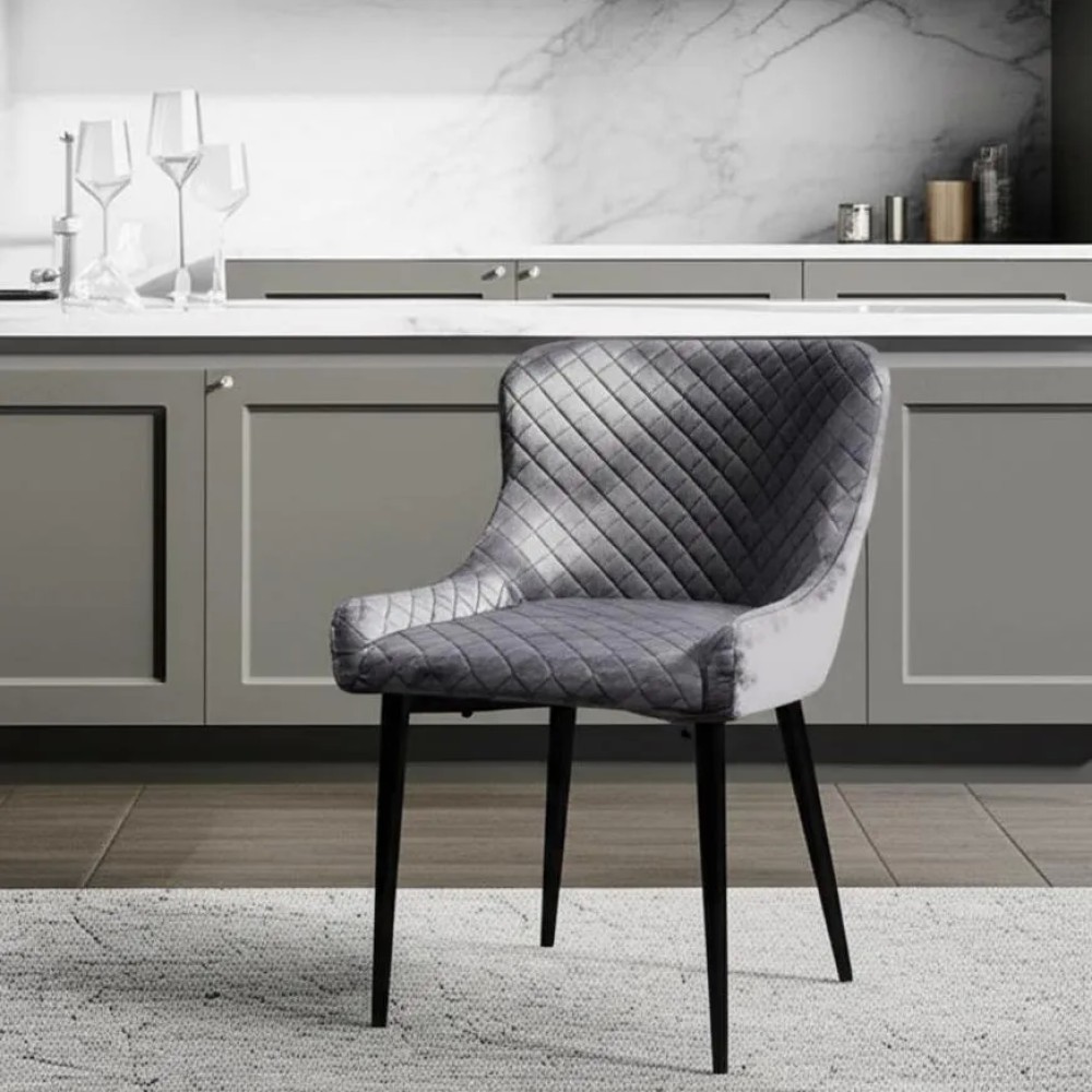 Уникальный силуэт стула ELI из коллекции Modern – это удачное сочетание простоты и элегантности. Он хорошо впишется в обстановку гостиной, кухни или столовой. Простая форма, стеганая обивка благородного цвета и изящные металлические ножки придают стулу особую красоту и привлекательность. Удобные и обволакивающие формы спинки и сиденья обеспечат комфорт на протяжении длительного времени. Прочные металлические ножки делают модель крепкой и основательной. Тканевая обивка выглядит дорого, стильно, элегантно. Ее бархатистая и приятная на ощупь поверхность притягивает к себе мягкостью и изысканной красотой. Ткань обивки серого цвета обладает повышенной износостойкостью, способна на долгие годы сохранить свой первоначальный цвет, не протираясь и не выцветая. Стул подойдёт для гостиной, для кухни, для спальни, для ресторана или для кафе. Стул очень прост в сборке, инструкция по сборке прилагается.