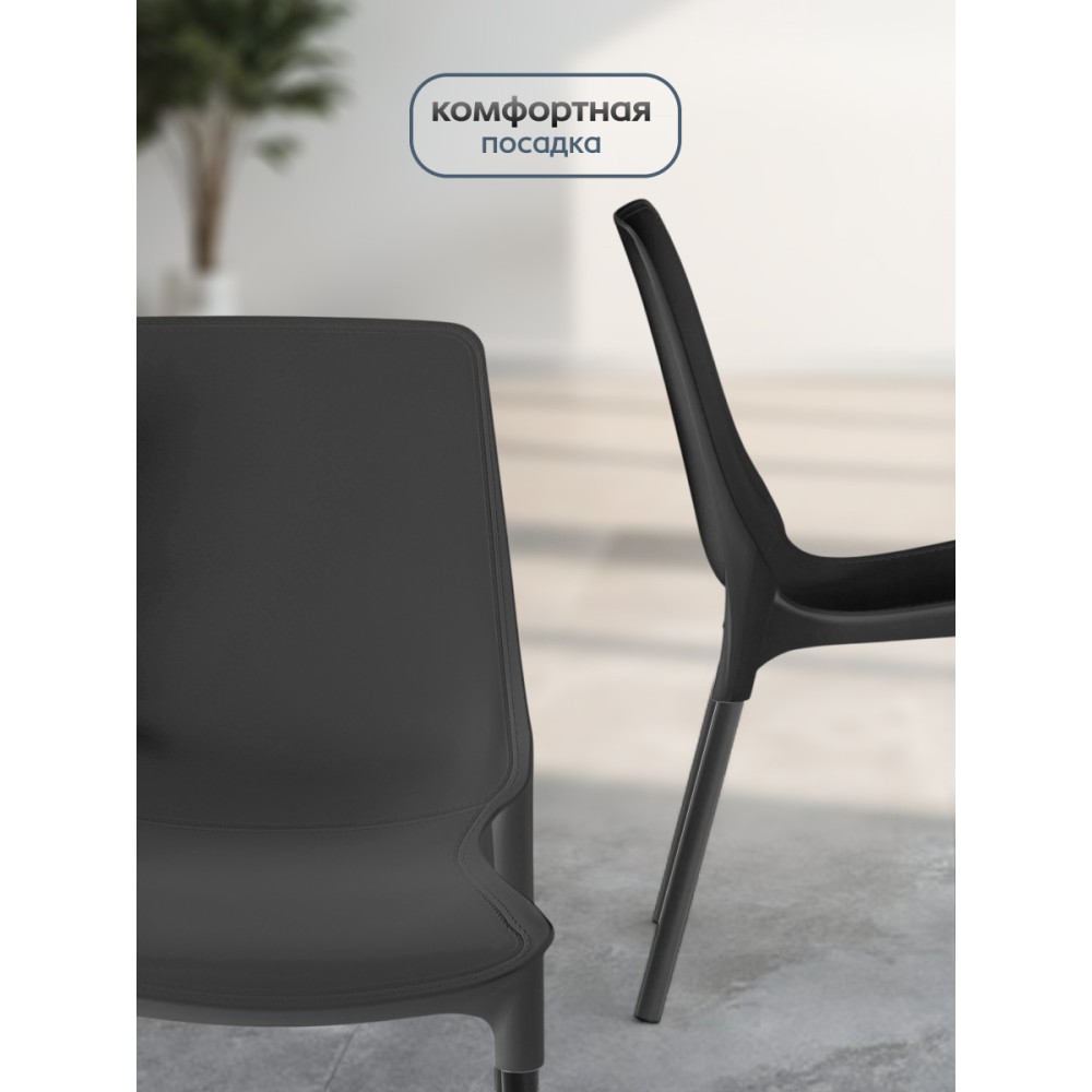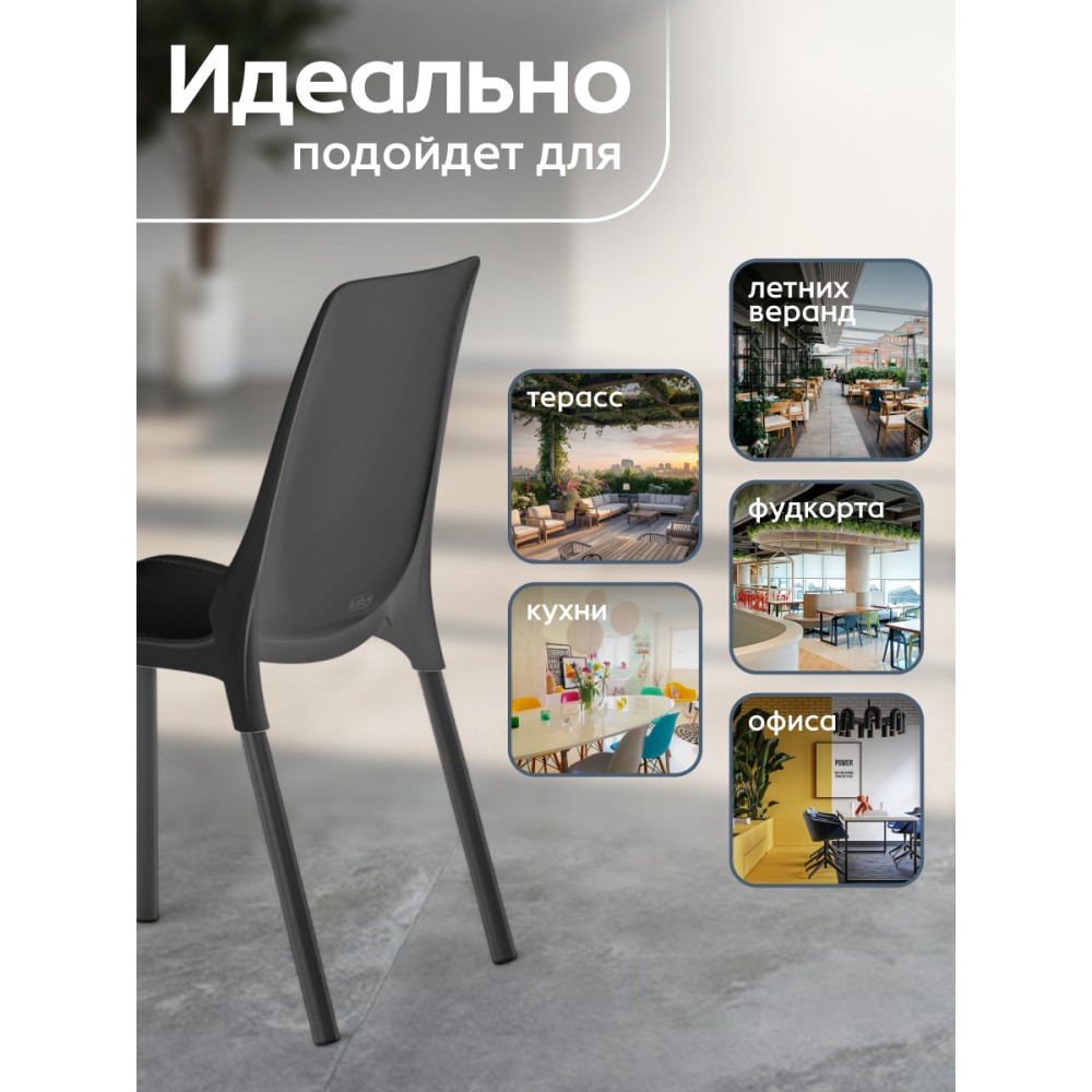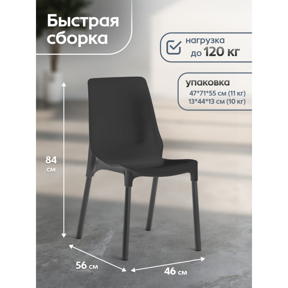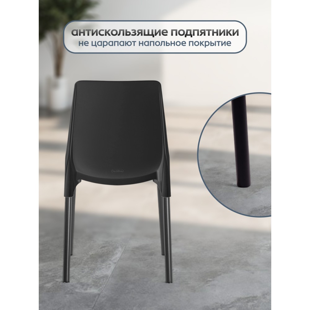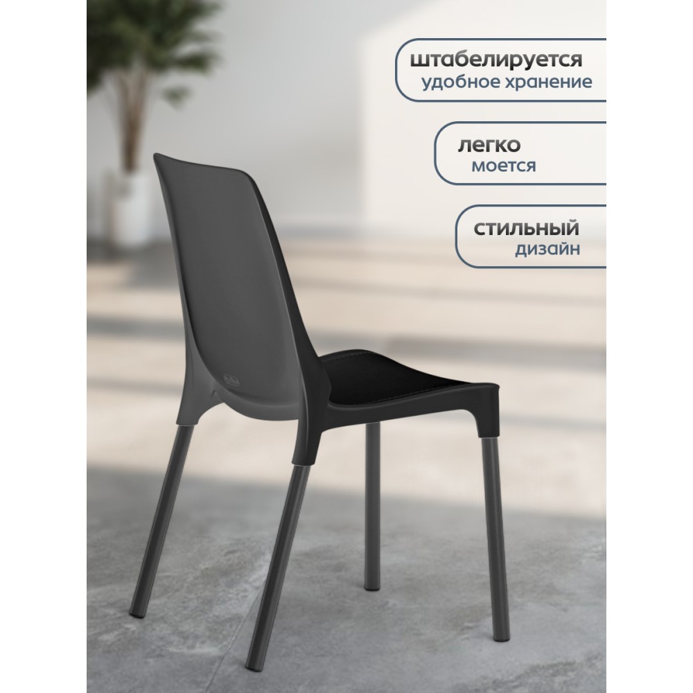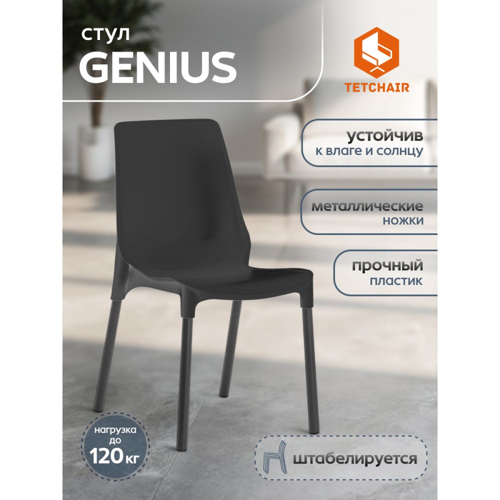 Простой и комфортный стул GENIUS из коллекции Modern станет незаменимым предметом интерьера в городской квартире, на загородной веранде или приусадебном участке. Стул может украсить любое пространство, изменить обстановку в лучшую сторону, наполнить интерьер легкостью и уютом. Декоративная отделка сиденья и спинки, имитирующая простроченную кожу, и металлические ножки, оцинкованные и окрашенные порошковой краской, выгодно выделяют стул среди привычной мебели. Удобное сиденье и спинка позволяют комфортно сидеть в течение длительного времени. Стулья GENIUS можно штабелировать по 5 штук, что позволяет экономить место при хранении. Сиденье стула выполнено из полипропилена черного цвета с армирующими добавками. Благодаря чему модель практична, надежна, способна выдерживать большие нагрузки, устойчива к воздействию влаги, температурным перепадам и проста в уходе. Стул подойдёт для гостиной, для кухни, для дачи, для веранды, для ресторана или для кафе. Стул очень прост в сборке, инструкция по сборке прилагается.