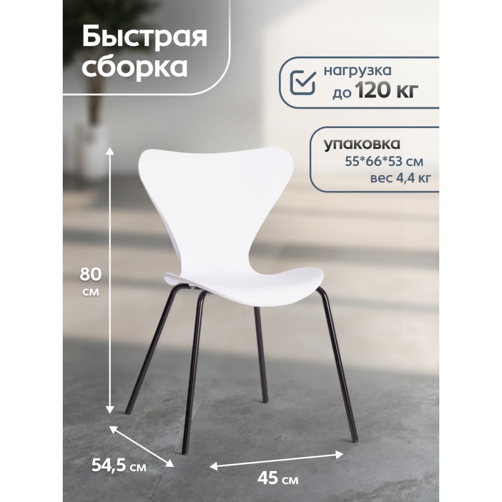 Изящный силуэт стула Jacobsen, созданного в стиле знаменитого стула Series 7 датского дизайнера Арне Якобсена, украсит практически любой интерьер. Ножки из металла в сочетании с пластиковым сиденьем белого цвета придают изделию особую привлекательность и визуальную легкость. Принципы эргономики и лаконичности ярко прослеживаются в дизайне стула. Стул отлично выглядит со всех сторон, он создаст комфортную обстановку дома, будет смотреться стильно и элегантно в кафе или ресторане. Небольшой вес и компактность дают возможность расположить стул в удобном для вас месте, переместить его в другую комнату или угол при необходимости. Модель относится к коллекции Modern. Стул подойдёт для гостиной, для кухни, для дачи, для веранды, для офиса, для ресторана или для кафе. Стул очень прост в сборке, инструкция по сборке прилагается.