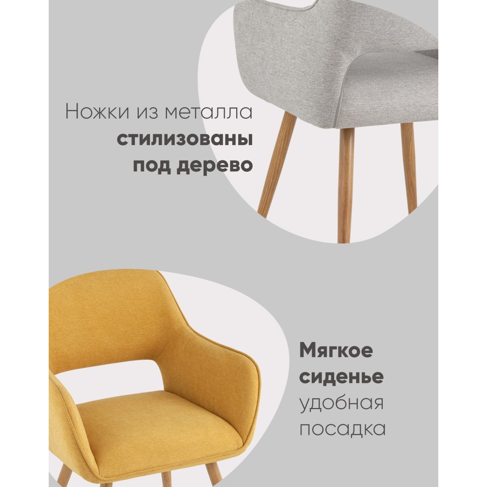 Стул Stool Group Кромвель II желтый, широкая эргономичная спинка, удобные подлокотники, обивка плотная ткань, металлические ножки с принтом под дерево