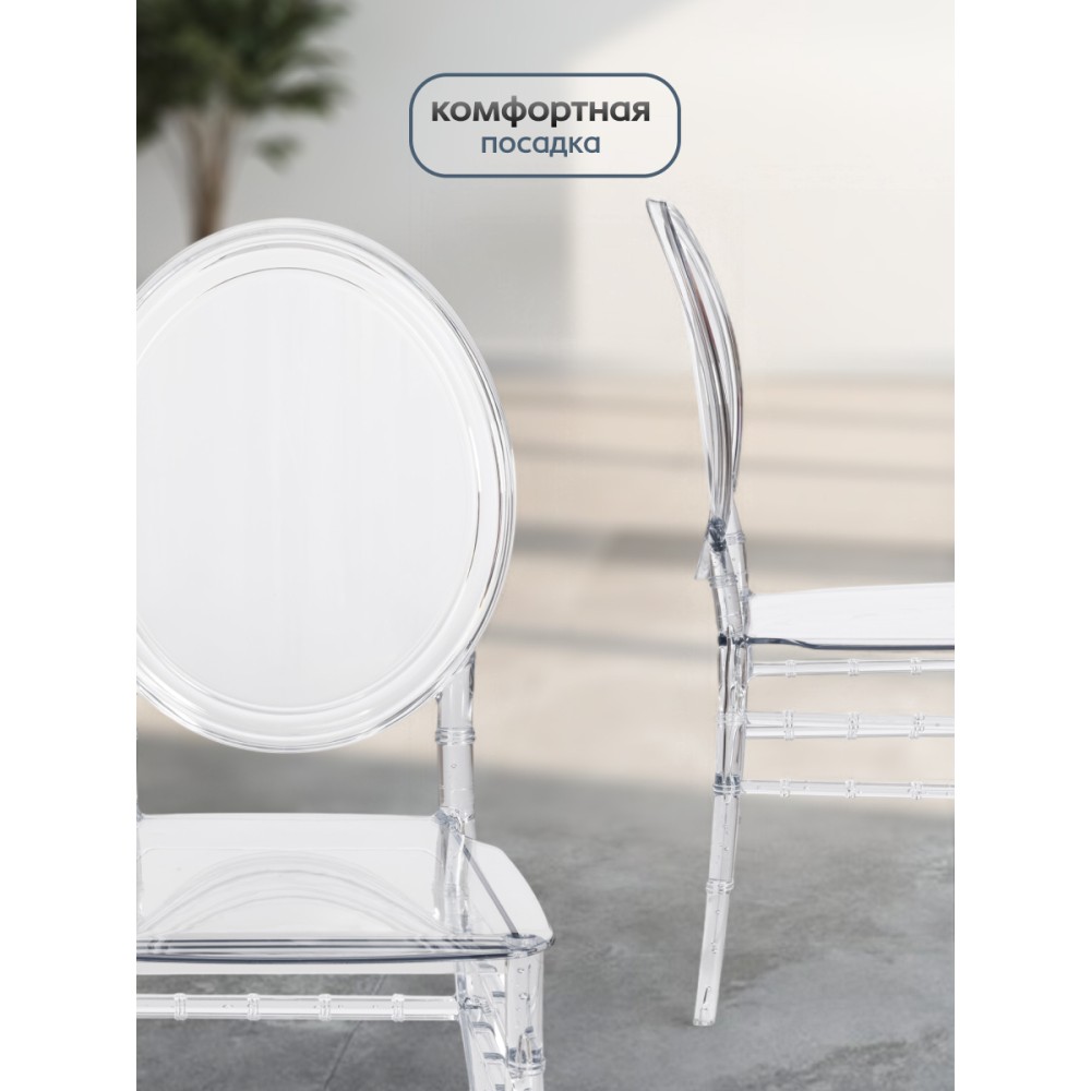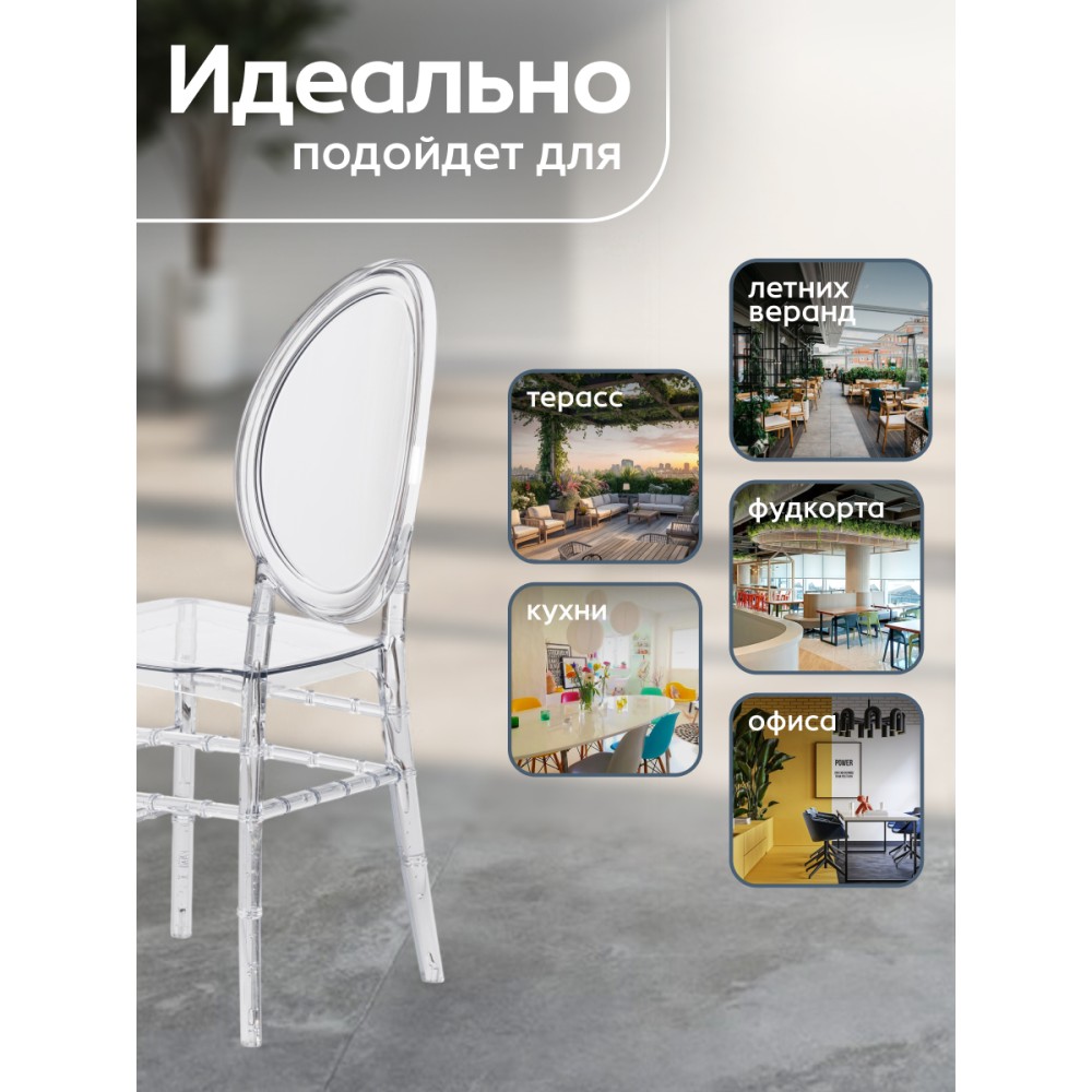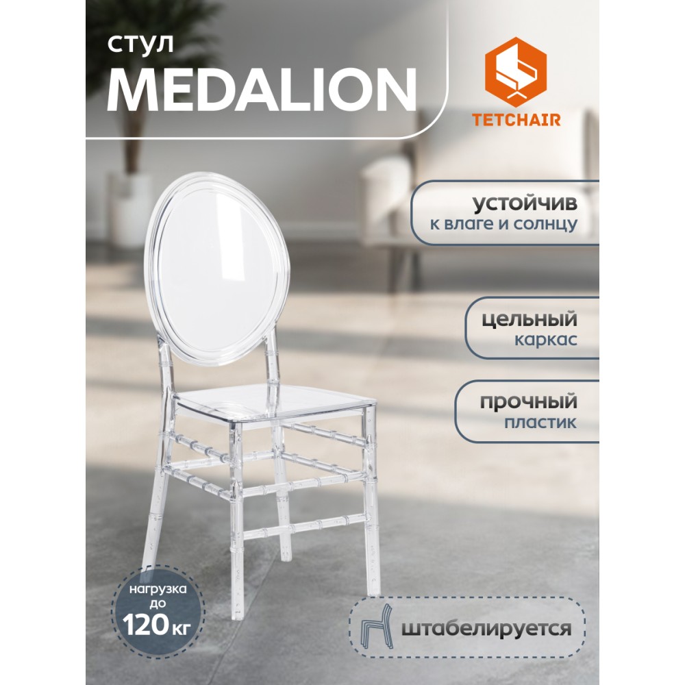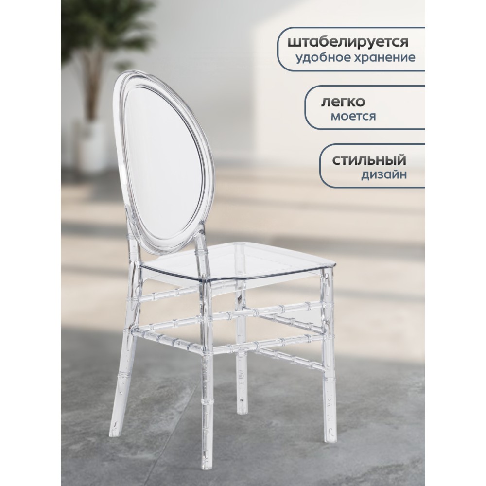 Эффектный прозрачный пластиковый стул «Медальон» ― реплика культовой модели 2002 года знаменитого Филиппа Старка. Стул ― настоящая находка для любителей современного дизайна. Ироничная пластиковая версия классического кресла французского короля Луи XVI, в которой соединились исторический стиль барокко и инновационный современный дизайн. Такой стул совсем ненавязчив, он полностью сливается с пространством, не привлекая лишнего внимания. В то же время этот предмет мебели способен стать недостающим акцентом вашего интерьера, добавив в него изысканную элегантность и легкость.