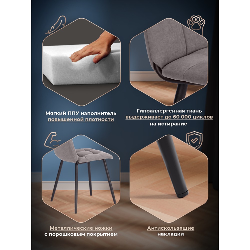 Стул Asti - не просто предмет мебели, а истинный элемент стиля, способный преобразить любое пространство. Его современный и лаконичный дизайн подойдет как для загородного дома, так и для городской квартиры, ресторана или кафе. Каркас спинки выполнен из металлического профиля, что делает модель отличным решением для частого использования. Сиденье с основанием из гнутоклееного шпона толщиной 10 мм и наполнителя из пенополиуретана (ППУ) плотностью 22-30 кг/м³ не деформируется со временем, износостойко и долговечно. Прочные конусообразные опоры диаметром 26/16 мм с толщиной металла 1,2 мм надежны и устойчивы к усиленной эксплуатации. Обивка из велюра придает стулу безупречный внешний вид, позволяя ему гармонировать с различными стилями интерьера. Такой материал не требует сложного ухода, хорошо пропускает воздух, обладает приятными тактильными свойствами. Оригинальный стул Asti добавит индивидуальности в любое помещение, прослужит владельцу долгие годы, не теряя своего первоначального внешнего вида. Модель поставляется в разобранном виде, необходима простая сборка по прилагаемой инструкции. Максимальная нагрузка 120 кг.