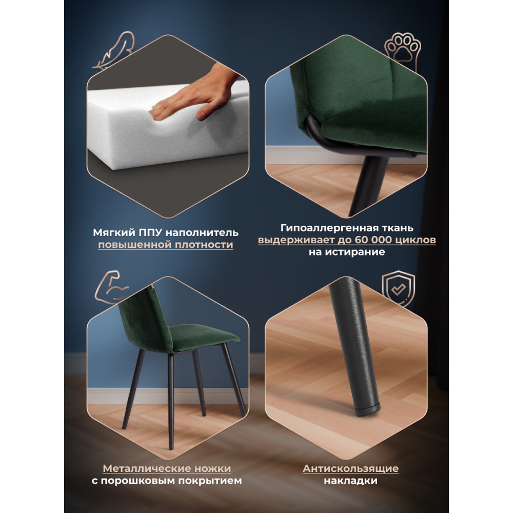 Стул Asti/Асти Trend/Тренд - не просто предмет мебели, а истинный элемент стиля, способный преобразить любое пространство. Его современный и лаконичный дизайн подойдет как для загородного дома, так и для городской квартиры, ресторана или кафе. Каркас спинки выполнен из металлического профиля, что делает модель отличным решением для частого использования. Сиденье с основанием из гнутоклееного шпона толщиной 10 мм и наполнителя из пенополиуретана (ППУ) плотностью 22-30 кг/м³ не деформируется со временем, износостойко и долговечно. Прочные конусообразные опоры диаметром 26/16 мм с толщиной металла 1,2 мм надежны и устойчивы к усиленной эксплуатации. Обивка из велюра придает стулу безупречный внешний вид, позволяя ему гармонировать с различными стилями интерьера. Такой материал не требует сложного ухода, хорошо пропускает воздух, обладает приятными тактильными свойствами. Оригинальный стул Asti/Асти добавит индивидуальности в любое помещение, прослужит владельцу долгие годы, не теряя своего первоначального внешнего вида. Модель поставляется в разобранном виде, необходима простая сборка по прилагаемой инструкции. Максимальная нагрузка 120 кг.