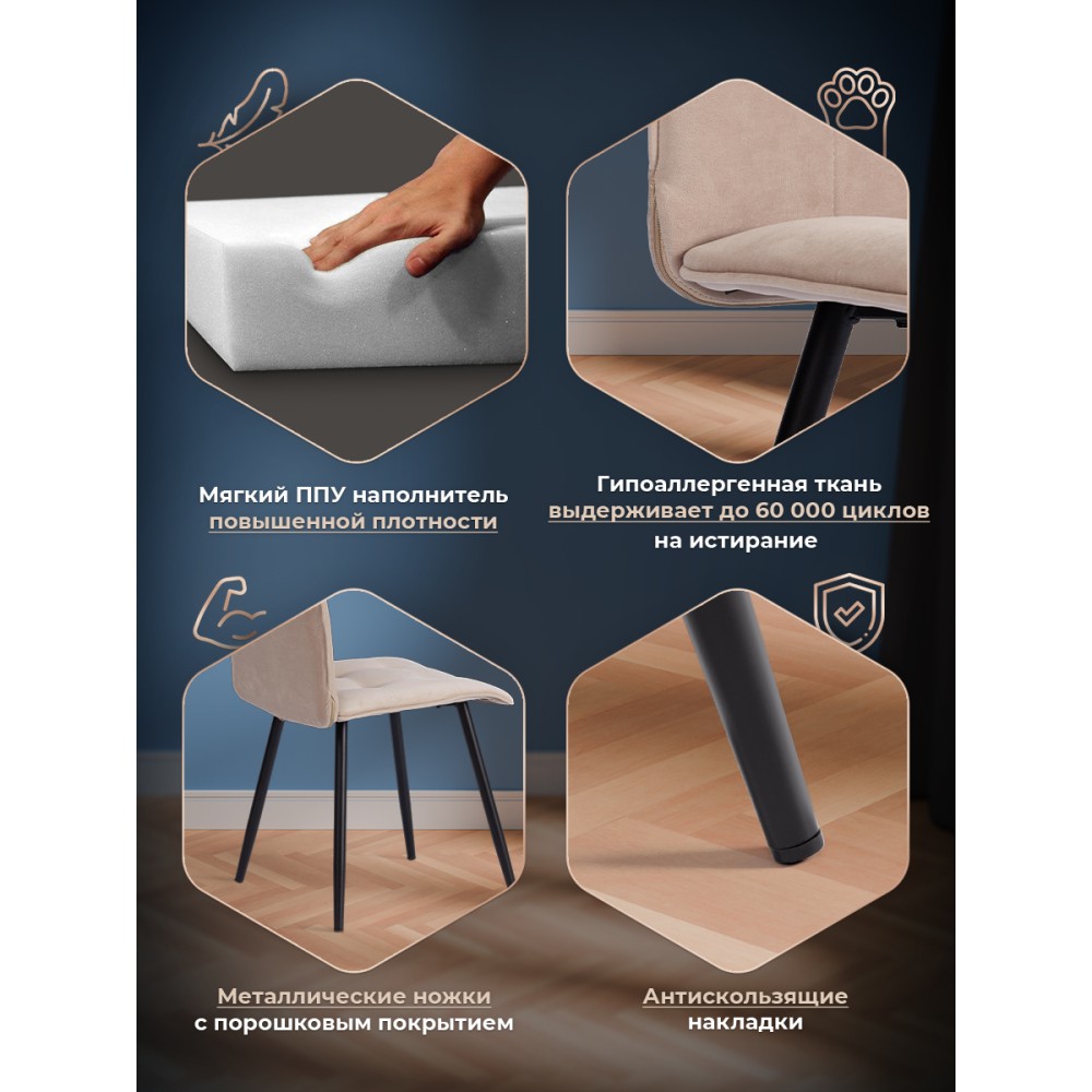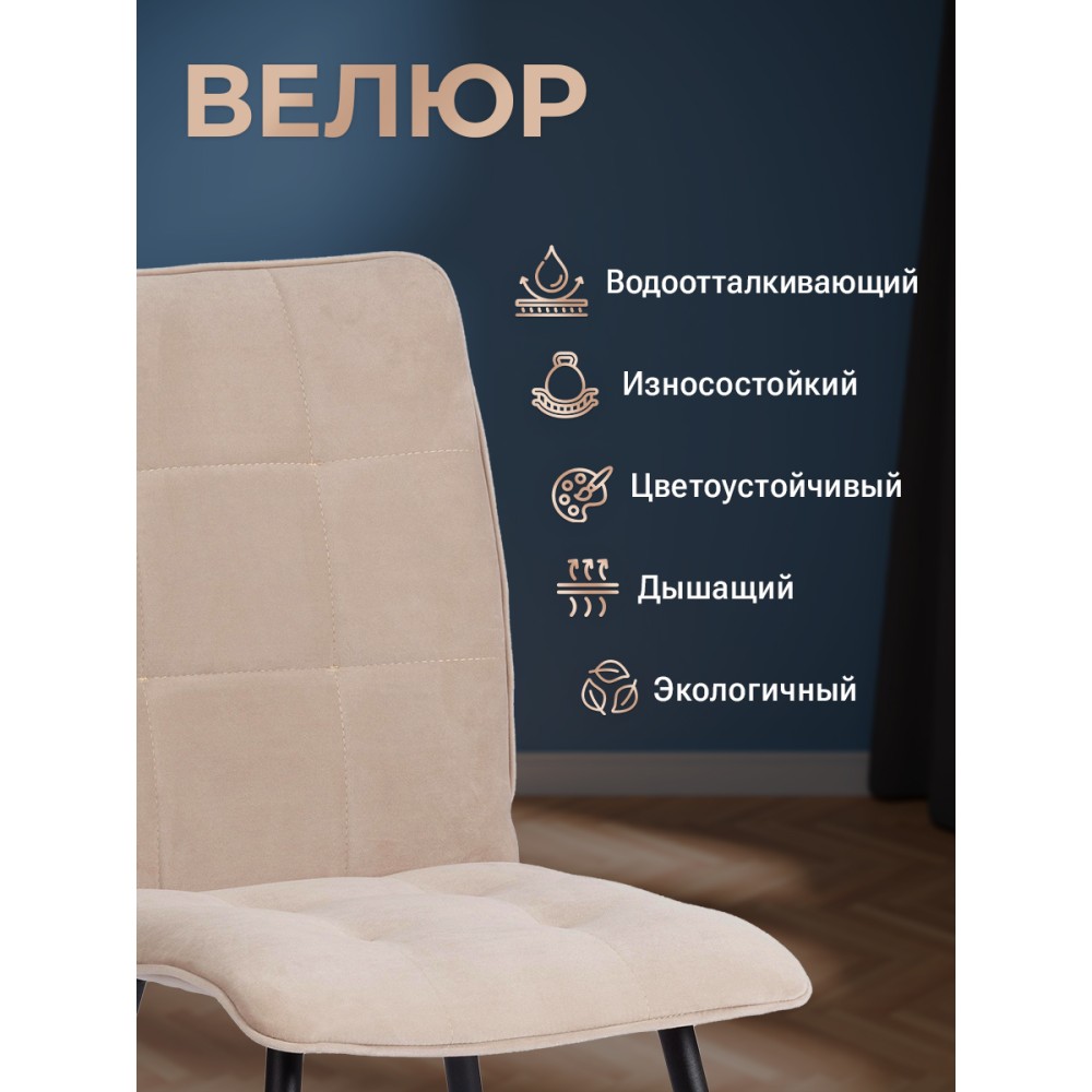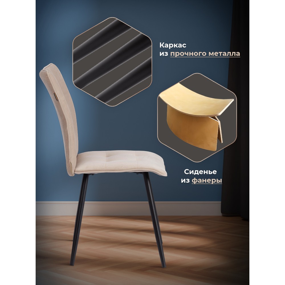 Стул Bari – это идеальное сочетание простоты и элегантности, который способен добавить уют и стиль в любое пространство вашего дома. Его современный дизайн позволяет гармонично вписаться в интерьер кухни, столовой или гостиной. Основные характеристики модели: - Каркас и спинка: Металлический профиль обеспечивает надежность и долговечность, а высокая, эргономичная спинка с эффектом "Гамака" обеспечивает комфорт во время сидения. - Сиденье: Гнутоклееный шпон толщиной 10 мм придаёт мягкость и поддержку. Наполнитель из пенополиуретана (ППУ) высокой плотности (35 кг/м³) сохраняет свой форму на протяжении длительного времени, обеспечивая комфорт. - Отделка: Стул оформлен кантами, создающими эффект дорогой отделки, а также обит премиальным велюром с высокой износостойкостью – 60000 циклов по тесту Мартиндейла. Этот материал приятен на ощупь и легок в уходе. - Опоры: Конусообразные ножки диаметром 25/16 мм и толщиной металла 1,2 мм обеспечивают устойчивость и надежность даже при активном использовании. - Сборка: Продаётся стул в разобранном виде, что делает транспортировку удобной. Сборка стула проста и понятна благодаря прилагаемой инструкции. - Нагрузка: Стул рассчитан на максимальную нагрузку до 120 кг. Bari – это стул, который поразит даже самых взыскательных покупателей своей функциональностью, практичностью и высоким качеством исполнения.
