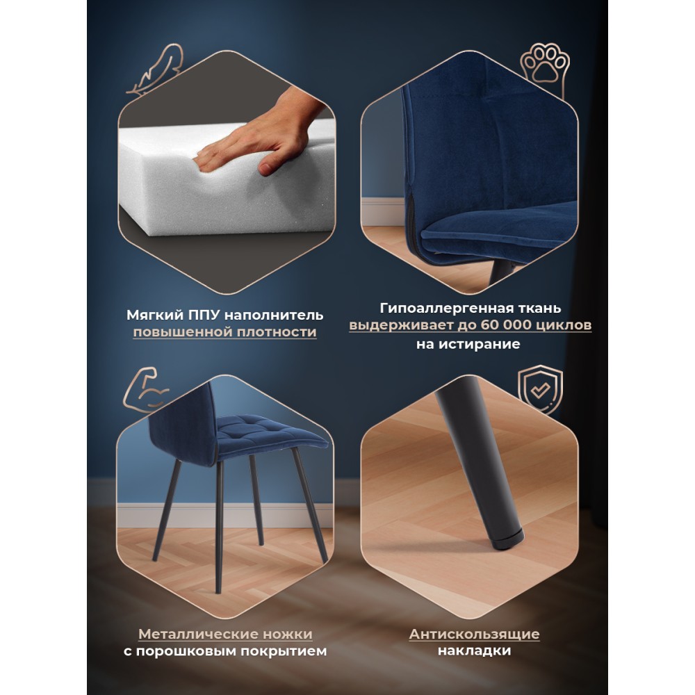 Стул Bari – это идеальное сочетание простоты и элегантности, который способен добавить уют и стиль в любое пространство вашего дома. Его современный дизайн позволяет гармонично вписаться в интерьер кухни, столовой или гостиной. Основные характеристики модели: - Каркас и спинка: Металлический профиль обеспечивает надежность и долговечность, а высокая, эргономичная спинка с эффектом "Гамака" обеспечивает комфорт во время сидения. - Сиденье: Гнутоклееный шпон толщиной 10 мм придаёт мягкость и поддержку. Наполнитель из пенополиуретана (ППУ) высокой плотности (35 кг/м³) сохраняет свой форму на протяжении длительного времени, обеспечивая комфорт. - Отделка: Стул оформлен кантами, создающими эффект дорогой отделки, а также обит премиальным велюром с высокой износостойкостью – 60000 циклов по тесту Мартиндейла. Этот материал приятен на ощупь и легок в уходе. - Опоры: Конусообразные ножки диаметром 25/16 мм и толщиной металла 1,2 мм обеспечивают устойчивость и надежность даже при активном использовании. - Сборка: Продаётся стул в разобранном виде, что делает транспортировку удобной. Сборка стула проста и понятна благодаря прилагаемой инструкции. - Нагрузка: Стул рассчитан на максимальную нагрузку до 120 кг. Bari – это стул, который поразит даже самых взыскательных покупателей своей функциональностью, практичностью и высоким качеством исполнения.