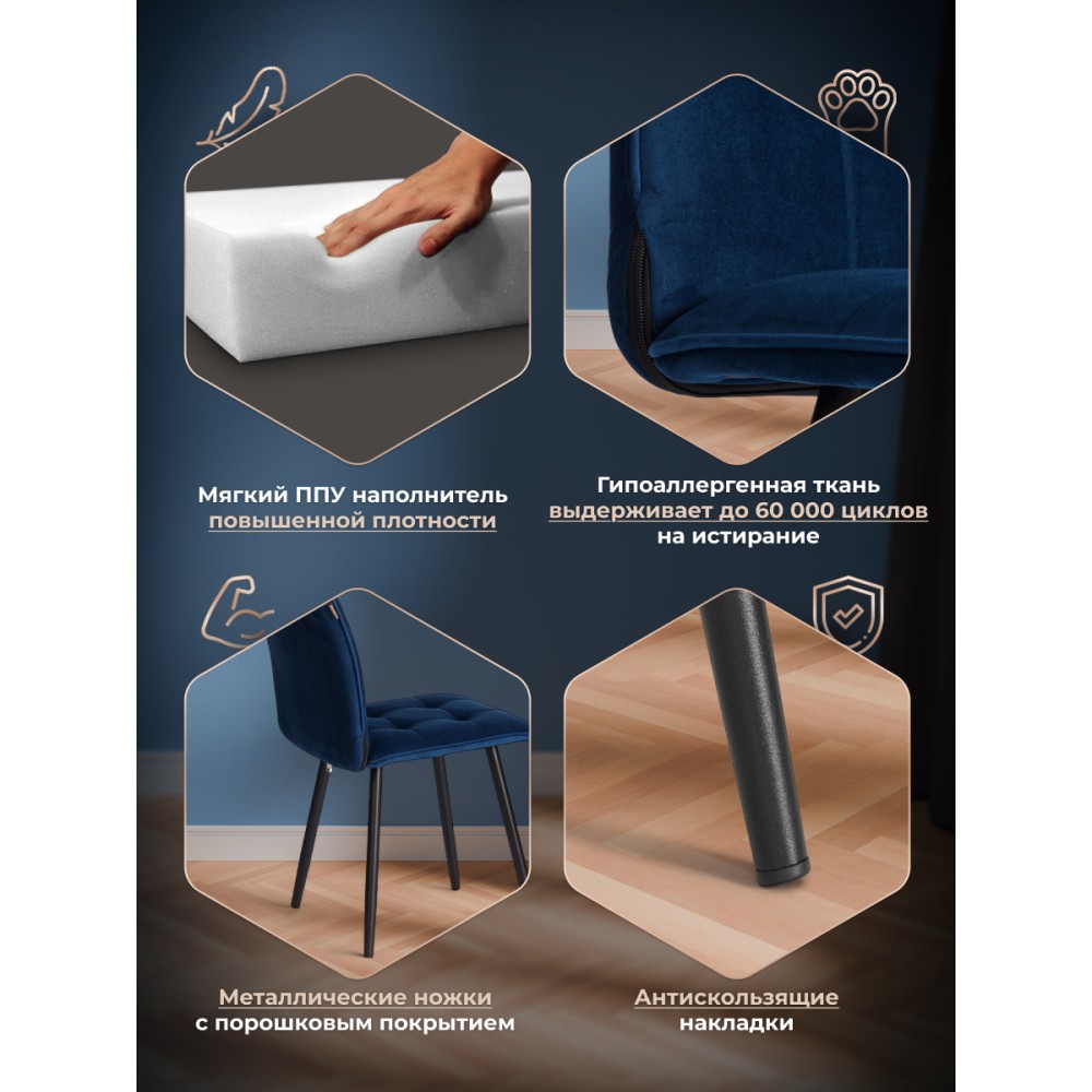 Стул Bari/Бари LT – это идеальное сочетание простоты и элегантности, который способен добавить уют и стиль в любое пространство вашего дома. Его современный дизайн позволяет гармонично вписаться в интерьер кухни, столовой или гостиной. Основные характеристики модели: - Каркас и спинка: окрашенный металлический профиль обеспечивает надежность и долговечность, а высокая, эргономичная спинка с эффектом "Гамака" обеспечивает комфорт во время сидения. - Сиденье: Гнутоклееный шпон толщиной 10 мм придаёт надежность и несет функцию несущей конструкции. Наполнитель из пенополиуретана (ППУ) высокой плотности (35 кг/м3) сохраняет свою форму на протяжении длительного времени, обеспечивая комфорт при сидении. - Отделка: Стул оформлен кантами, создающими эффект дорогой отделки, а также обит премиальным велюром с высокой износостойкостью – 60000 циклов по тесту Мартиндейла. Этот материал приятен на ощупь и легок в уходе. - Опоры: Конусообразные ножки диаметром 25/16 мм и толщиной металла 1,2 мм обеспечивают устойчивость и надежность даже при активном использовании. - Сборка: Продаётся стул в разобранном виде, что делает транспортировку удобной. Сборка стула проста и понятна благодаря прилагаемой инструкции. - Нагрузка: Стул рассчитан на статичную нагрузку до 120 кг. Bari/Бари LT – это стул, который поразит даже самых взыскательных покупателей своей функциональностью, практичностью и высоким качеством исполнения.