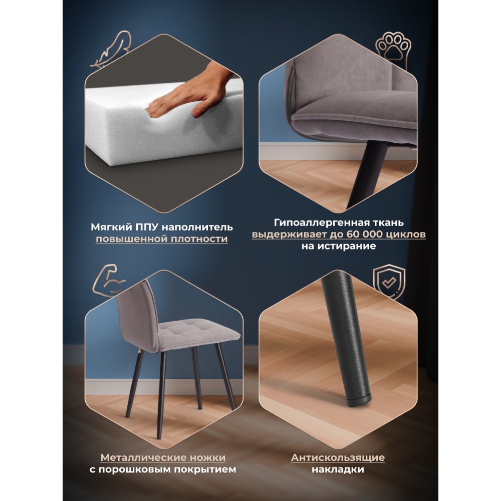 Стул Bari/Бари LT – это идеальное сочетание простоты и элегантности, который способен добавить уют и стиль в любое пространство вашего дома. Его современный дизайн позволяет гармонично вписаться в интерьер кухни, столовой или гостиной. Основные характеристики модели: - Каркас и спинка: окрашенный металлический профиль обеспечивает надежность и долговечность, а высота, эргономичная спинка с эффектом "Гамака" обеспечивает комфорт во время сидения. - Сиденье: Гнутоклееный шпон толщиной 10 мм придаёт надежность и несет функцию несущей конструкции. Наполнитель из пенополиуретана (ППУ) высокой плотности (35 кг/м3) сохраняет свою форму на протяжении длительного времени, обеспечивая комфорт при сидении. - Отделка: Стул оформлен кантами, создающими эффект дорогой отделки, а также обит премиальным велюром с высокой износостойкостью – 60000 циклов по тесту Мартиндейла. Этот материал приятен на ощупь и легок в уходе. - Опоры: Конусообразные ножки диаметром 25/16 мм и толщиной металла 1,2 мм обеспечивают устойчивость и надежность даже при активном использовании. - Сборка: Продаётся стул в разобранном виде, что делает транспортировку удобной. Сборка стула проста и понятна благодаря прилагаемой инструкции. - Нагрузка: Стул рассчитан на статичную нагрузку до 120 кг. Bari/Бари LT – это стул, который поразит даже самых взыскательных покупателей своей функциональностью, практичностью и высоким качеством исполнения.