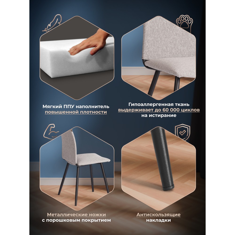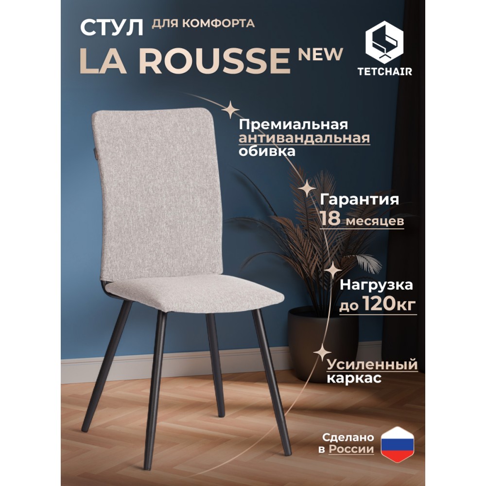 Обеденный стул La Rousse/Ля Русс из коллекции Modern/Модерн станет отличным дополнением к интерьеру вашего дома. Сочетание качественных материалов и надежной конструкции делает его идеальным выбором для повседневного использования. Сиденье из гнутоклееного шпона и спинка из металлического профиля с мягким наполнителем из пенополиуретана не деформируются со временем, не накапливают пыль, хорошо пропускают воздух и отводят влагу, имеют долгий срок службы. Стул оснащен опорами из прямоугольного металлического профиля, что обеспечивает надежность и устойчивость конструкции, завершают опоры пластиковые подпятники, которые уберегут ваш пол от царапин. Для обивки модели используется прочная и долговечная рогожка. Такой материал устойчив к износу и истиранию, не впитывает запахи и легко чистится. Обеденный стул La Rousse/Ля Русс станет идеальным выбором для вашего интерьера, обеспечивая комфорт, стиль и надежность в использовании. Стул поставляется в разобранном виде. Необходима простая сборка по прилагаемой инструкции. Максимальная нагрузка 120 кг.