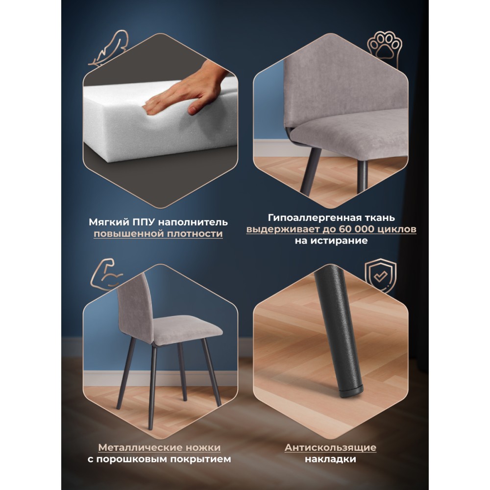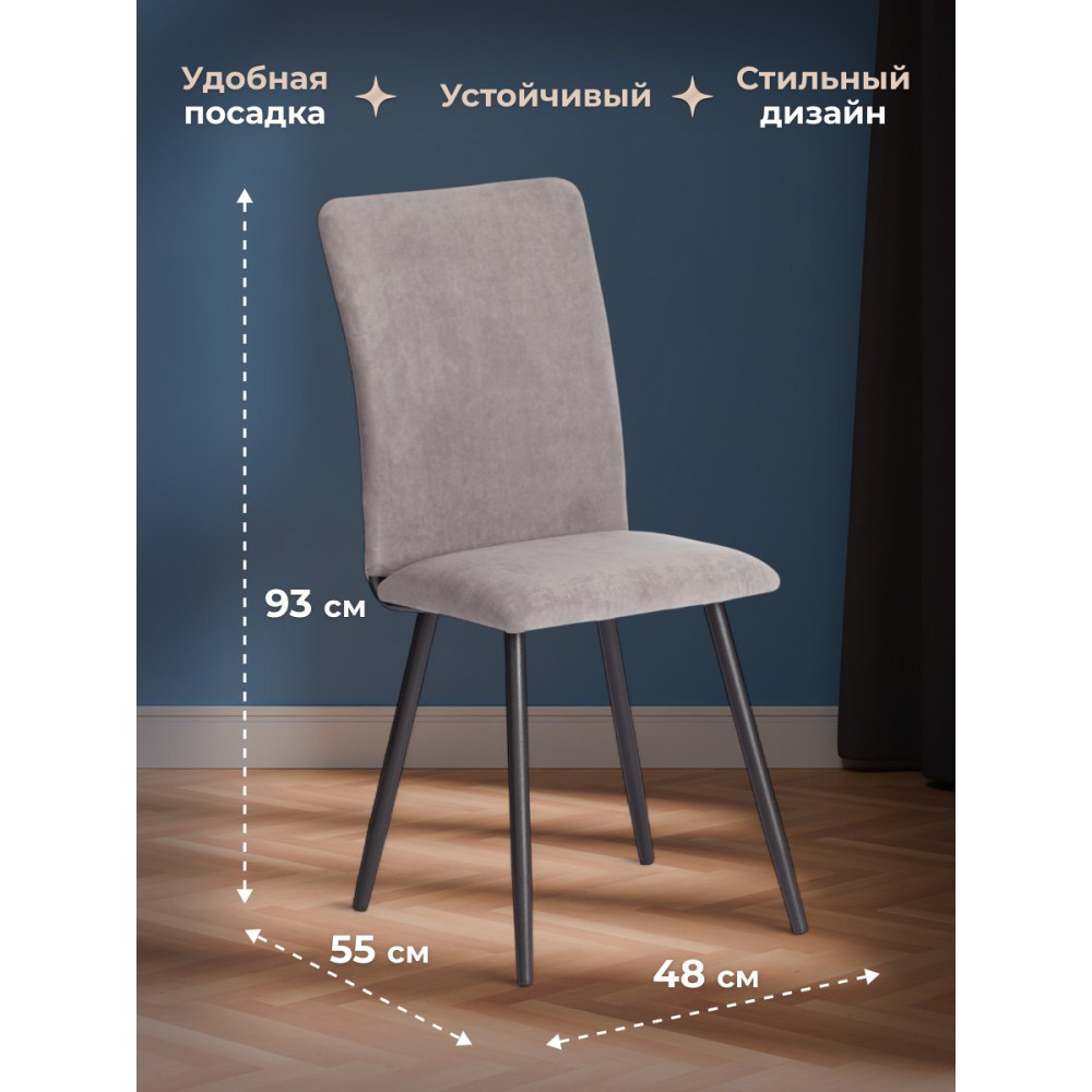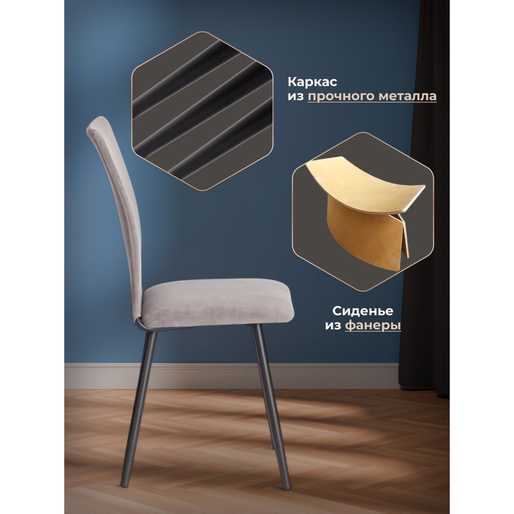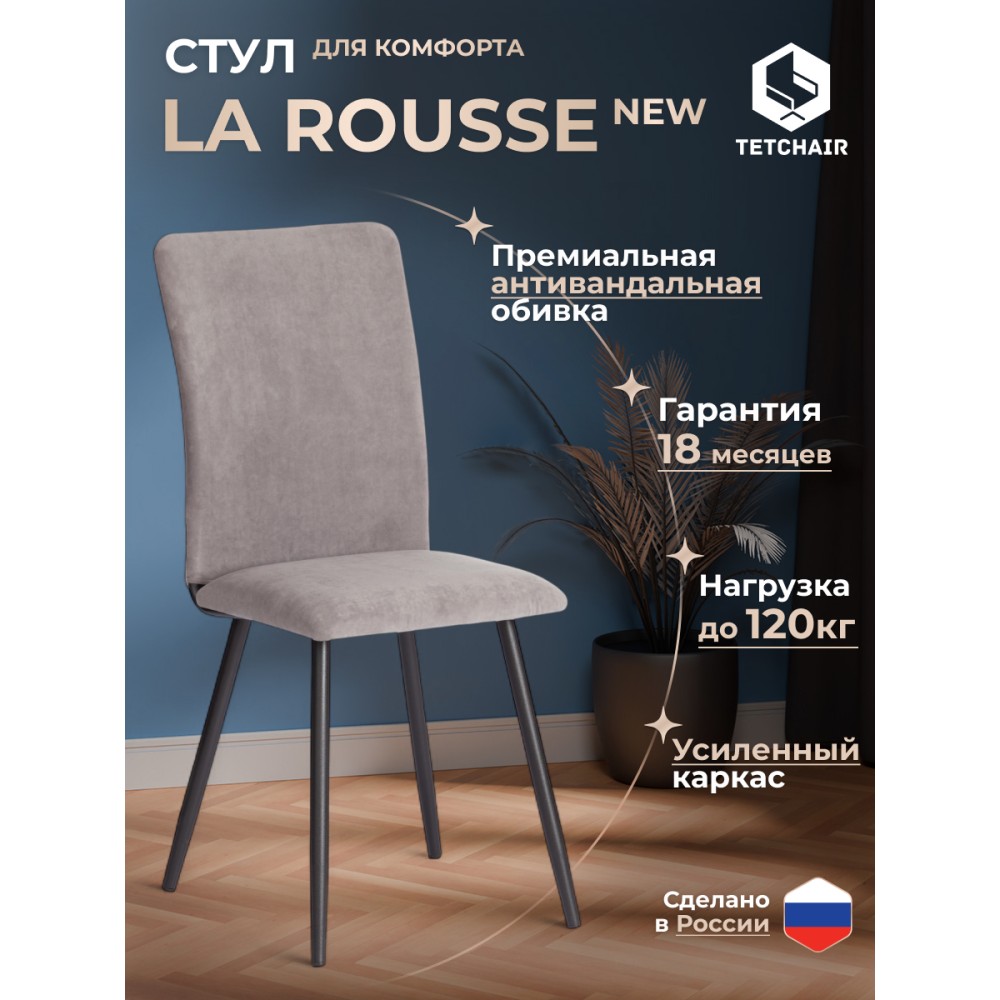 Обеденный стул La Rousse/Ля Русс New/Нью, из коллекции Modern/Модерн станет отличным дополнением к интерьеру вашего дома. Сочетание качественных материалов и надежной конструкции делает его идеальным выбором для повседневного использования. Сиденье из гнутоклееного шпона и спинка из металлического профиля с мягким наполнителем из пенополиуретана не деформируются со временем, не накапливают пыль, хорошо пропускают воздух и отводят влагу, имеют долгий срок службы. Спинка выполнена из окрашенного металлического профиля для надежности и долговечности. Стул оснащен опорами из прямоугольного металлического профиля, что обеспечивает надежность и устойчивость конструкции, завершают опоры пластиковые подпятники, которые уберегут ваш пол от царапин. Для обивки модели используется износостойкий велюр. Такой материал устойчив к износу и истиранию. Обеденный стул La Rousse/Ля Русс станет идеальным выбором для вашего интерьера, обеспечивая комфорт, стиль и надежность в использовании. Стул поставляется в разобранном виде. Необходима простая сборка по прилагаемой инструкции. Стул рассчитан на статичную нагрузку до 120 кг.