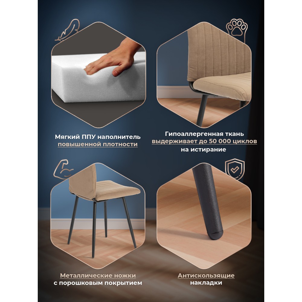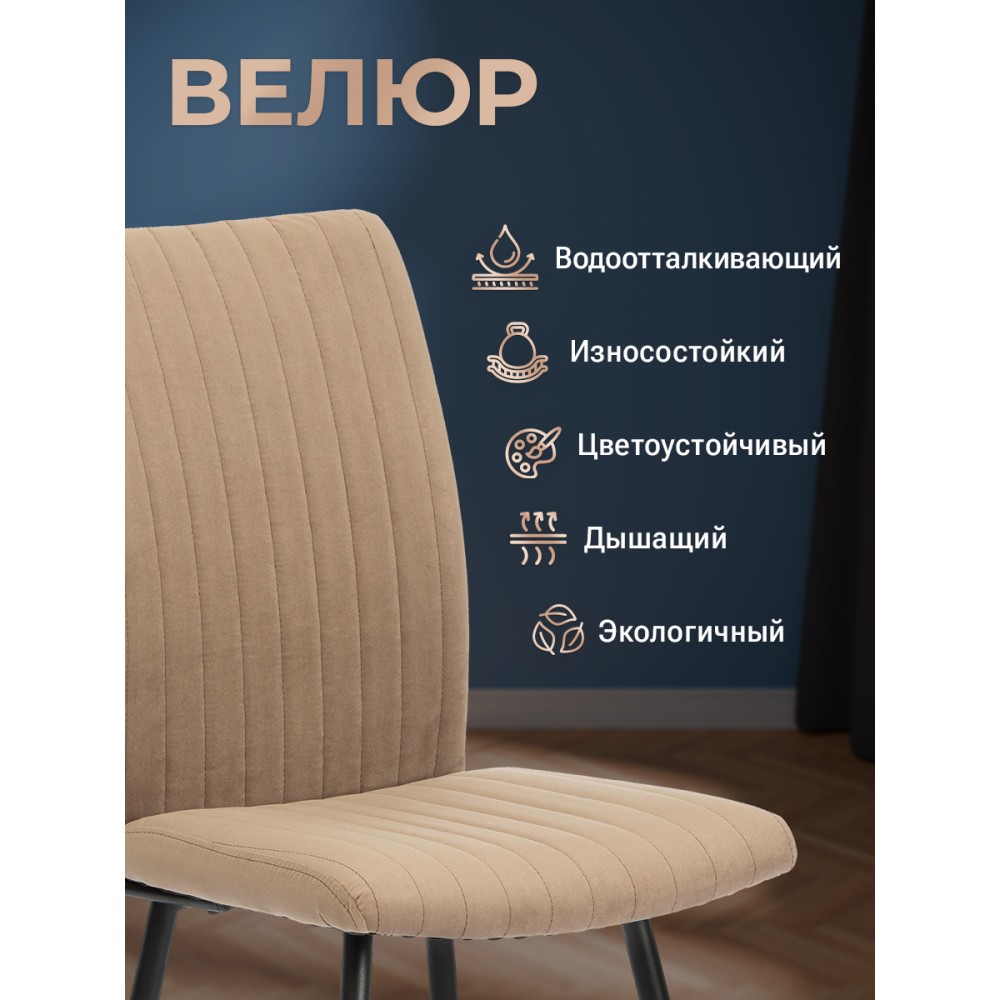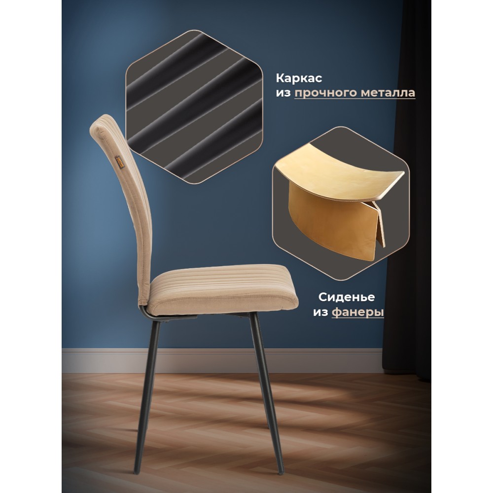 Обеденный стул Monte Carlo из коллекции MODERN - отличный вариант для кухни, столовой или гостиной. Модель идеально подойдет для городской квартиры или загородного дома. Сиденье из гнутоклееного шпона и спинка из металлического профиля с мягким наполнителем из пенополиуретана имеют долгий срок службы, обладают отличными эксплуатационными свойствами, не меняют форму со временем. Устойчивые конусообразные металлические опоры надежны, способны выдерживать большие нагрузки, завершают опоры пластиковые подпятники, которые уберегут ваш пол от царапин. Удобная спинка имеет эргономичную конструкцию и подстроится под любого человека, вместительное сиденье позволят расположиться с комфортом для продолжительного отдыха после трудового дня. Модель обита износостойким, современным велюром. Такой материал практичен, прост в уходе, приятен на ощупь. Привлекательный обеденный стул Monte Carlo прекрасно впишется в любой современный дизайн, разнообразит интерьер, поможет создать стильное пространство. Модель поставляется в разобранном виде. Необходима простая сборка по прилагаемой инструкции. Максимальная нагрузка 120 кг.