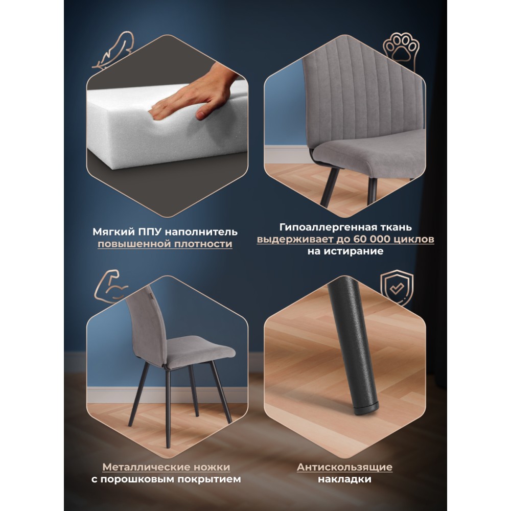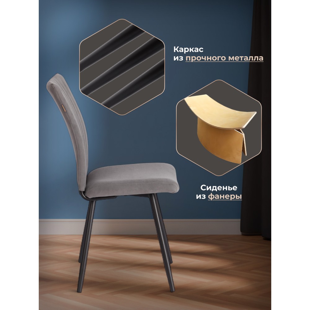Обеденный стул Monte Carlo/Монте Карло Trend/Тренд из коллекции Modern/Модерн - отличный вариант для кухни, столовой или гостиной. Модель идеально подойдет для городской квартиры или загородного дома. Сиденье из гнутоклееного шпона и спинка из металлического профиля с мягким наполнителем из пенополиуретана имеют долгий срок службы, обладают отличными эксплуатационными свойствами, не меняют форму со временем. Устойчивые конусообразные металлические опоры надежны, способны выдерживать большие нагрузки, завершают опоры пластиковые подпятники, которые уберегут ваш пол от царапин. Удобная спинка имеет эргономичную конструкцию и подстроится под любого человека, вместительное сиденье позволят расположиться с комфортом для продолжительного отдыха после трудового дня. Модель обита износостойким, современным велюром. Такой материал практичен, прост в уходе, приятен на ощупь. Привлекательный обеденный стул Monte Carlo/Монте Карло прекрасно впишется в любой современный дизайн, разнообразит интерьер, поможет создать стильное пространство. Модель поставляется в разобранном виде. Необходима простая сборка по прилагаемой инструкции. Максимальная нагрузка 120 кг. Упаковки